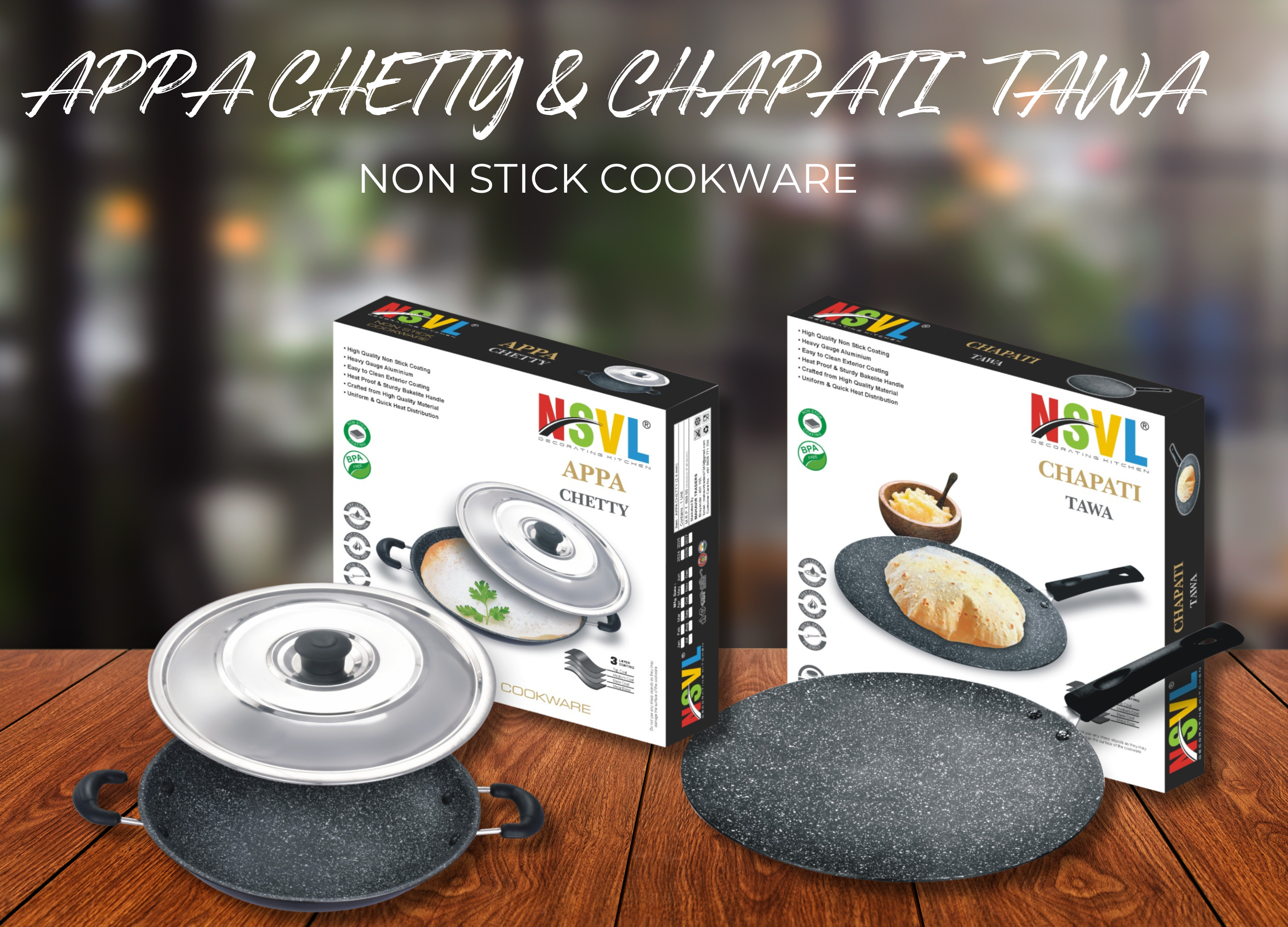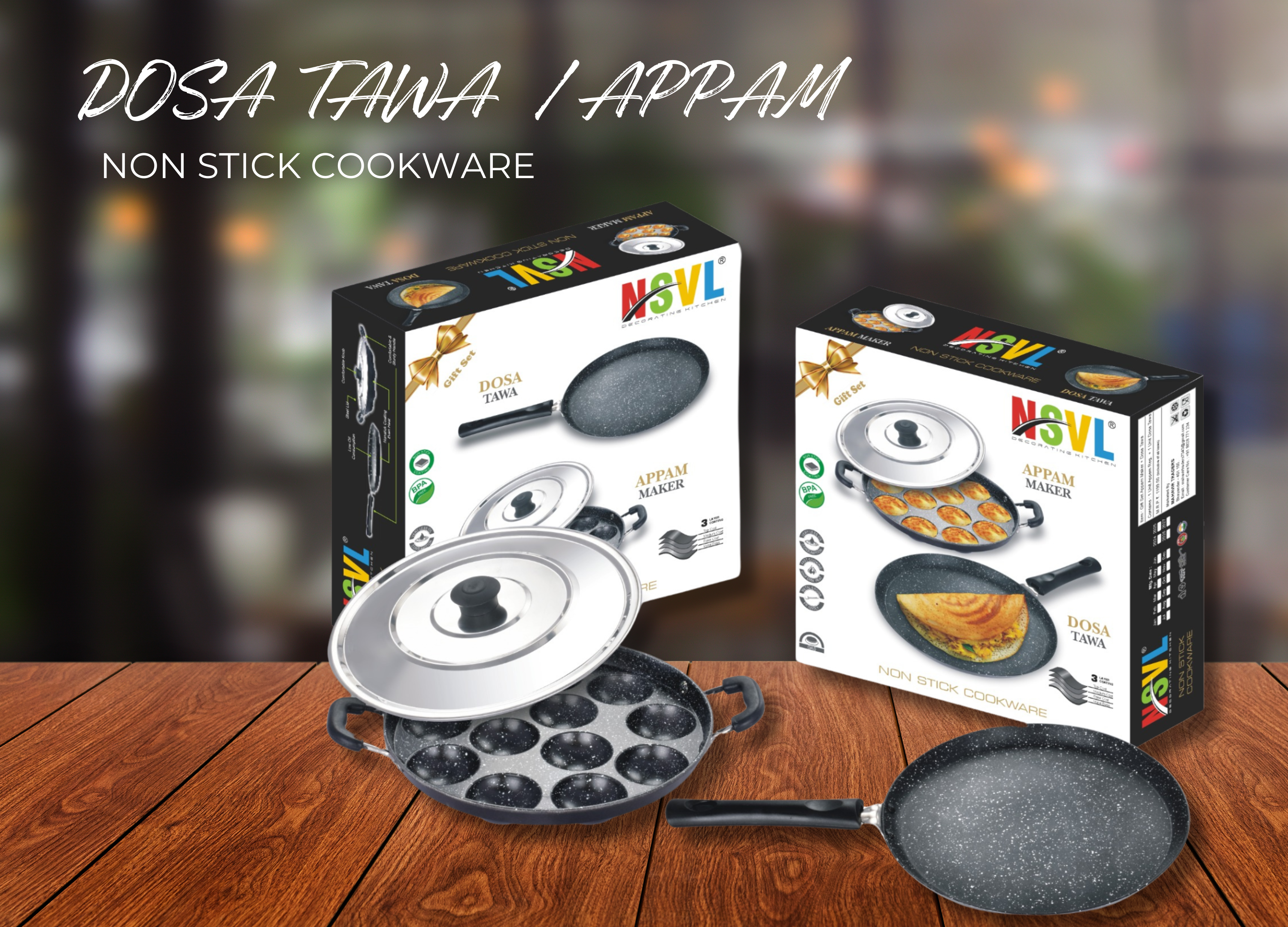 Nonstick Aluminium Cookware Gift Set, 4 Pieces, Includes Tawa, Appam Maker, Kitchen Tool, Mini Uttamapm, Non-Induction Base