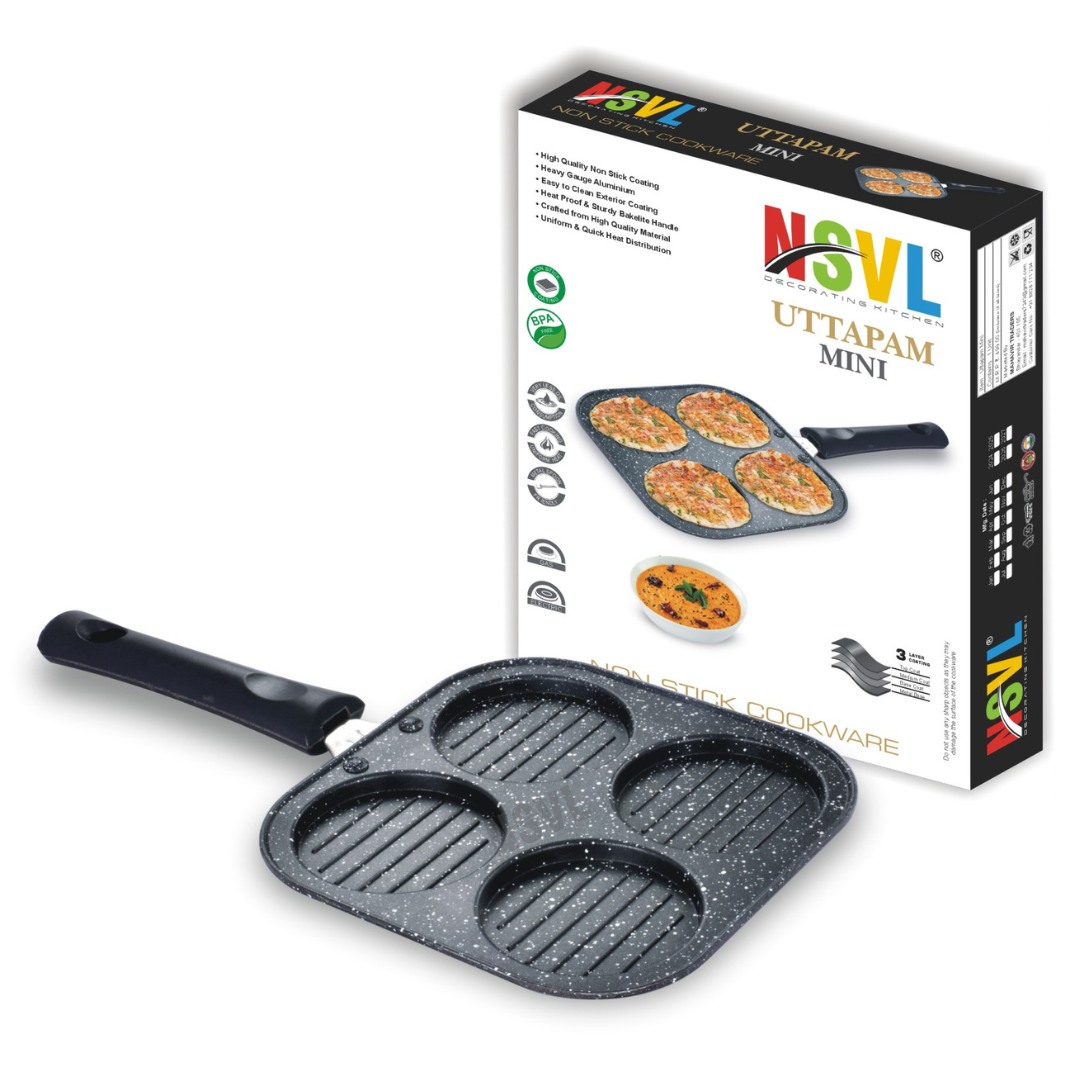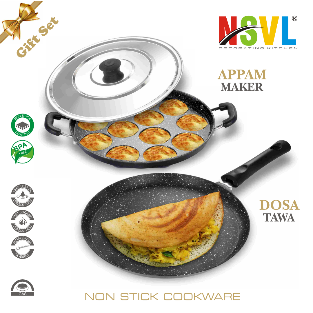 Nonstick Aluminium Cookware Gift Set, 4 Pieces, Includes Tawa, Appam Maker, Kitchen Tool, Mini Uttamapm, Non-Induction Base