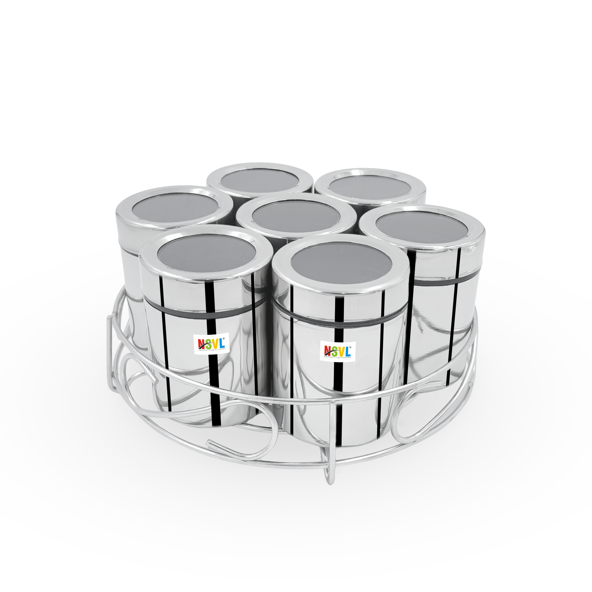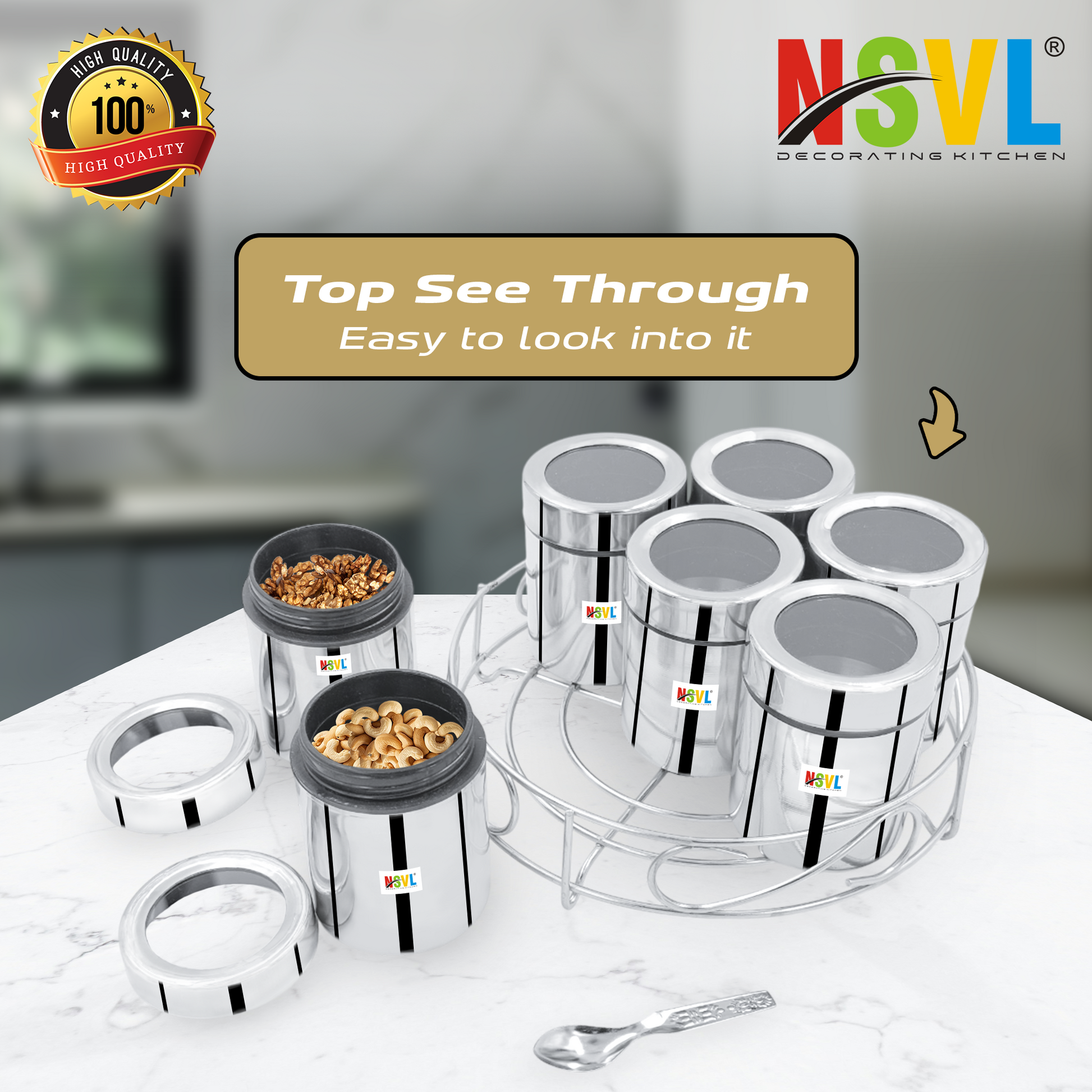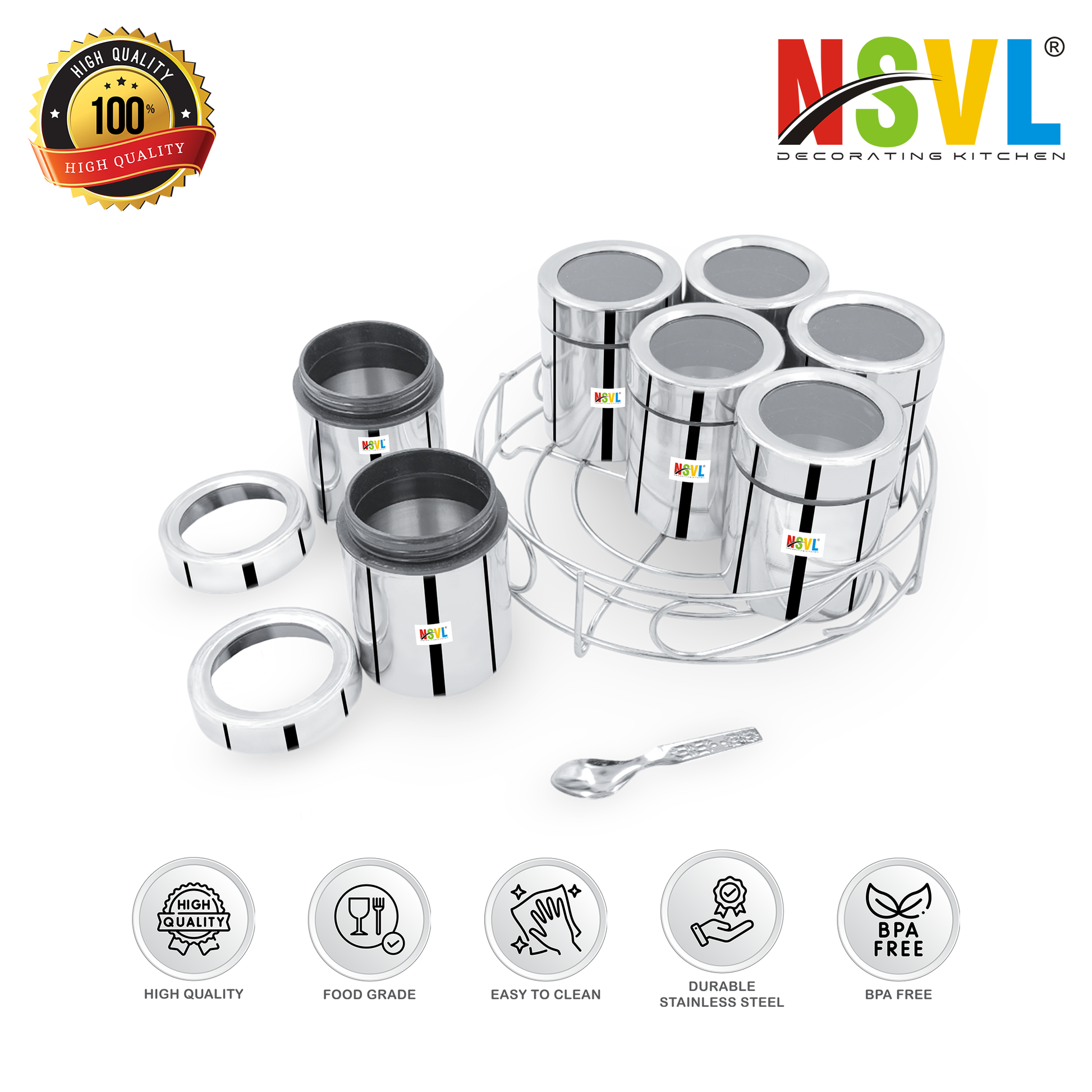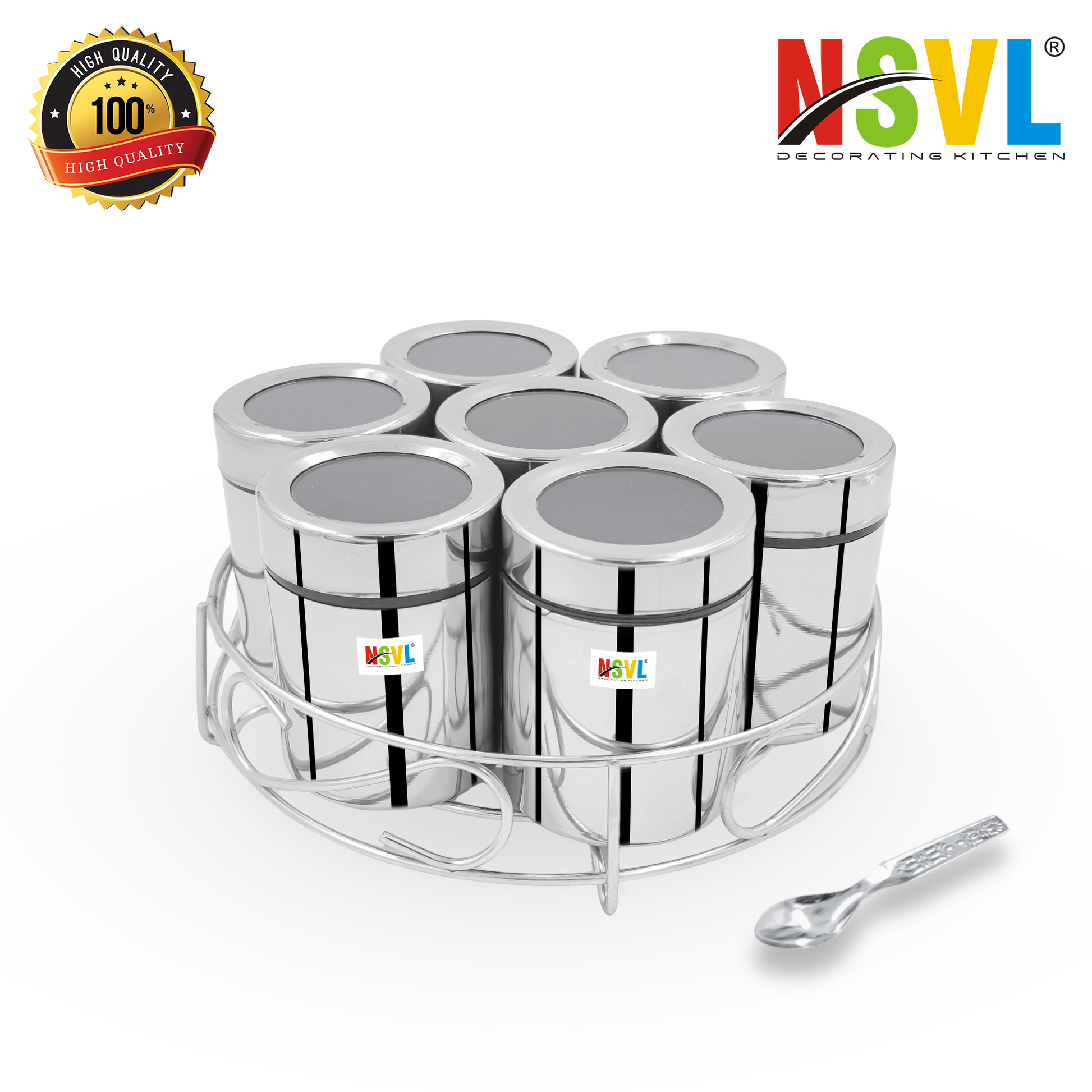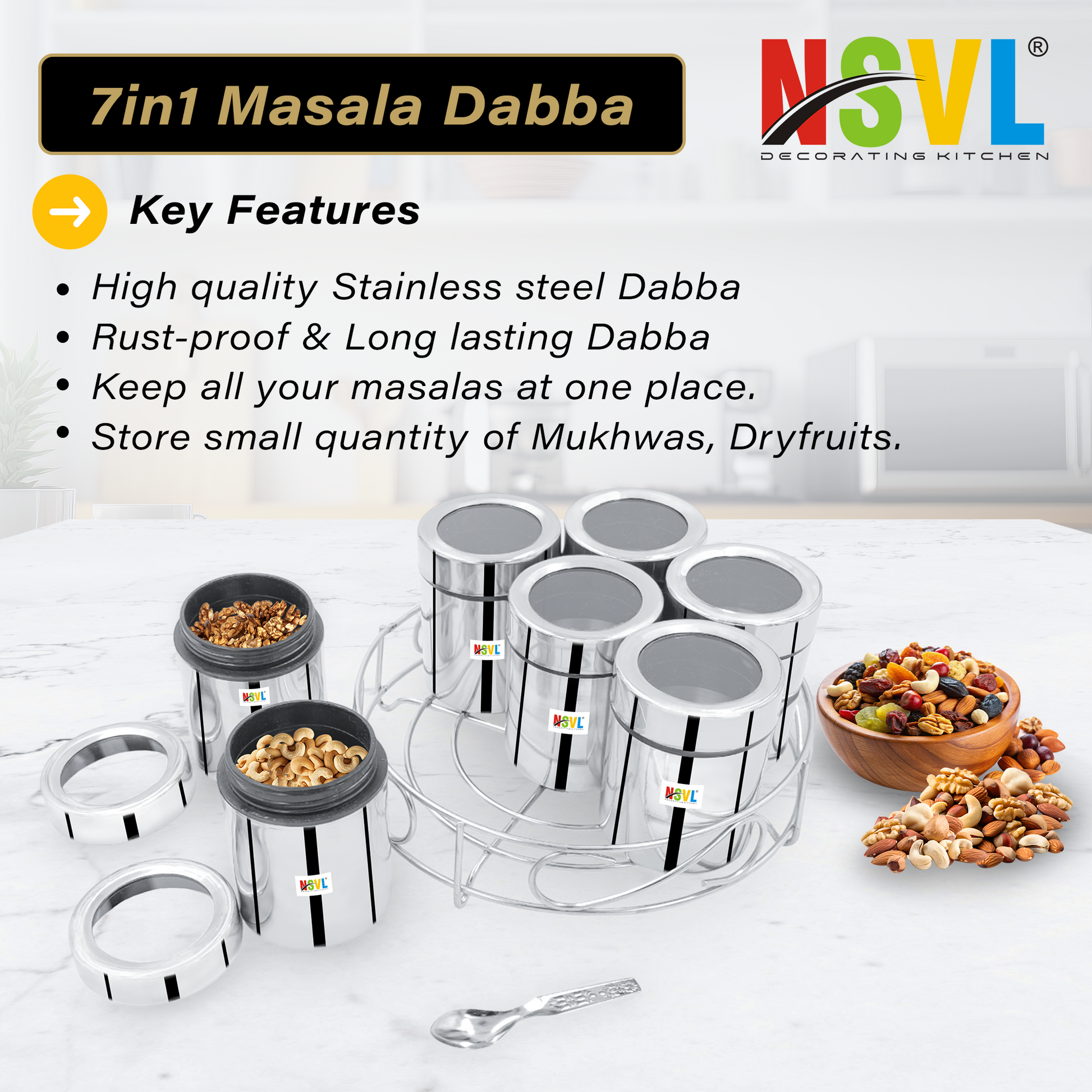 NSVL 7 IN 1 Stainless Steel Masala Box for Kitchen | Spice Box | Masala Container | Masala Dani with individual See through lid 1.5 Ltr