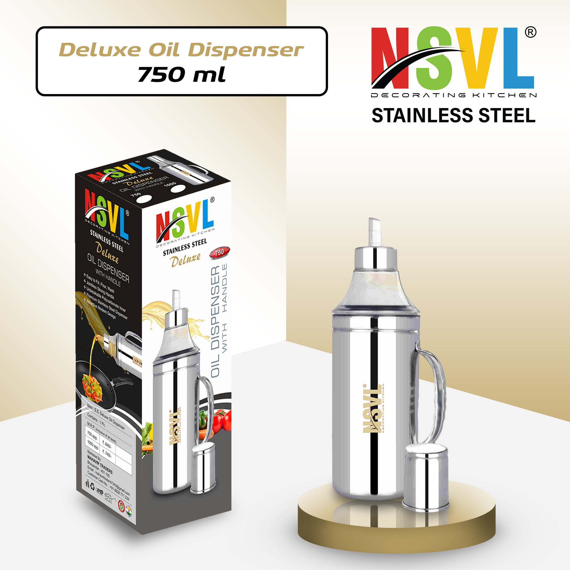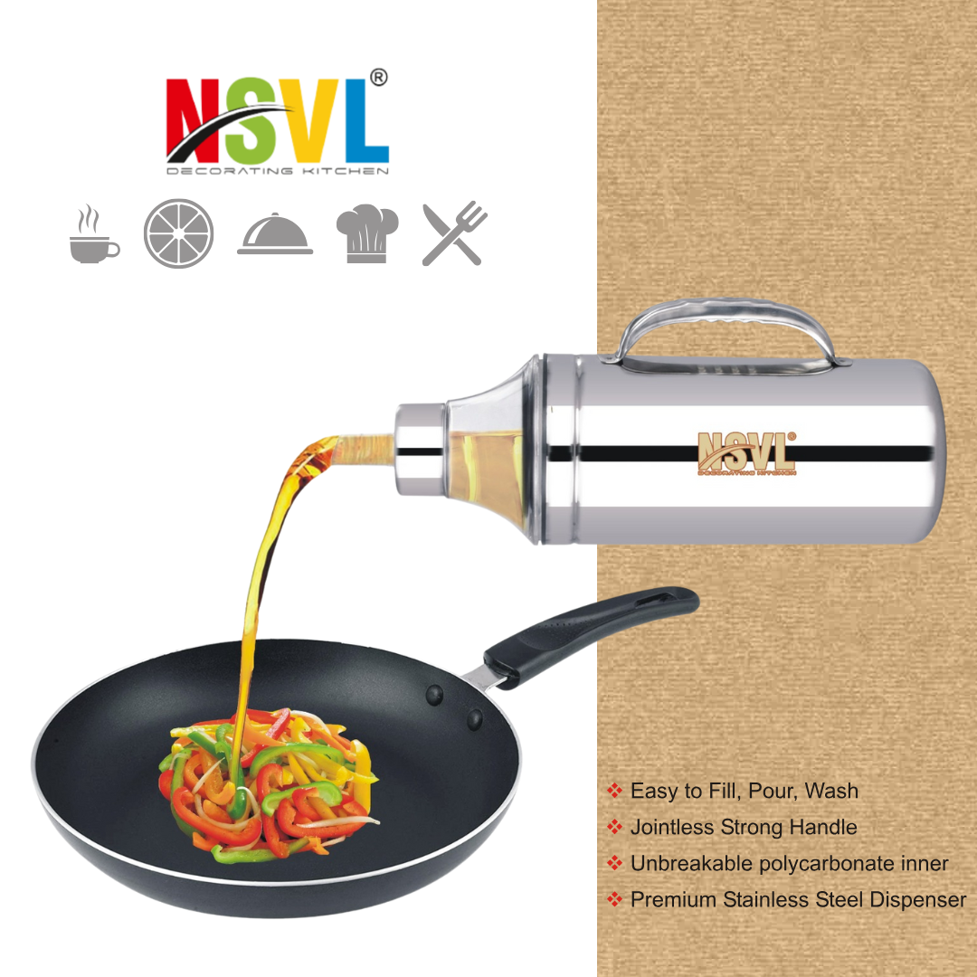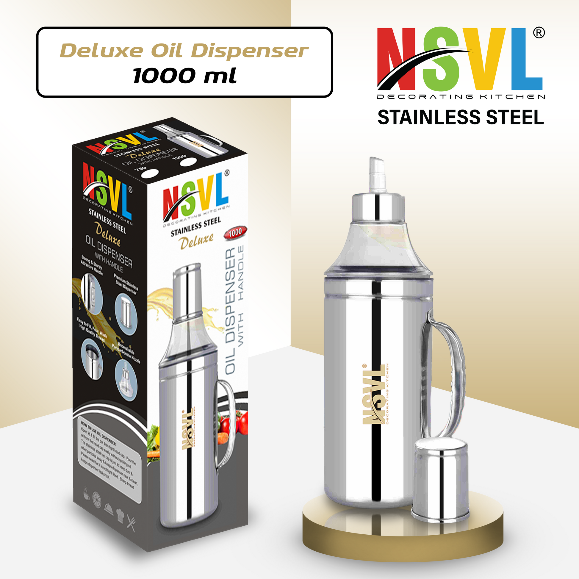 Upgrade your kitchen with the sleek and functional NSVL Stainless Steel Oil Dispenser. Designed for style and practicality, this 1000ml dispenser is perfect for storing and pouring your favorite oils, vinegars, or sauces.