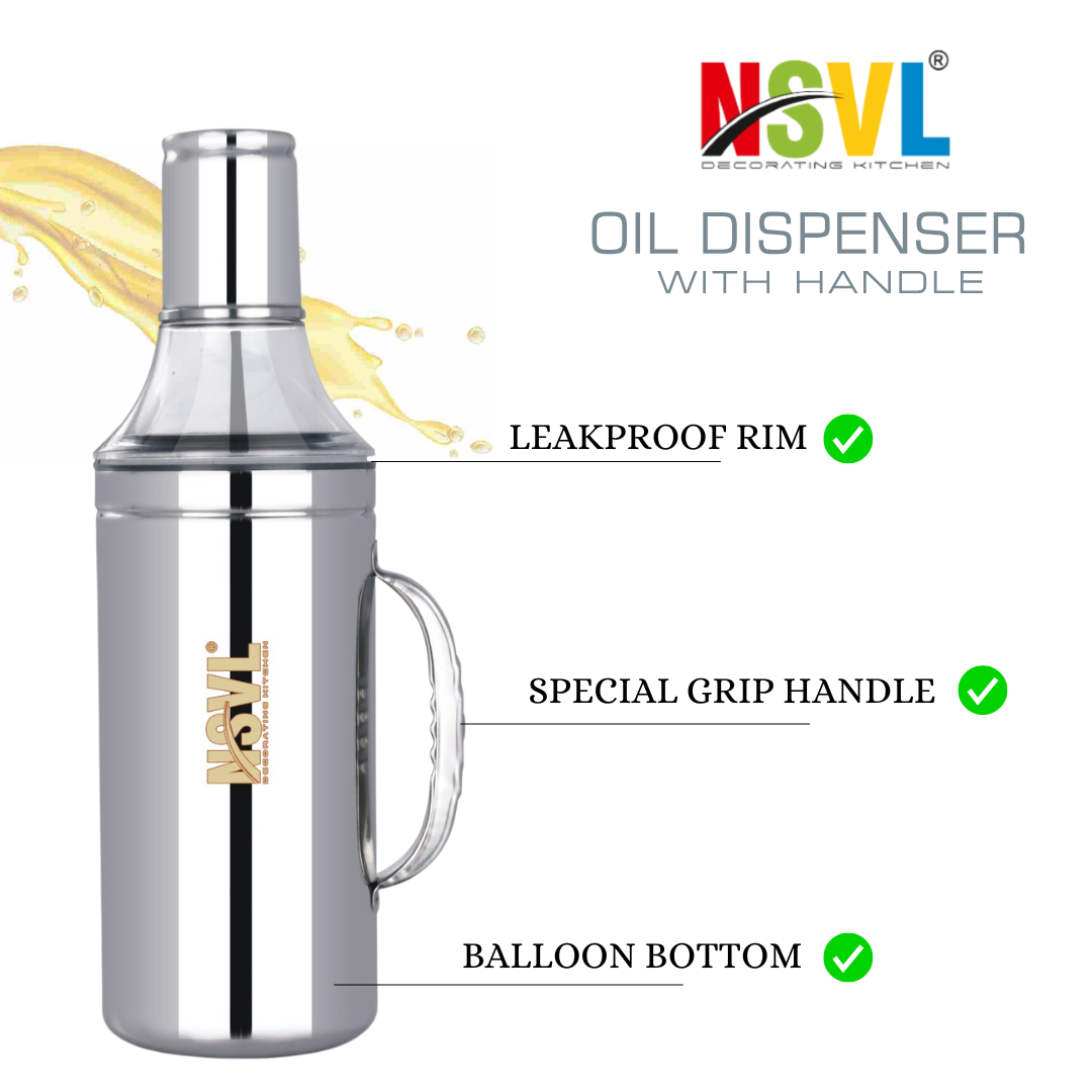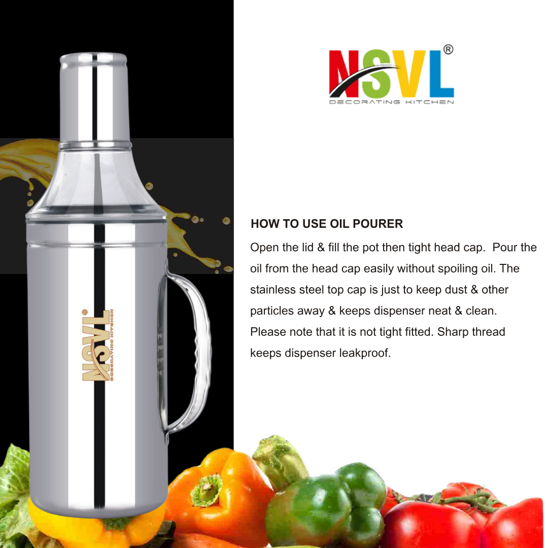Nsvl Deluxe Stainless Steel Oil Dispenser with Nozzle | Oil Container | Oil Pourer | Oil Pot | Oil Can| Oil Bottle with Handle