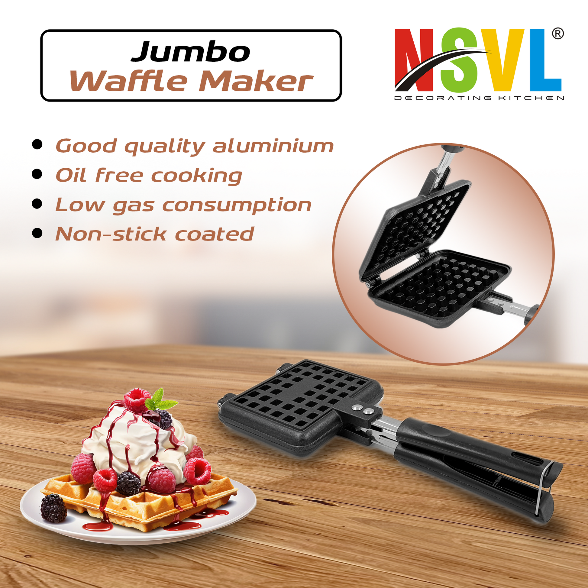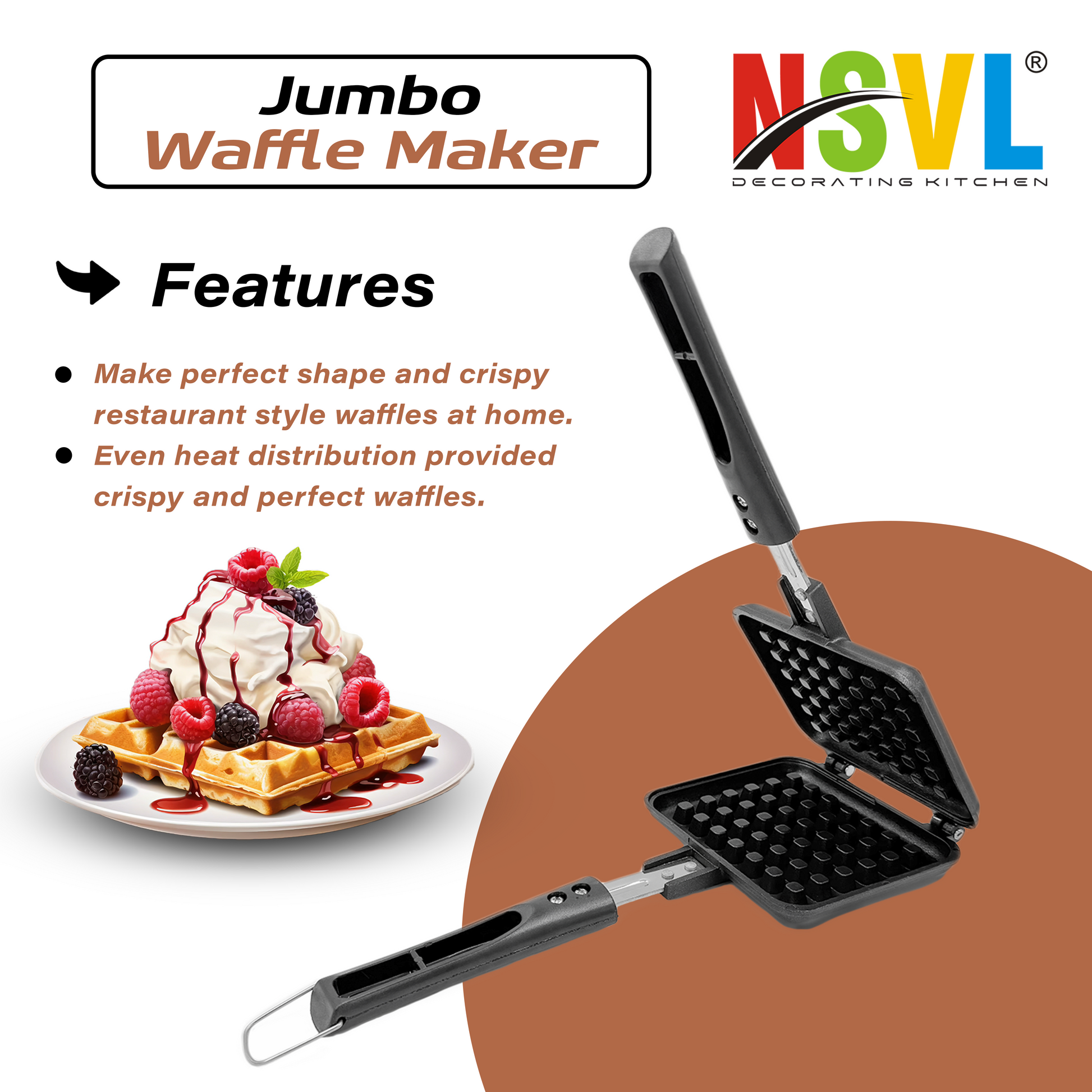 Elevate your waffle-making experience with the NSVL Aluminium Waffle Maker – your gateway to crispy, fluffy, and mouthwatering waffles!