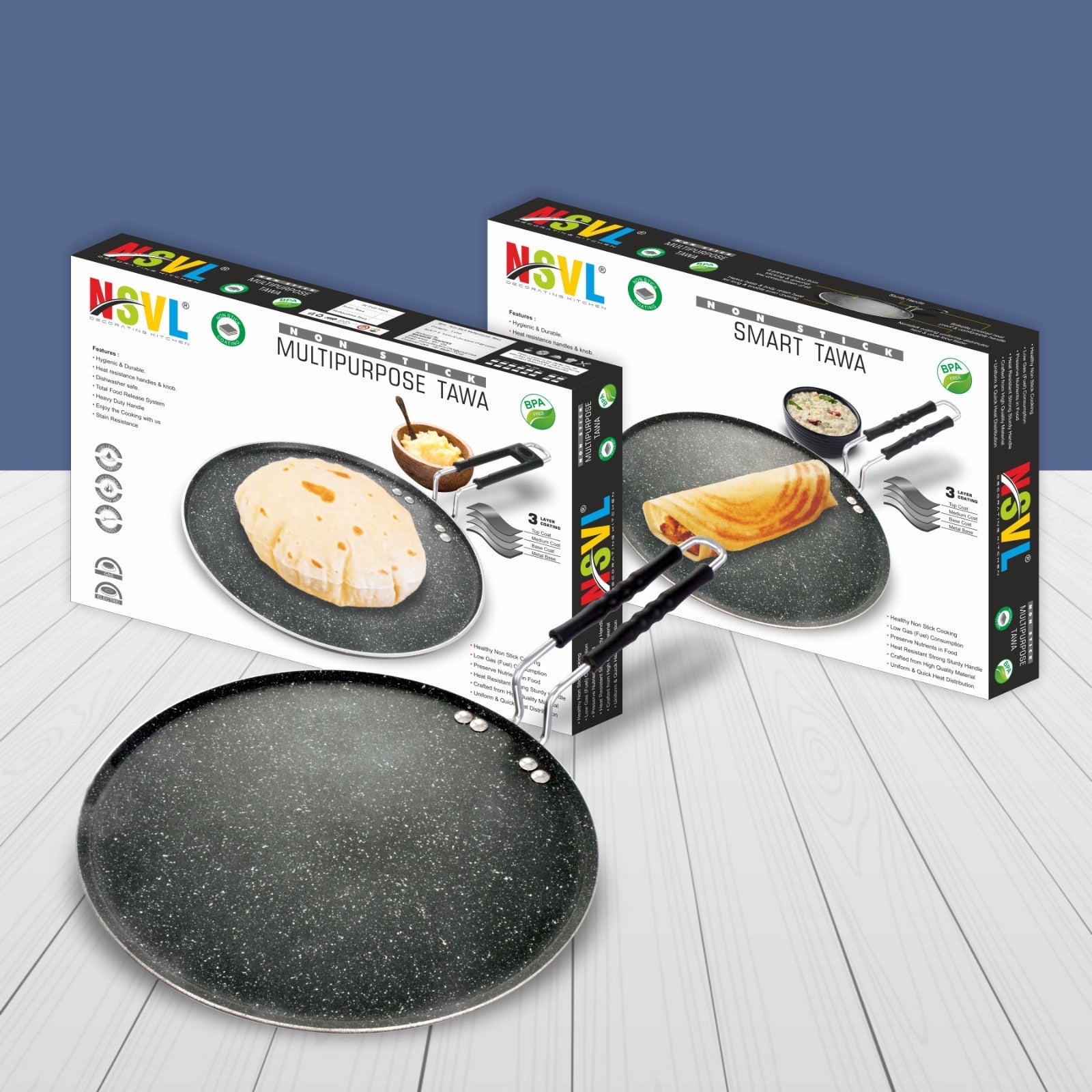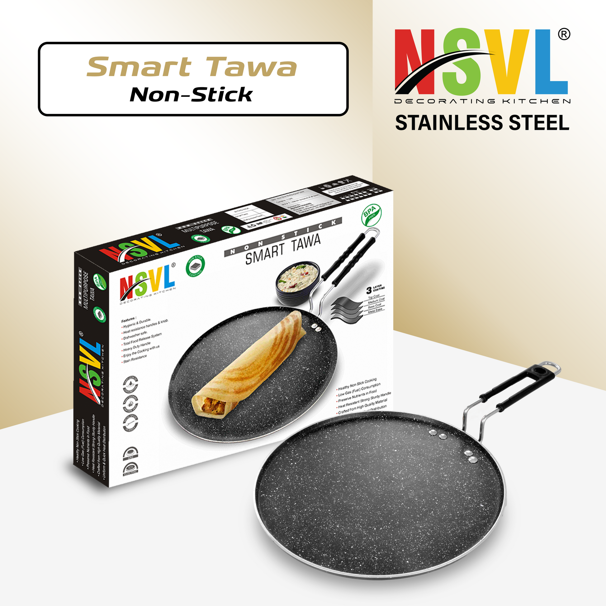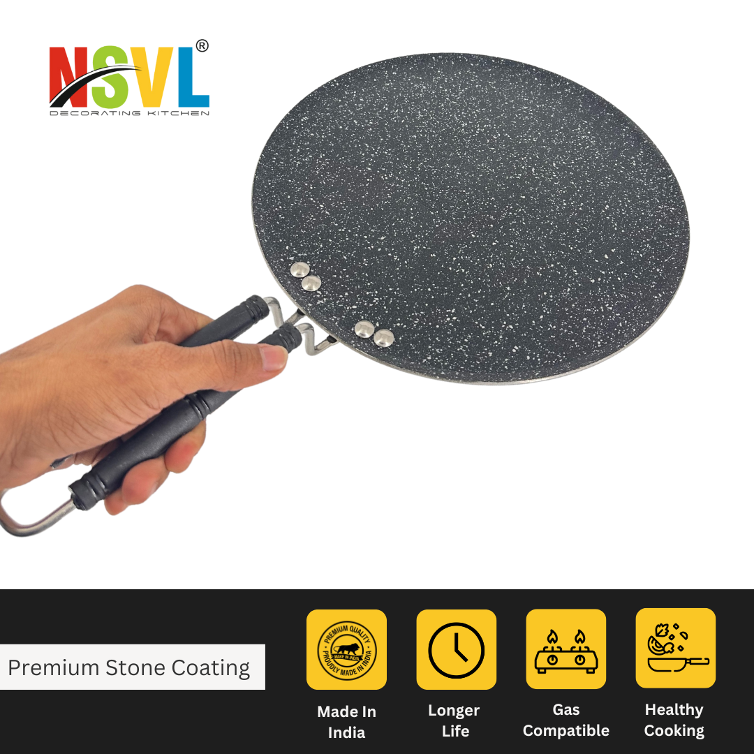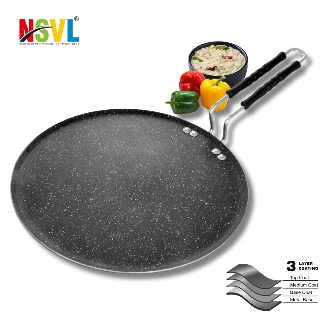 NSVL Dosa Tawa | Non Stick Multi Tawa 4MM Thickness with Handle Cookware Granite Finish PPOA Free Duraslate 4 Layer Coating Pan