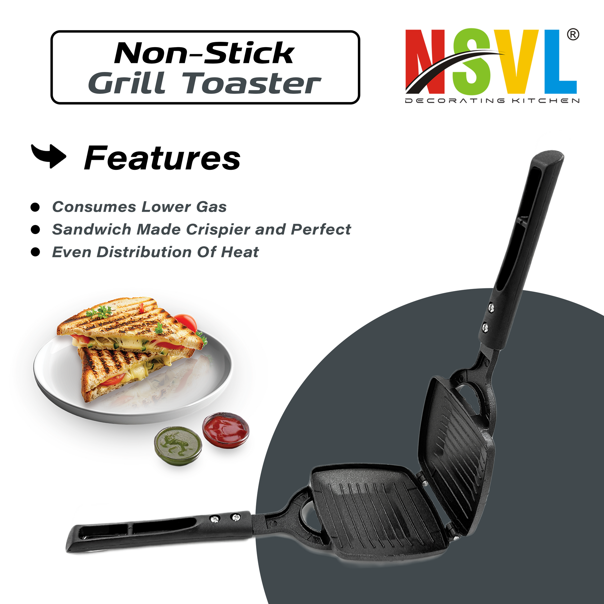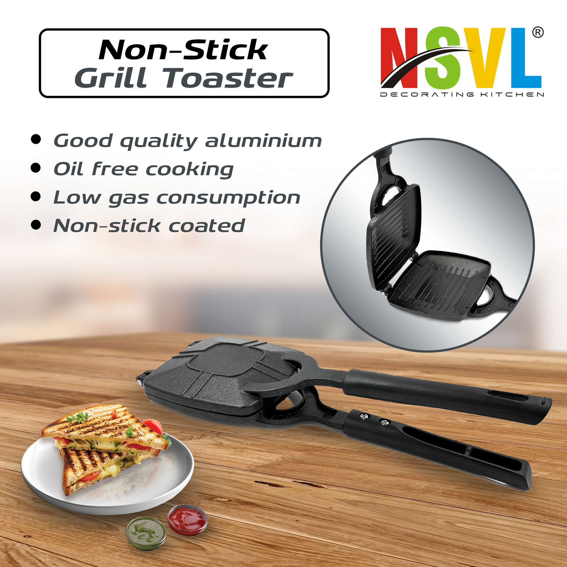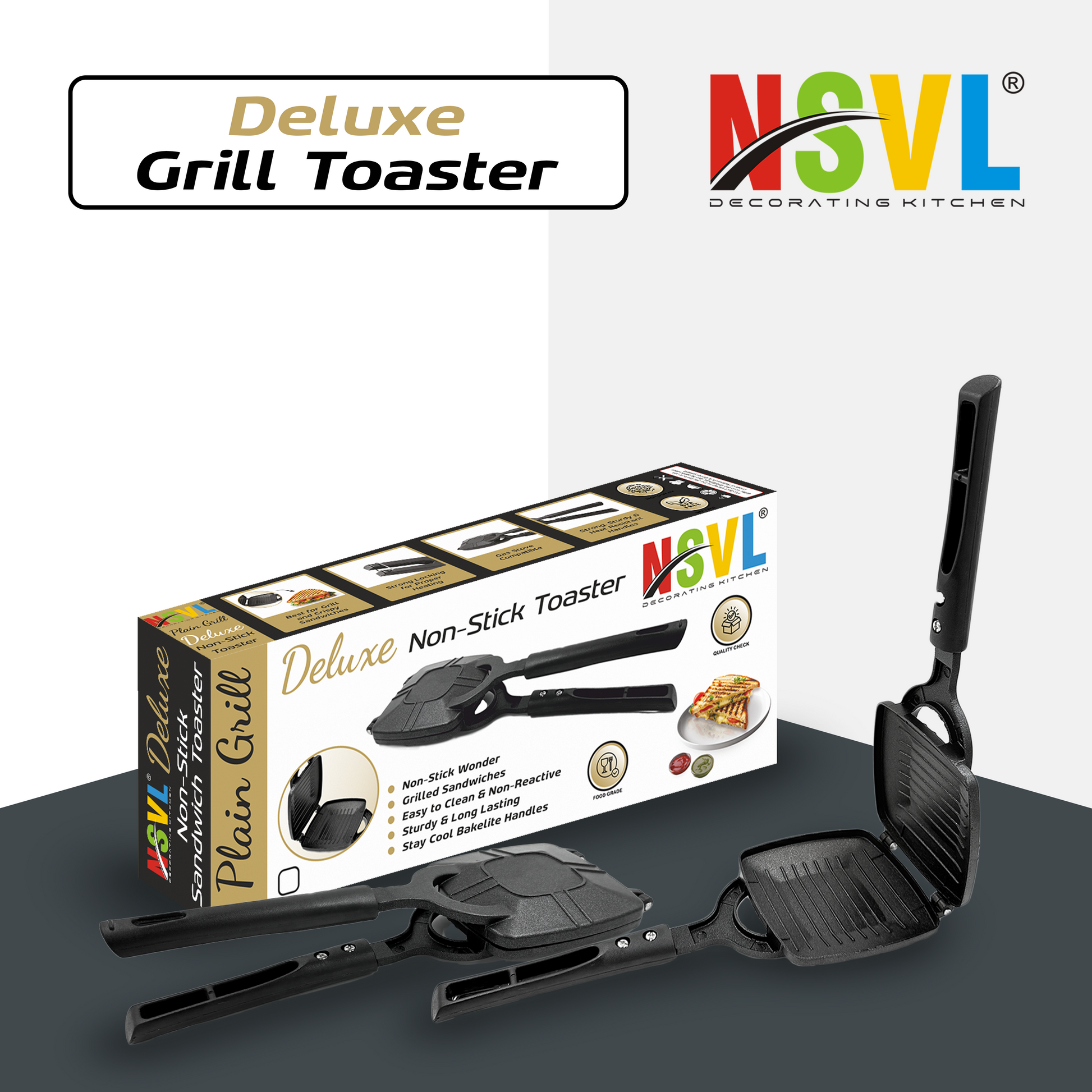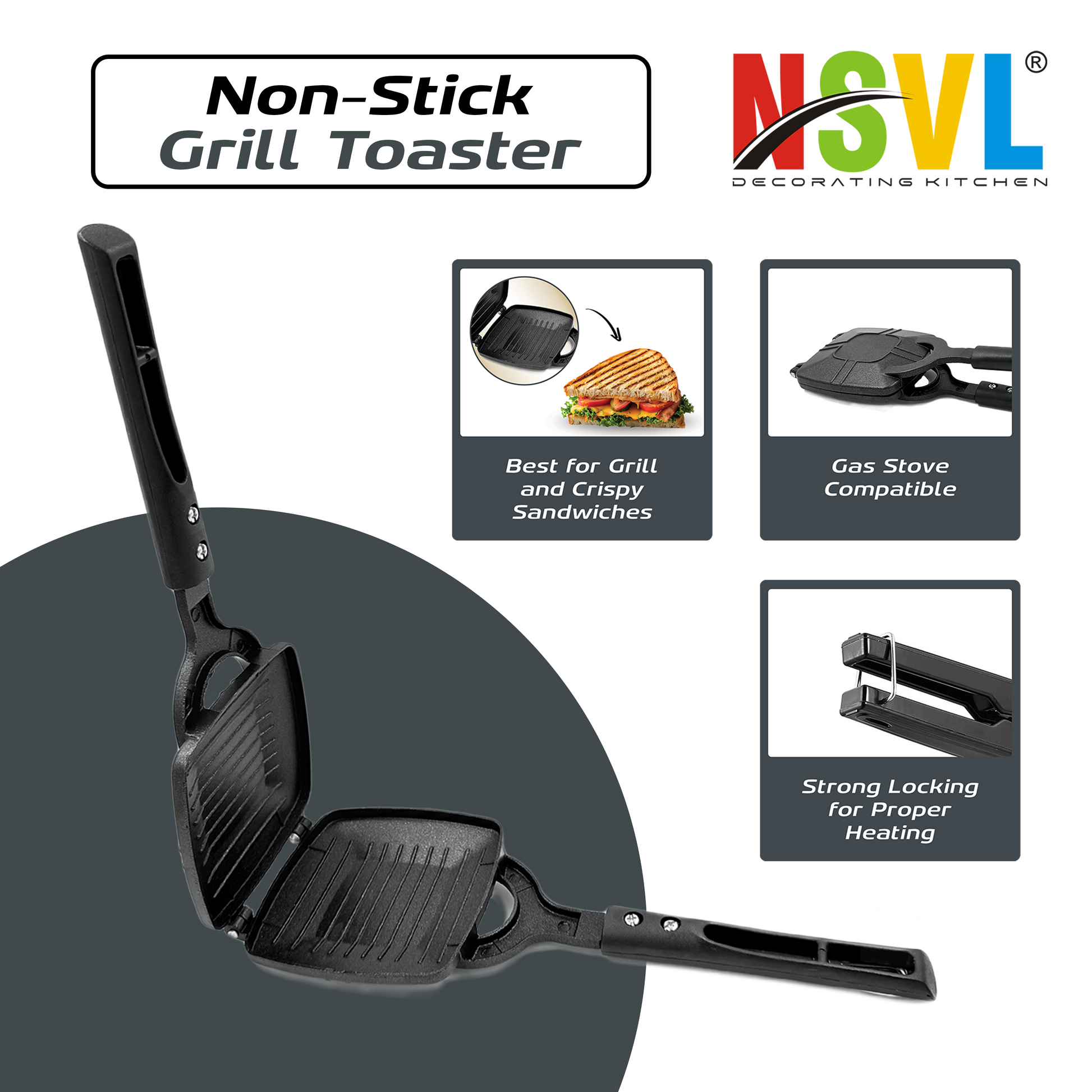 NSVL Grill Gas Sandwich Toaster - Nonstick Grill, Stay-Cool Handles. Perfect for Grill Crispy Sandwich Maker