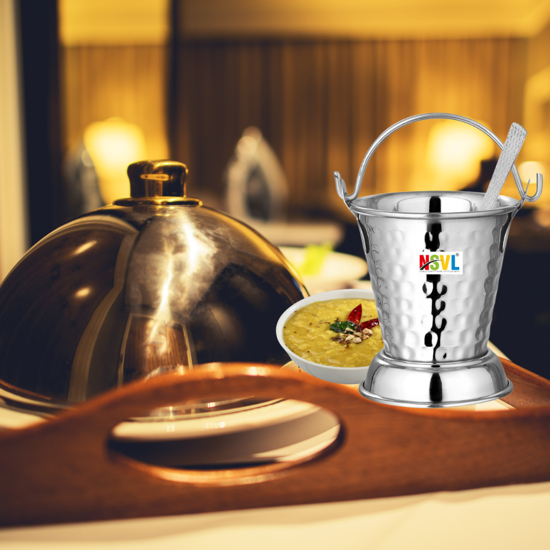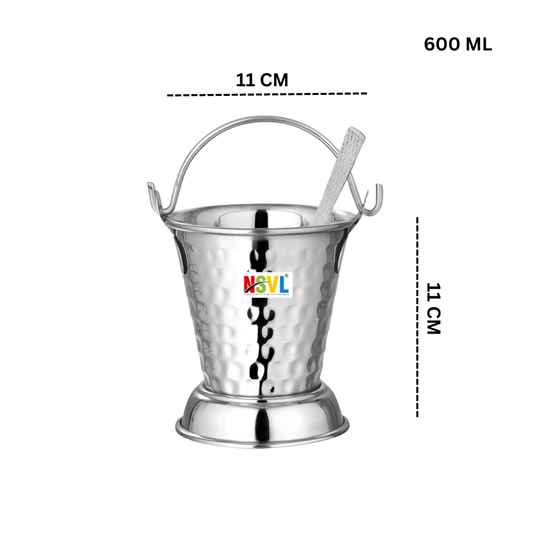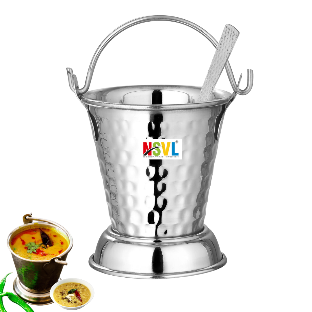 NSVL Mini Serving Hammered Serving Bucket for Dining Table | Mini Bucket for Serving Dal | Kitchen Stainless Steel Bucket | Small Bucket, 600 ml