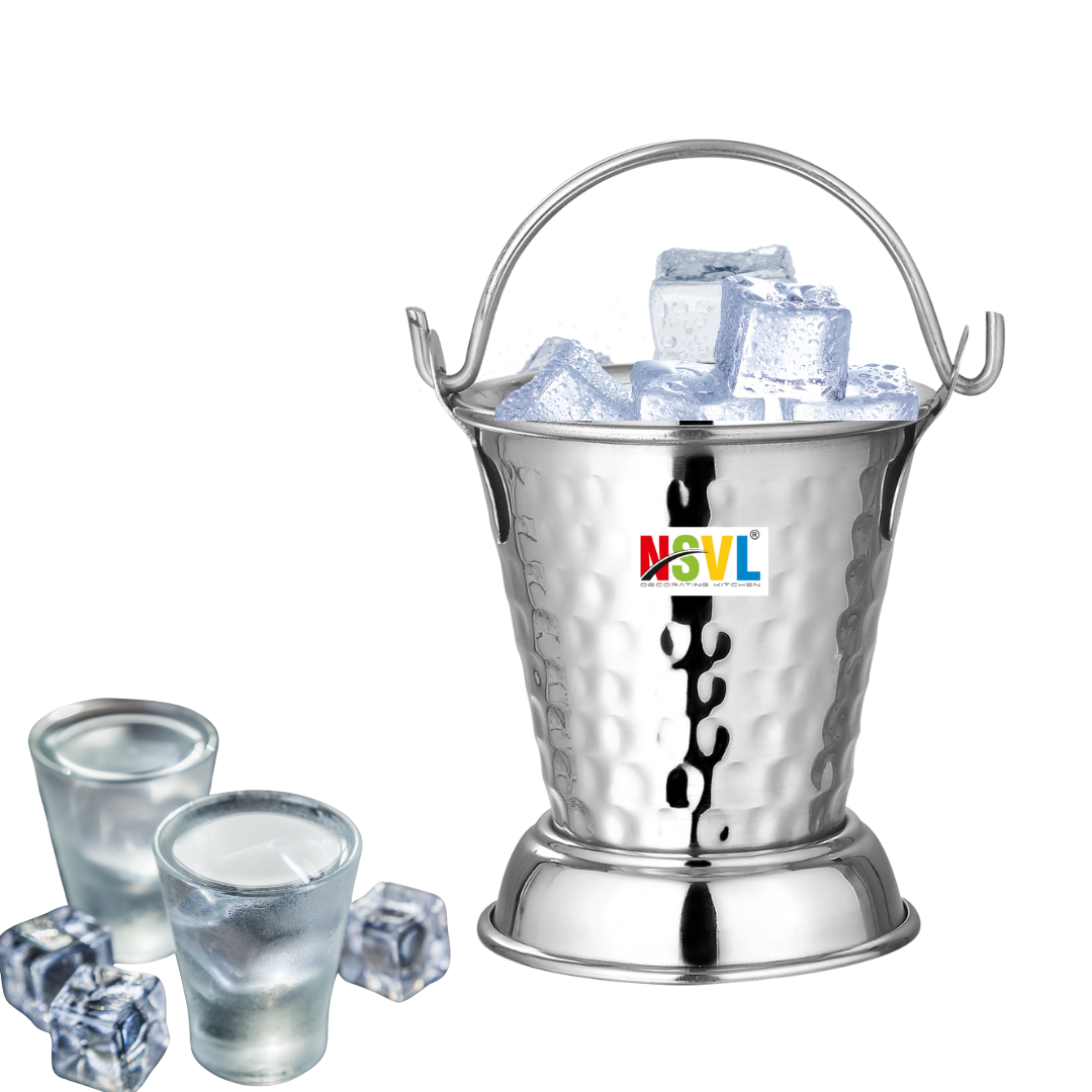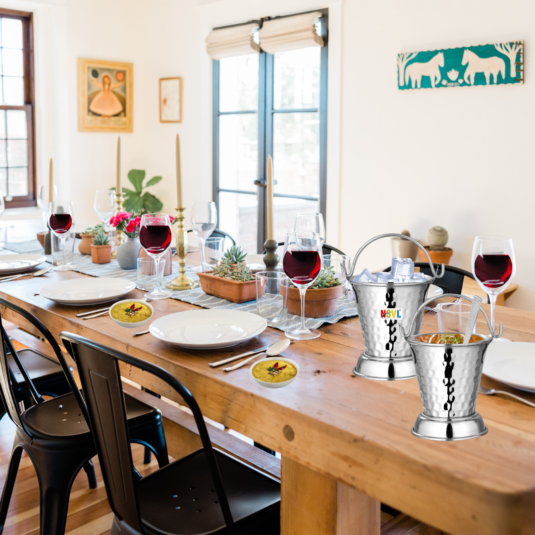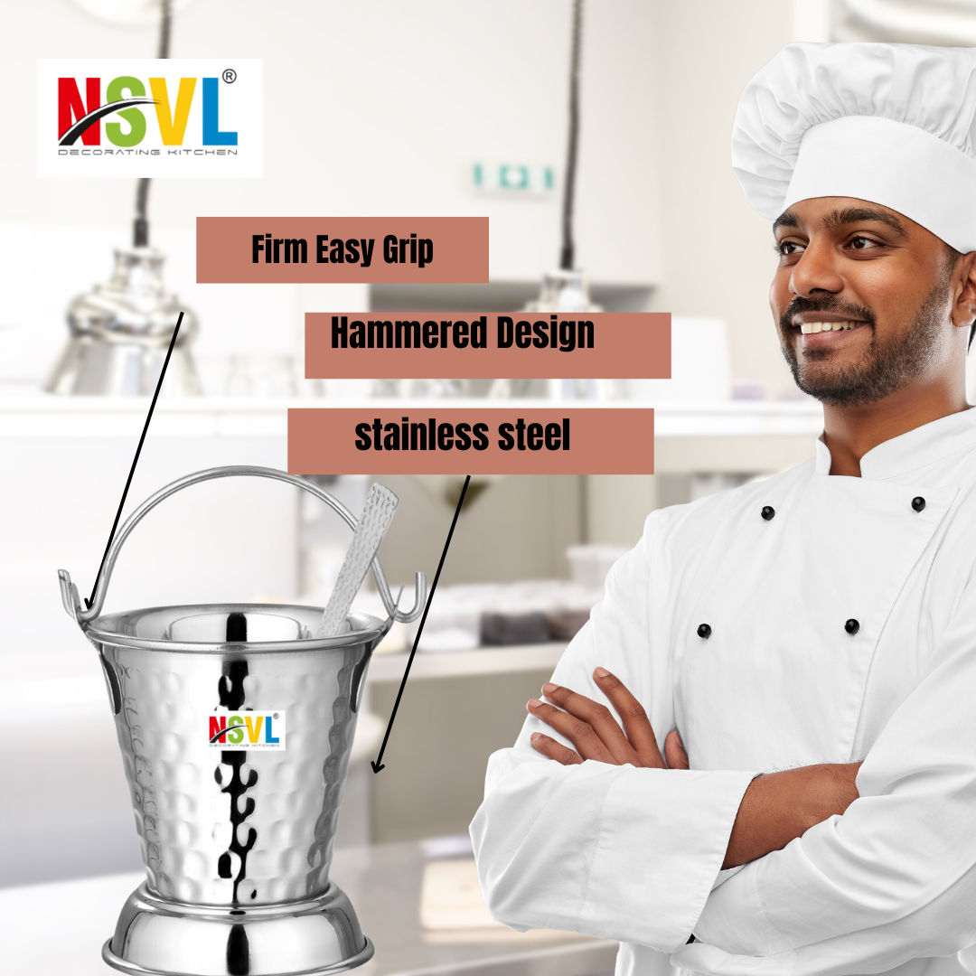 NSVL Mini Serving Hammered Serving Bucket for Dining Table | Mini Bucket for Serving Dal | Kitchen Stainless Steel Bucket | Small Bucket, 600 ml