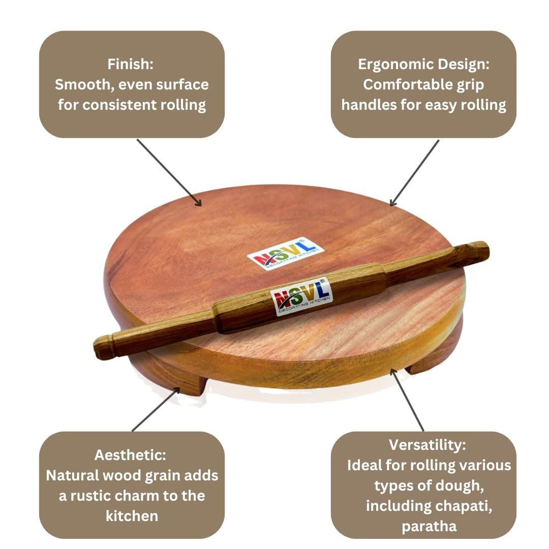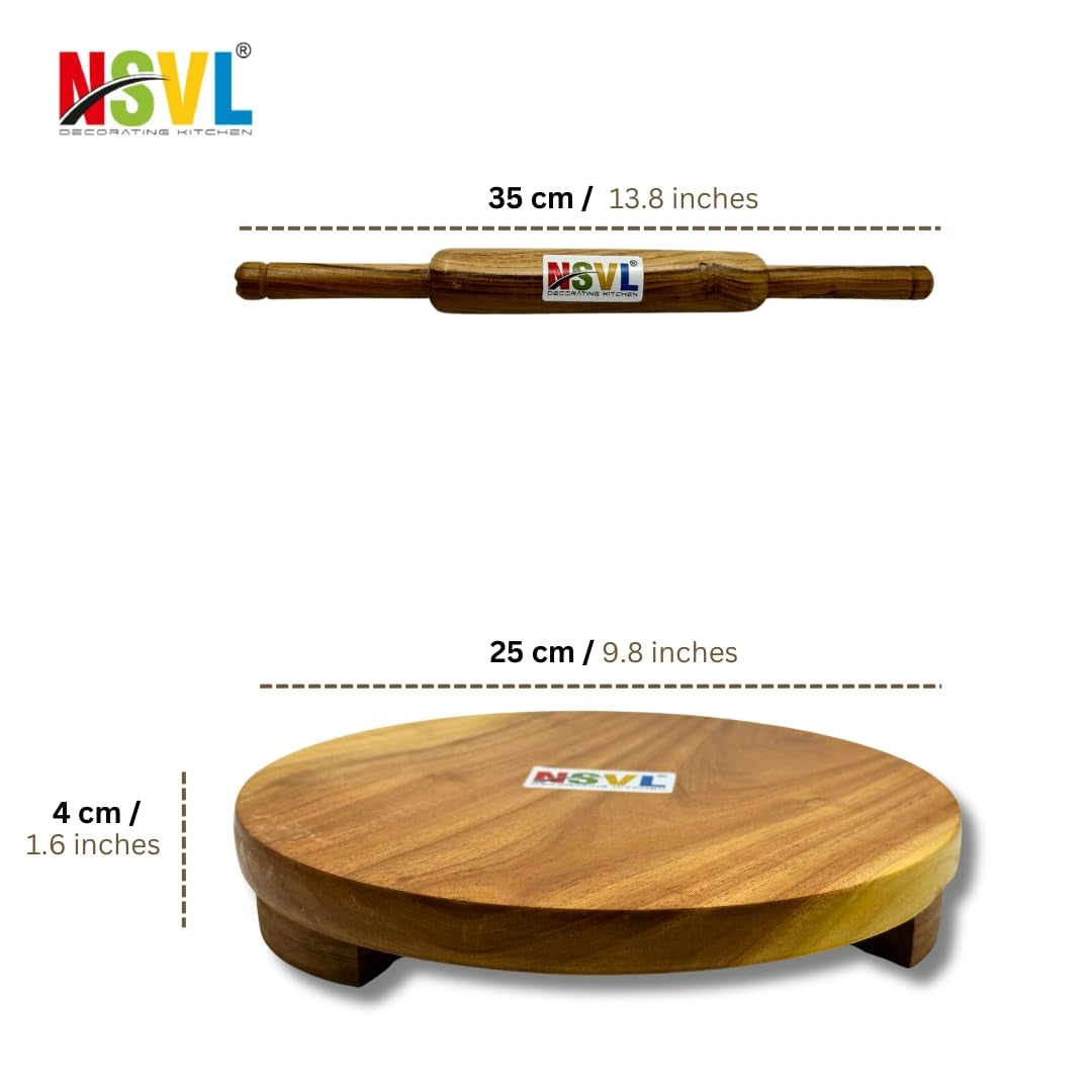 NSVL Neem Polpat Chakla Roti Chapati Maker 25 cm with Sagwan Roti Belan Rolling Pin 35 cm (Neem Polpat with Sagwan Punjabi Belan)