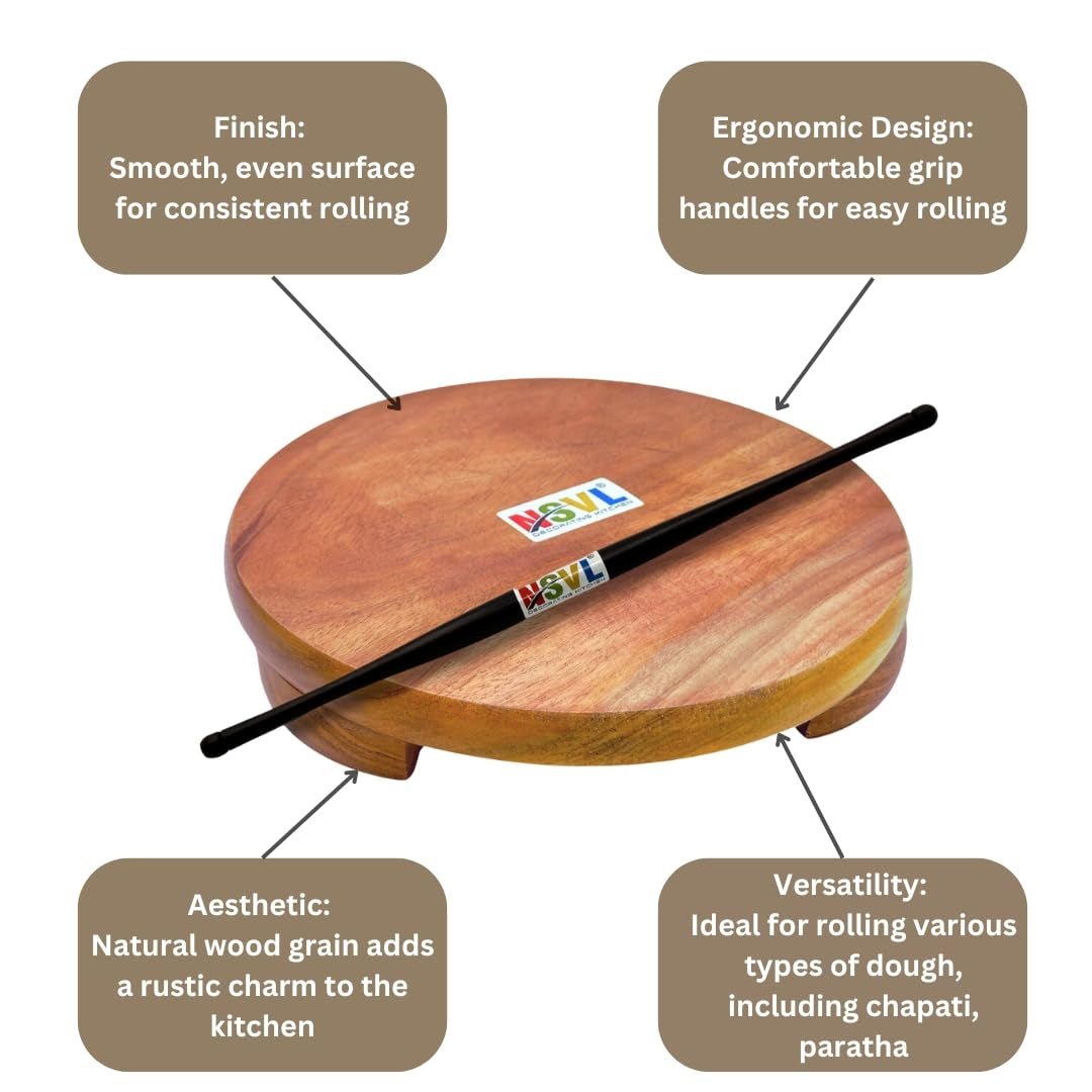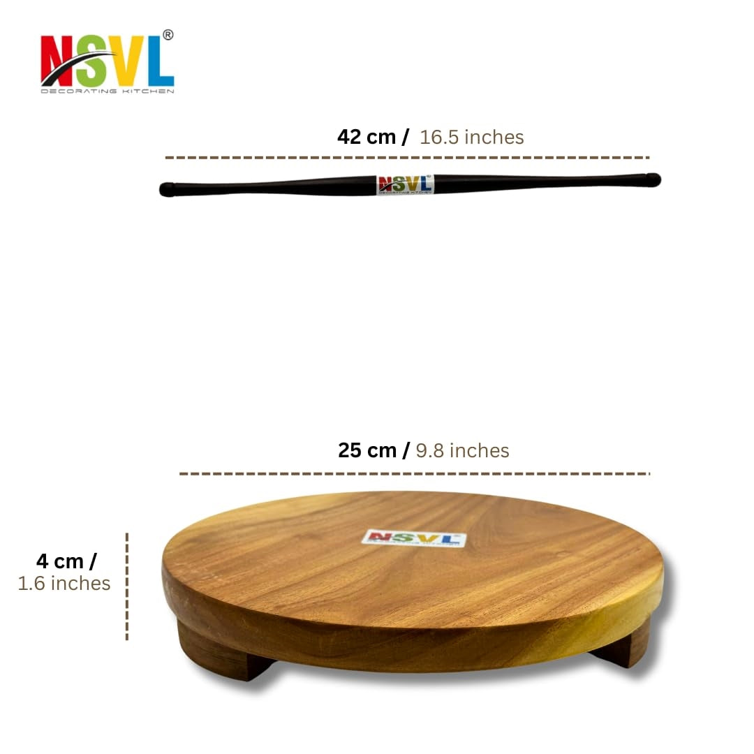 NSVL Neem Polpat Chakla Roti Chapati Maker 25 cm with Sheesham Roti Belan Rolling Pin 42 cm (Neem Polpat with Sheesham Gujrati Belan)