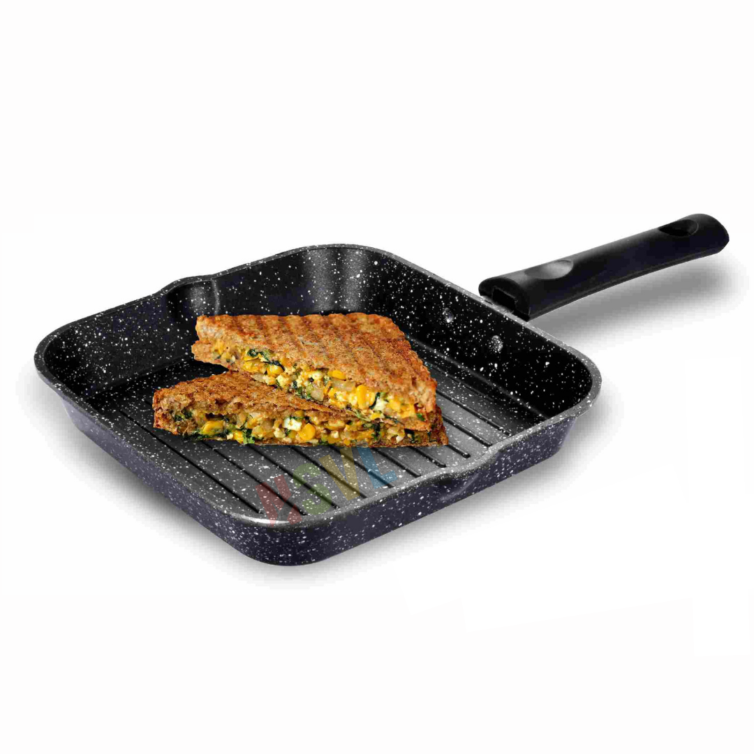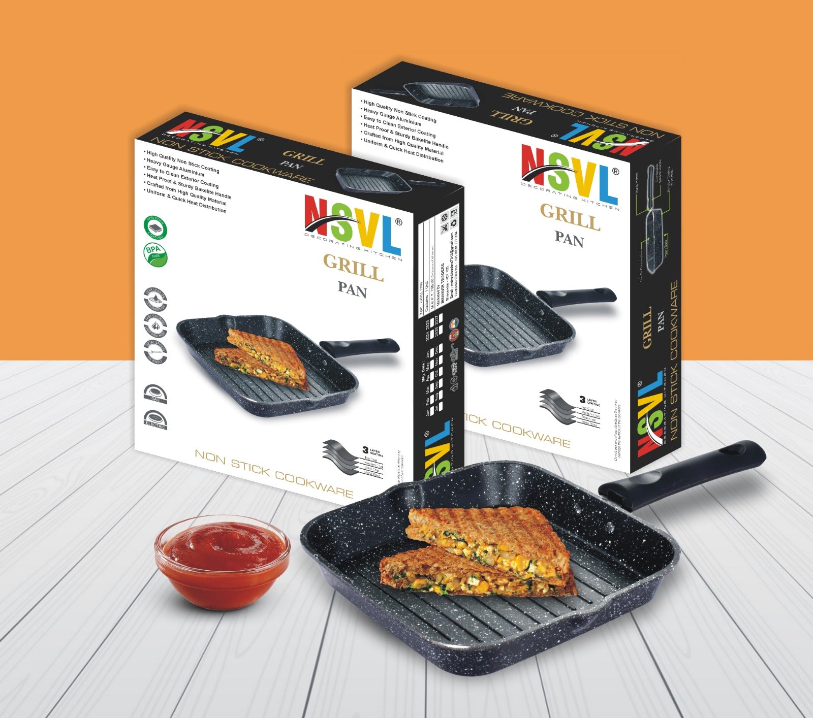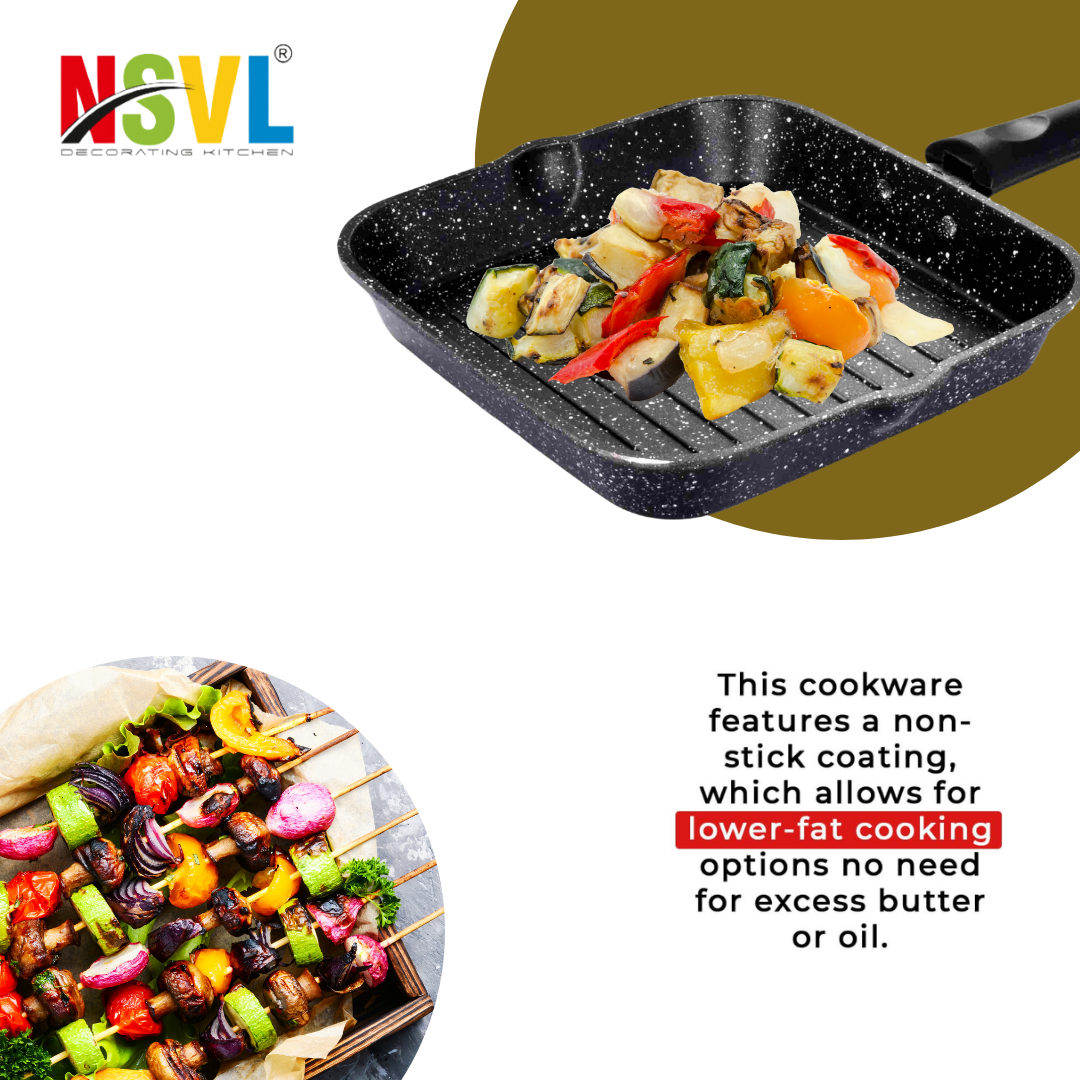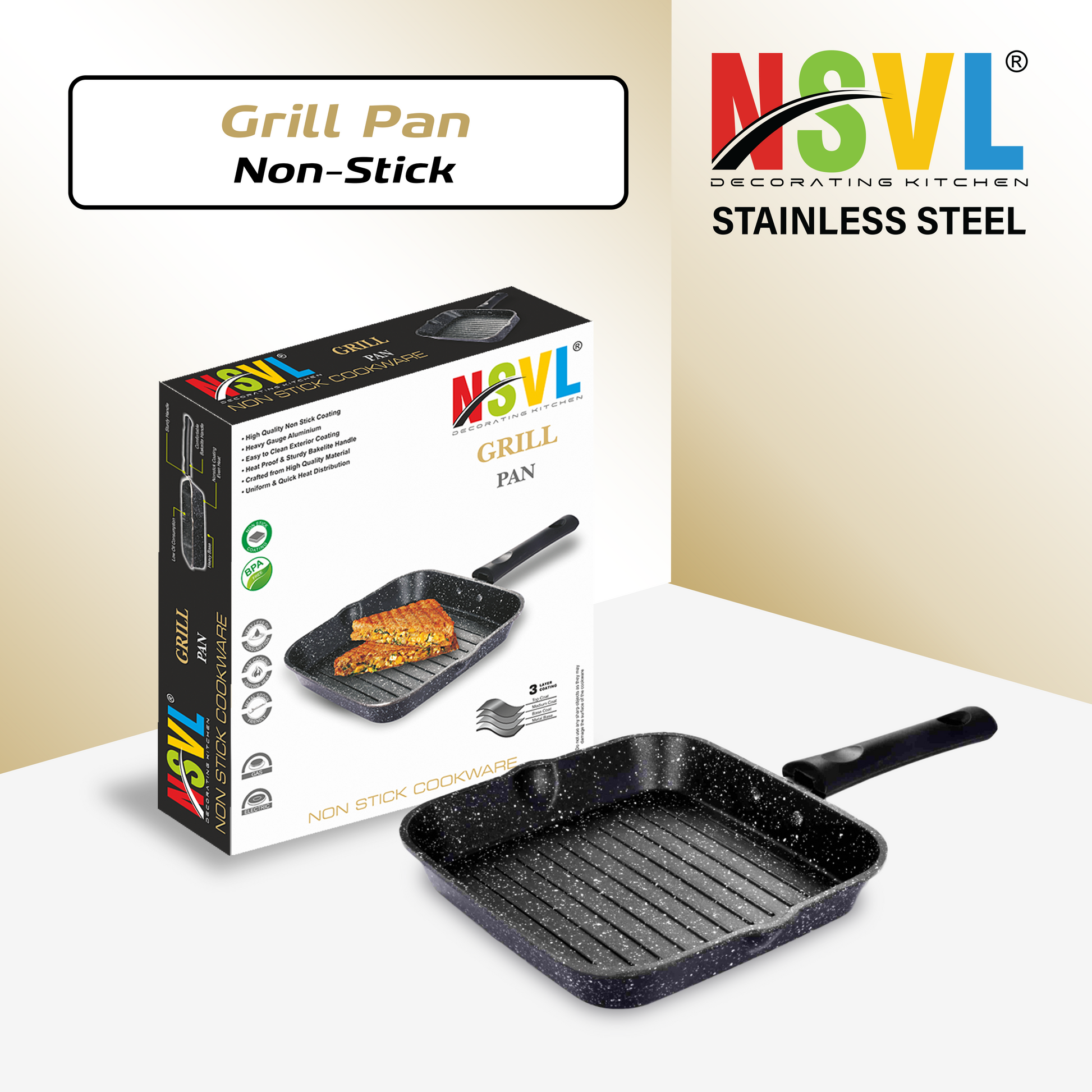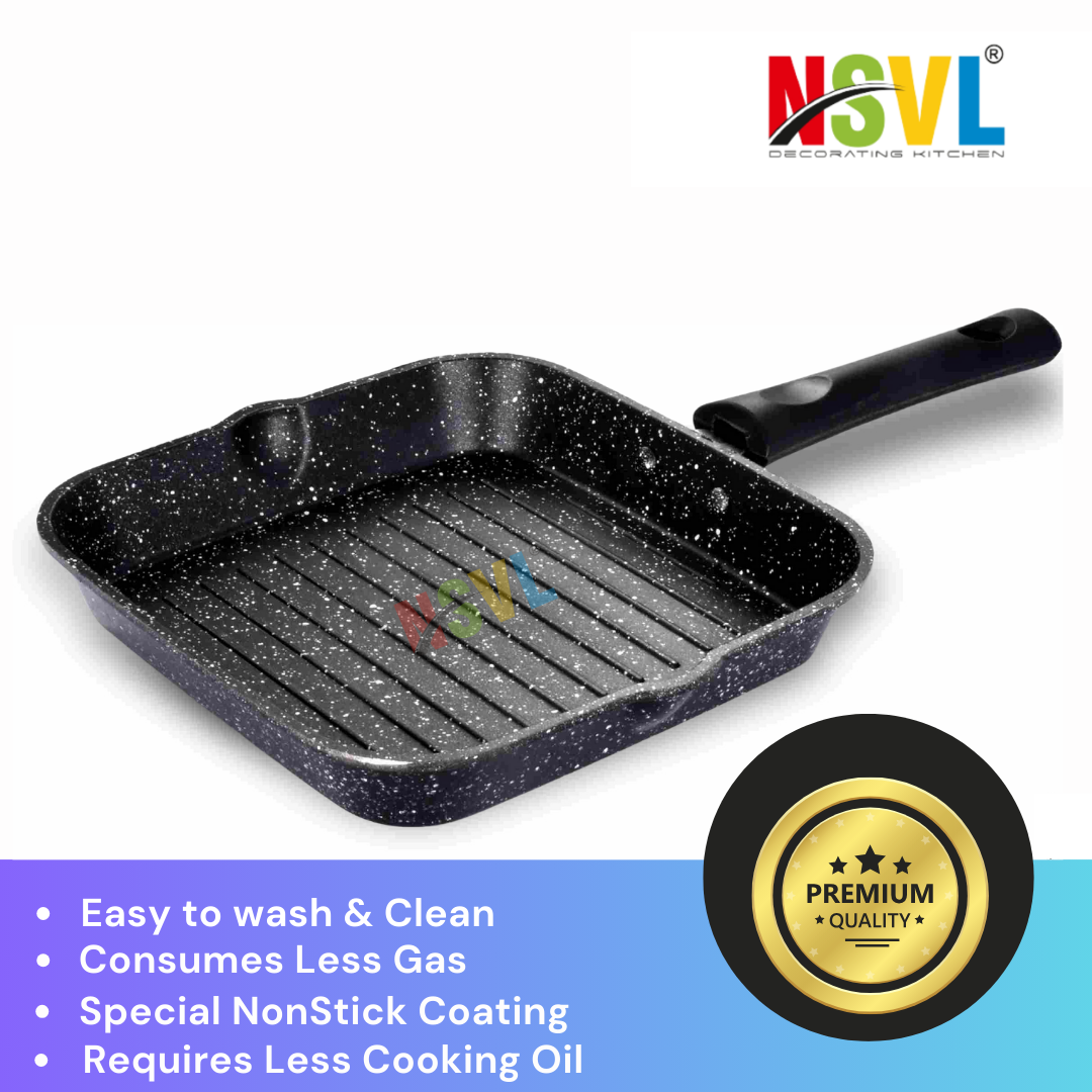 NSVL Non Stick Grill Pan Aluminium Square Gas Stove Compatible Grill Pan Grill Pan 22 cm diameter 1 L capacity (Aluminium, Non-stick)