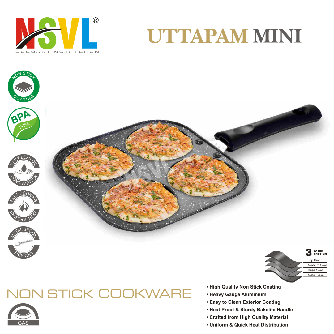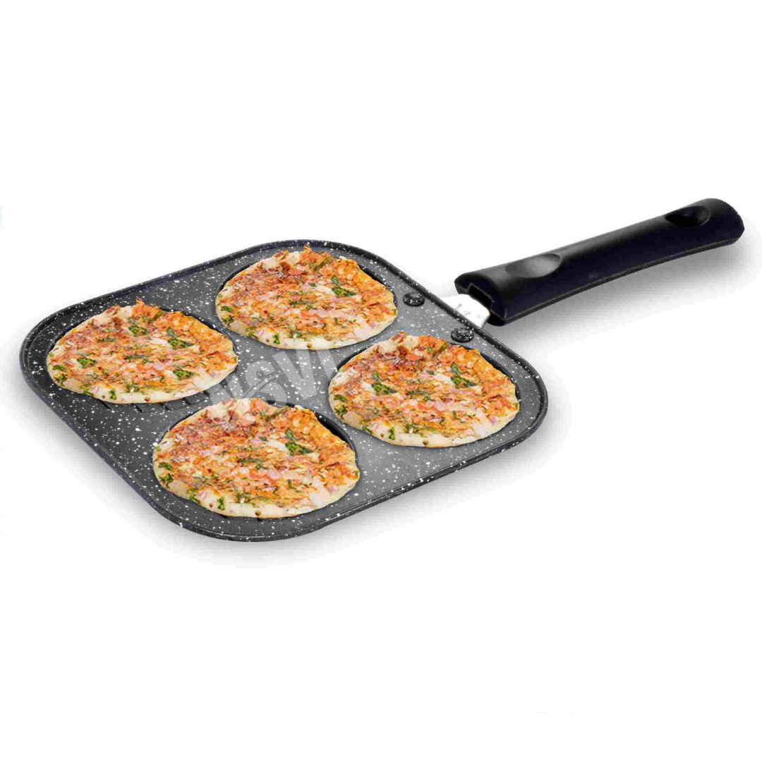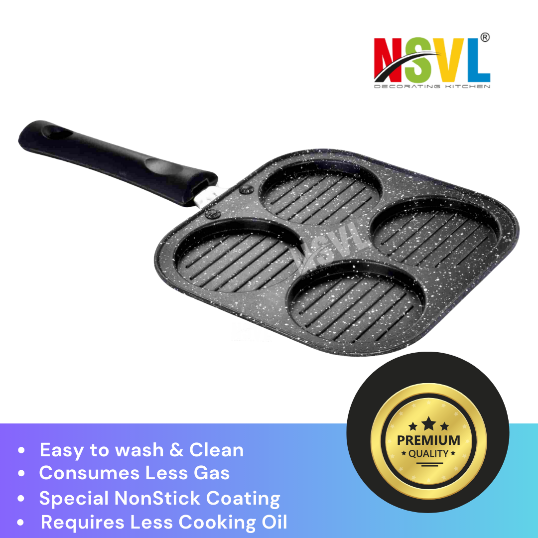 NSVL Non Stick Grill Pan Mini Pan Uttapam Tawa Aluminum Multi Snack Maker 4 Cavity, Pancake Maker (Black)
