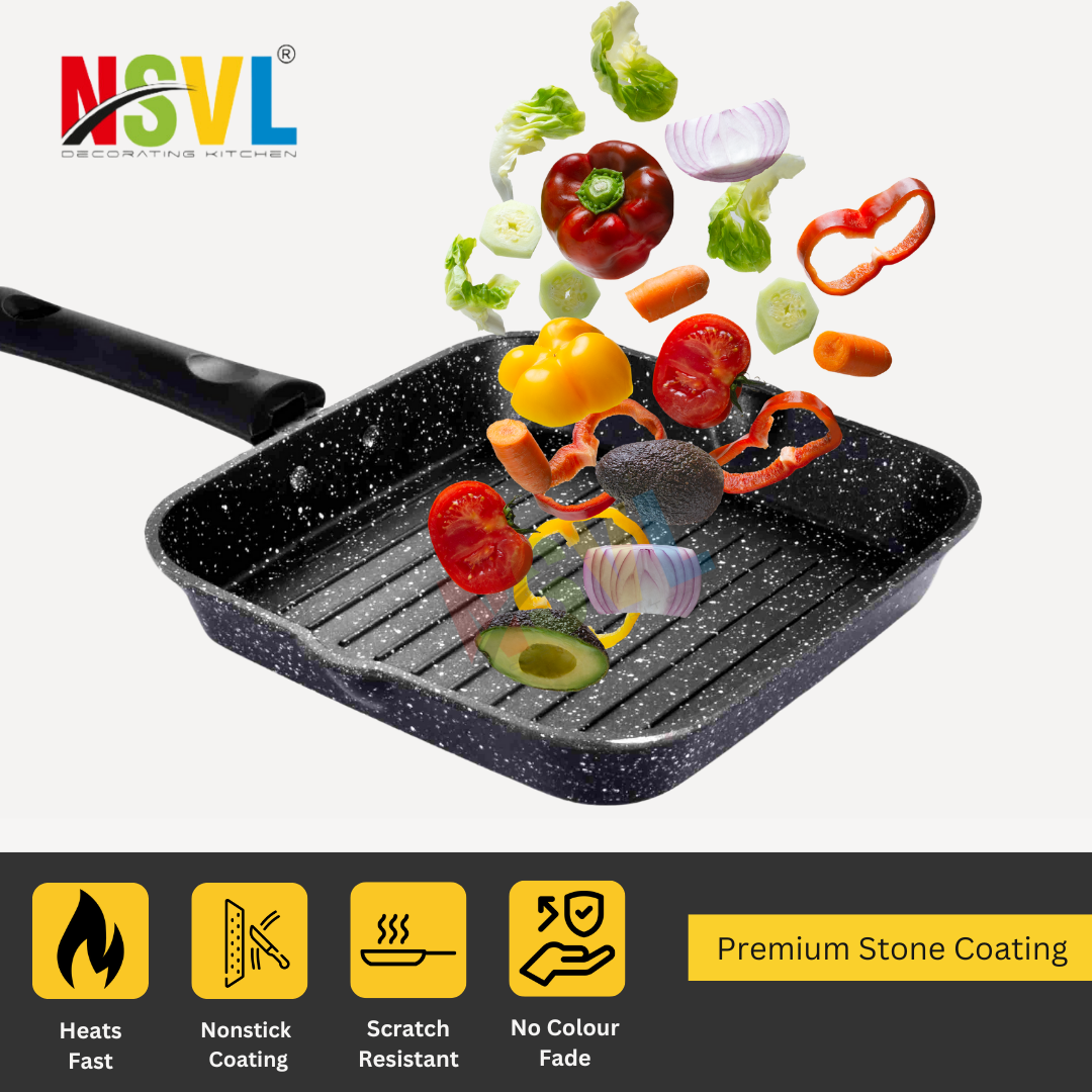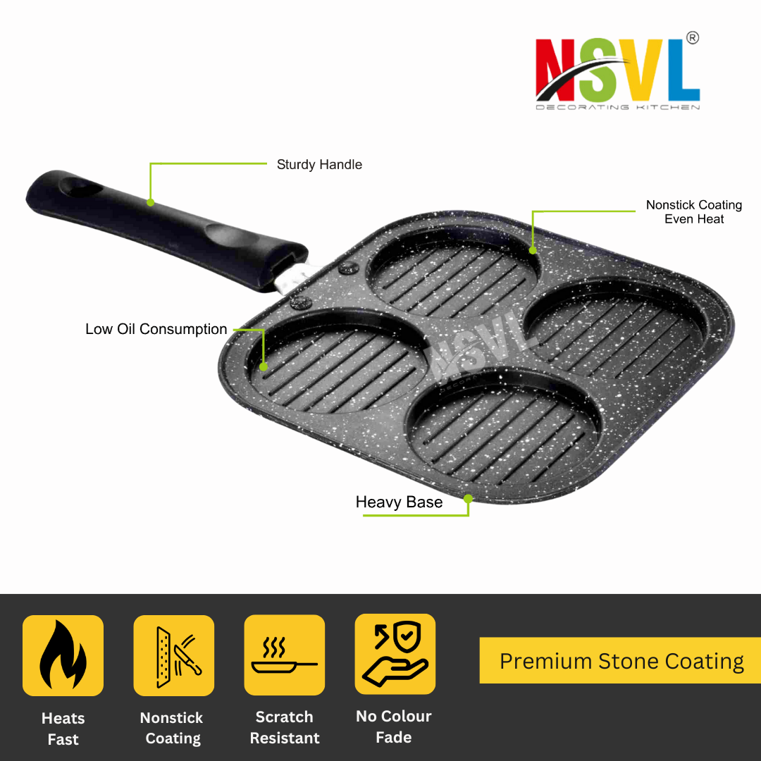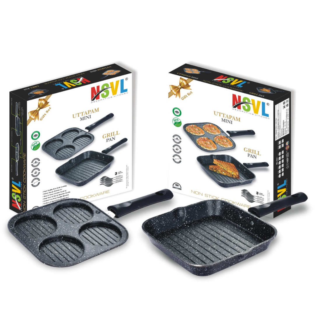 NSVL Non Stick Grill Pan & Mini Uttapam Pan Tawa Aluminum Multi Snack Maker / 2 pc Combo