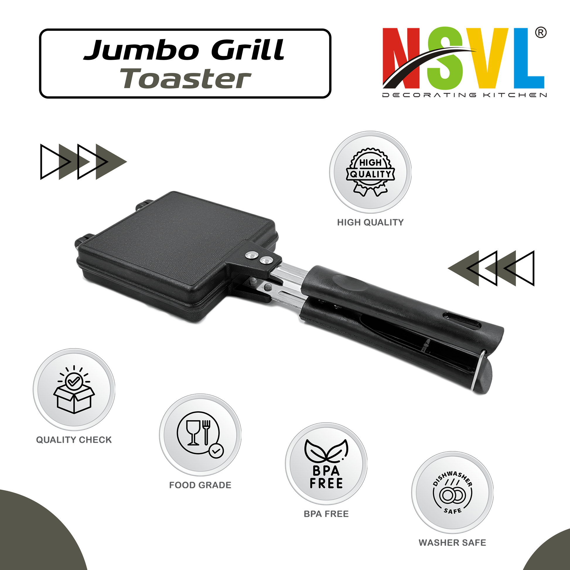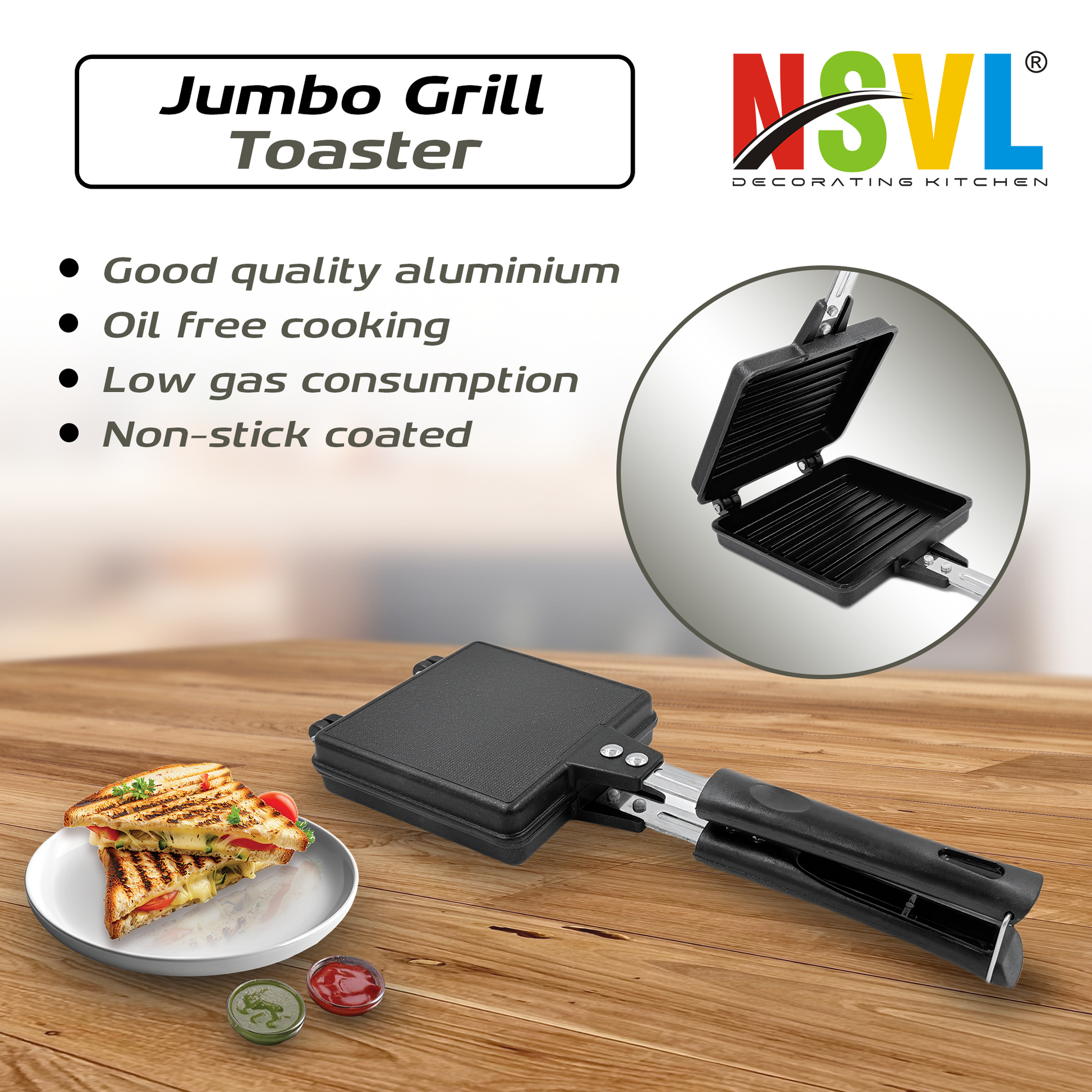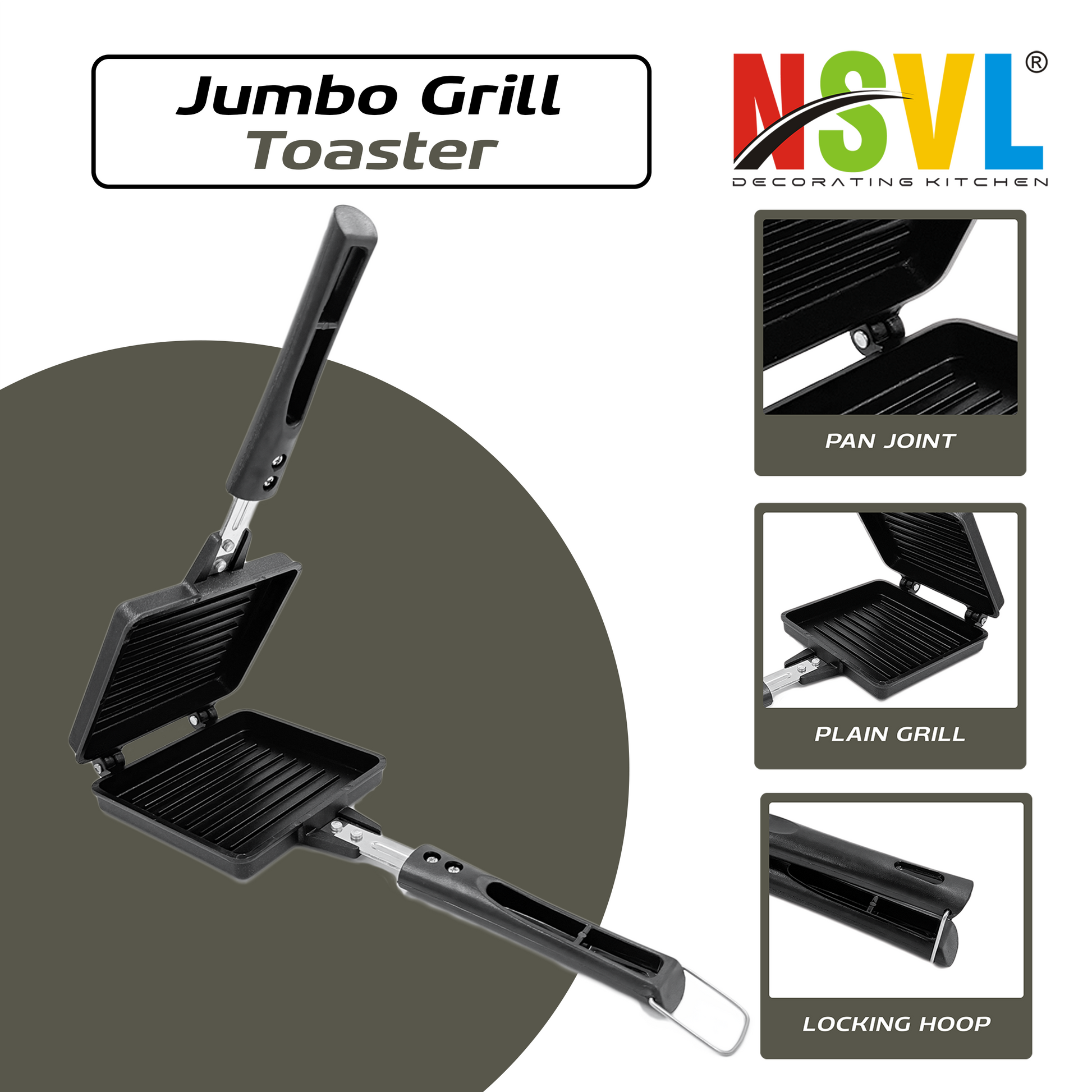 NSVL Non-stick Jumbo Grill Gas Toaster Premium Big Bread Toaster, Sandwich Maker Griller with bakelite Handles and Spatter, Gas Stove Toaster(Aluminium, Black)