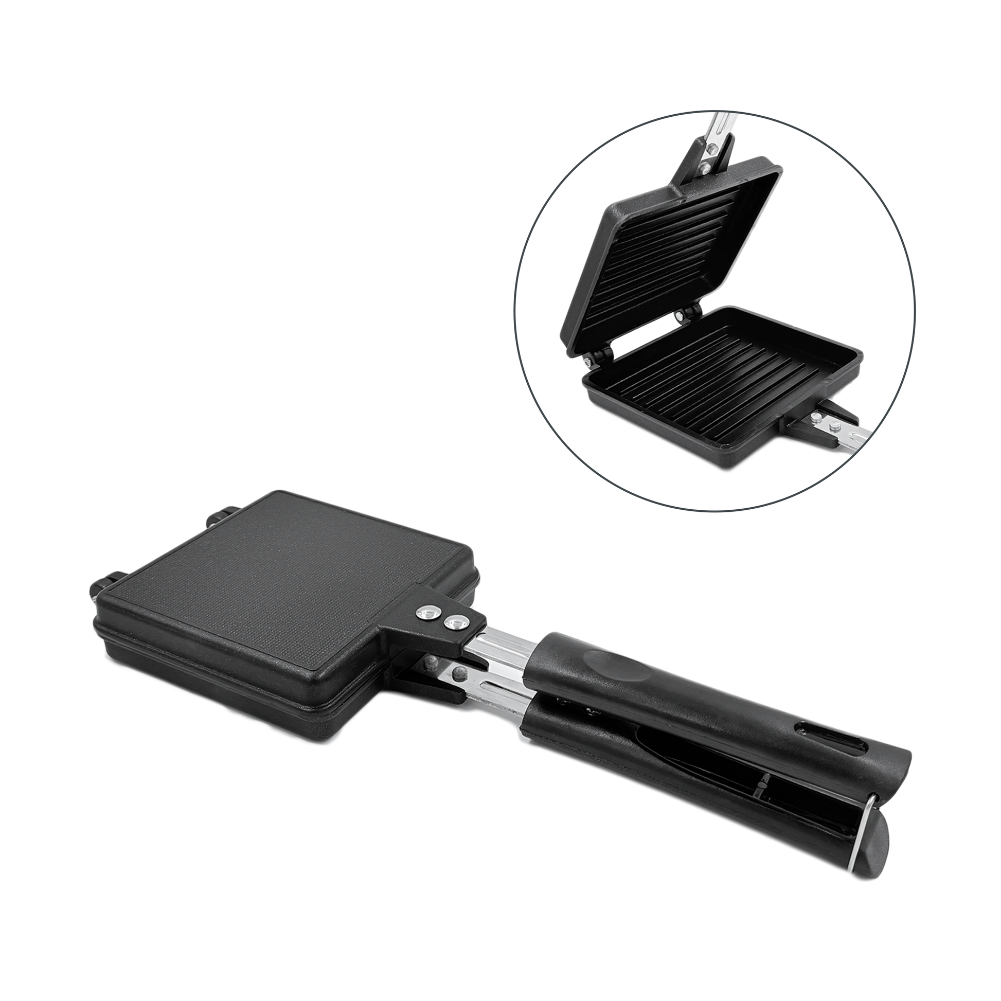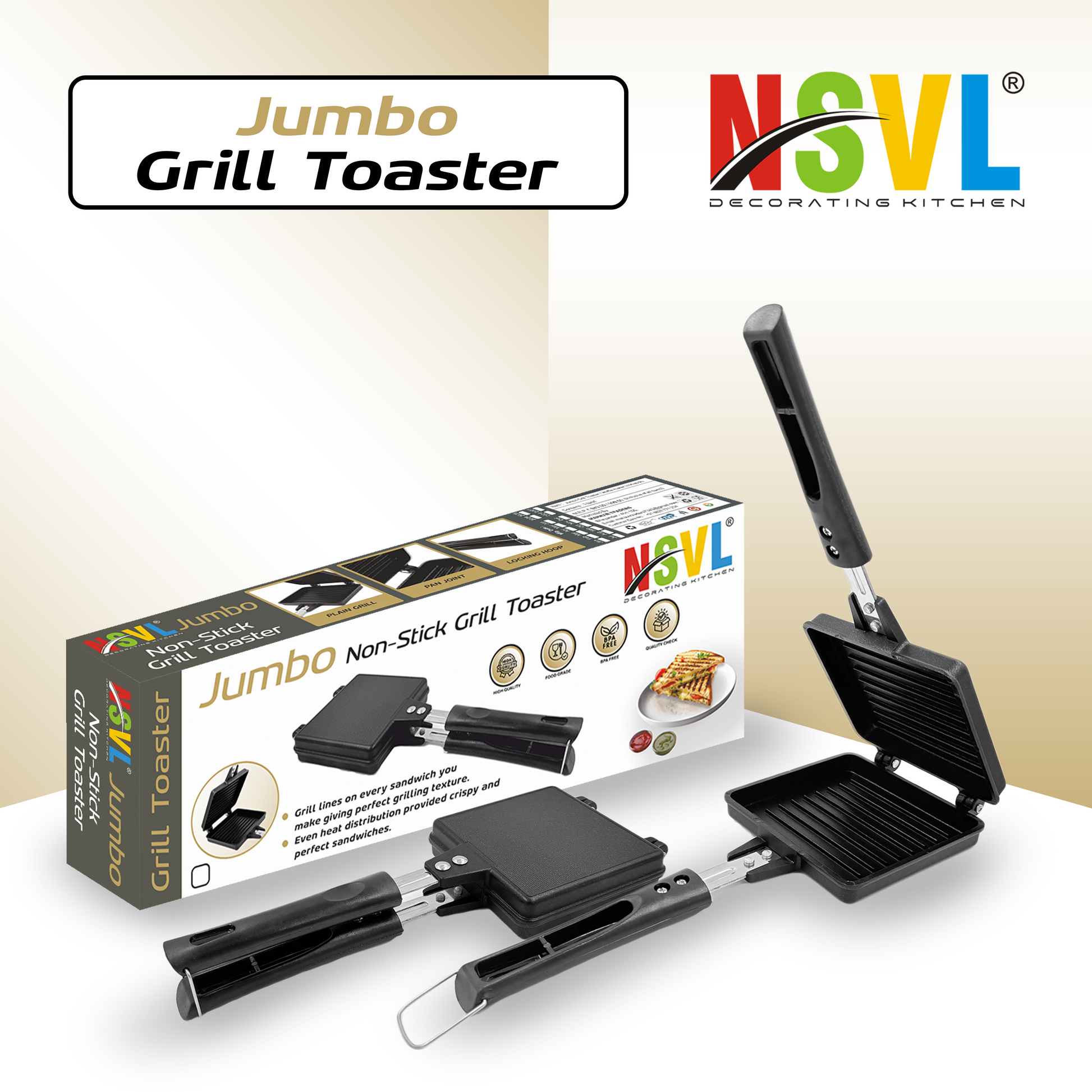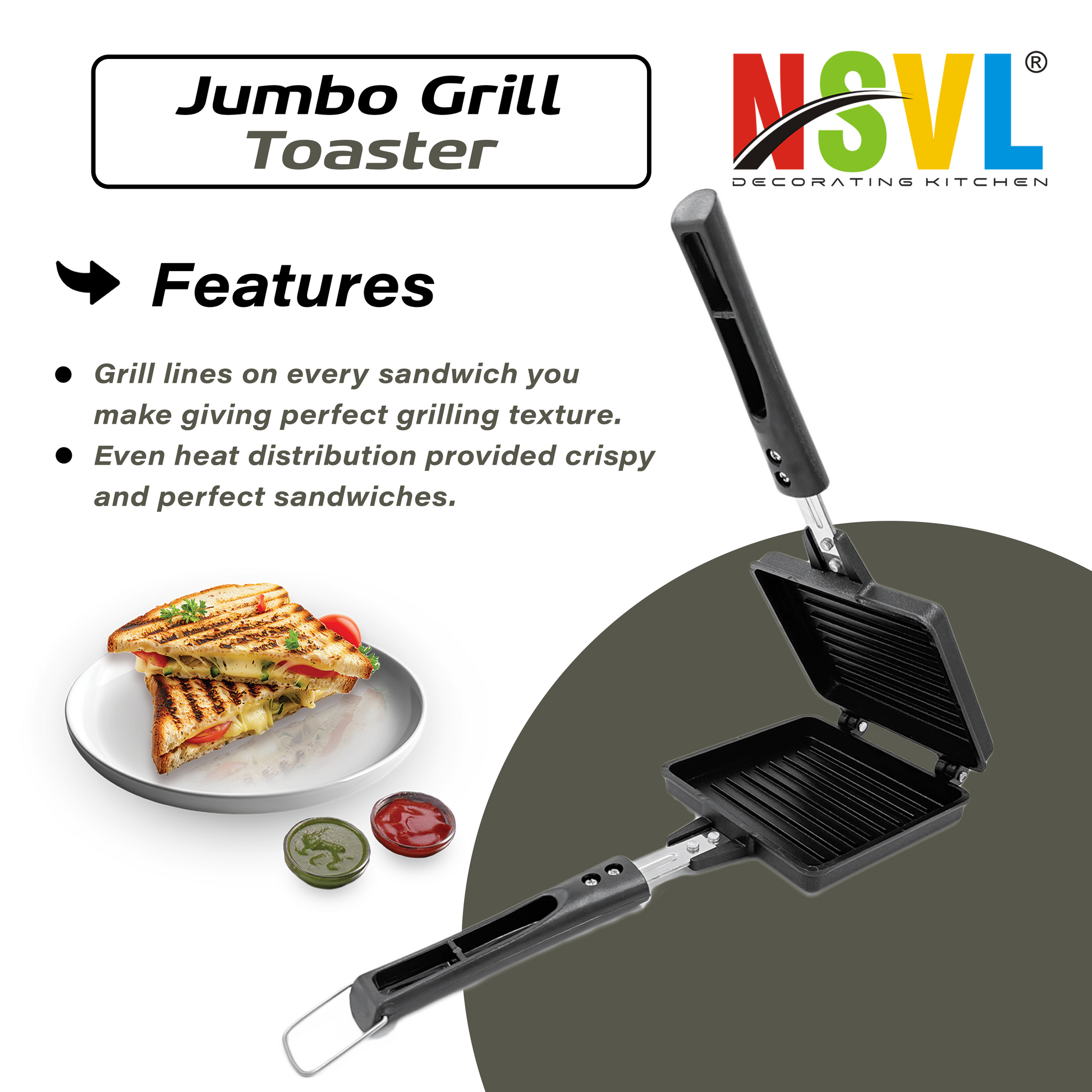 NSVL Non-stick Jumbo Grill Gas Toaster Premium Big Bread Toaster, Sandwich Maker Griller with bakelite Handles and Spatter, Gas Stove Toaster(Aluminium, Black)