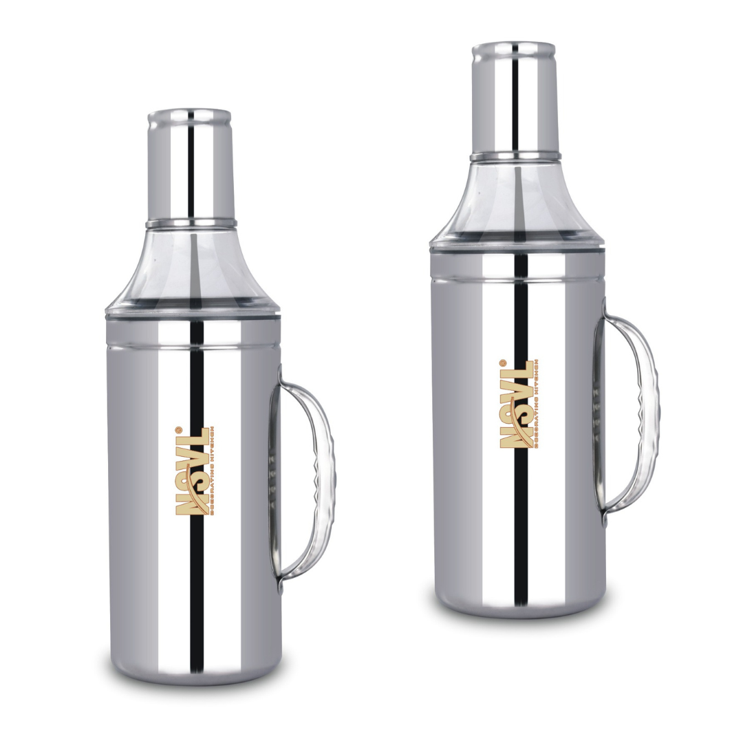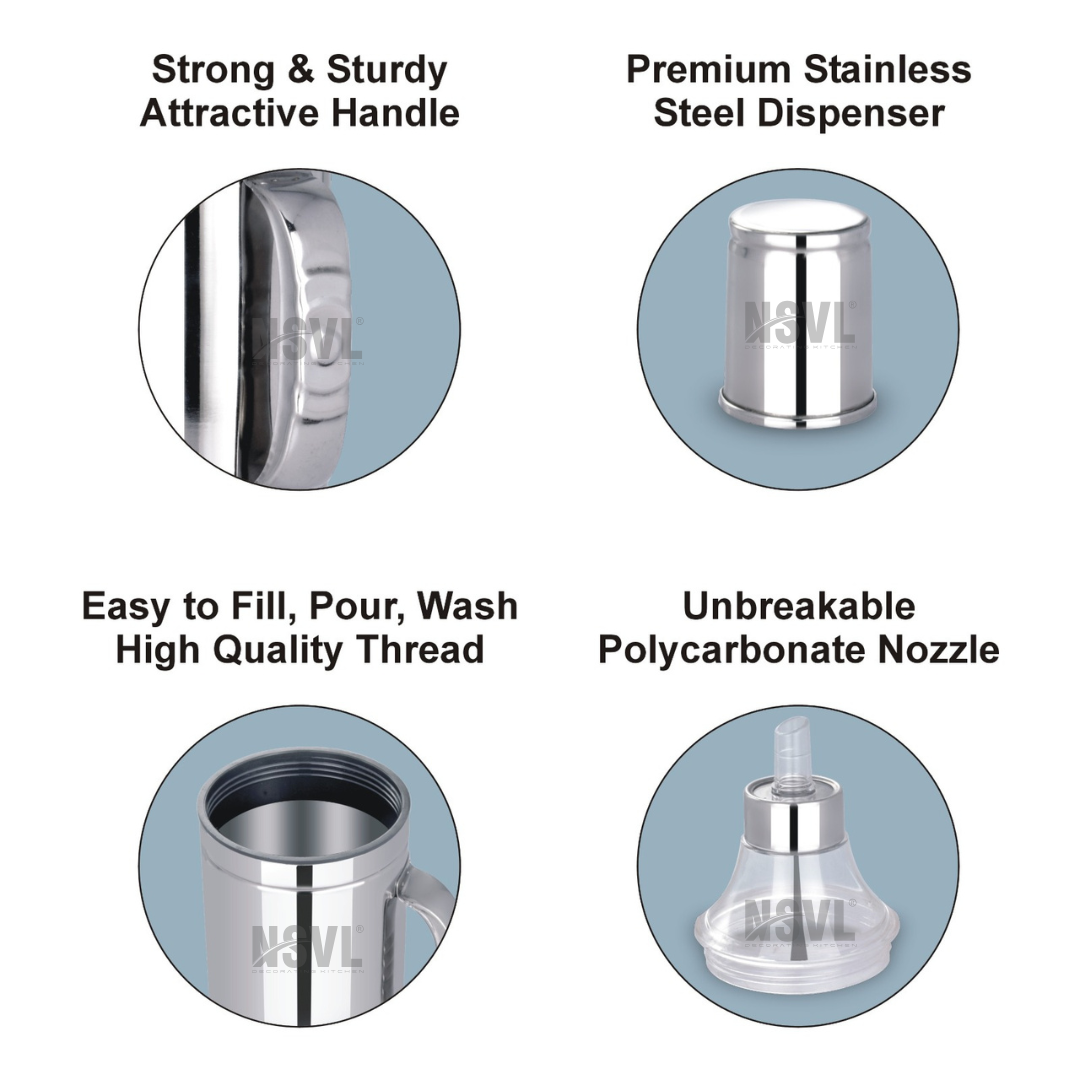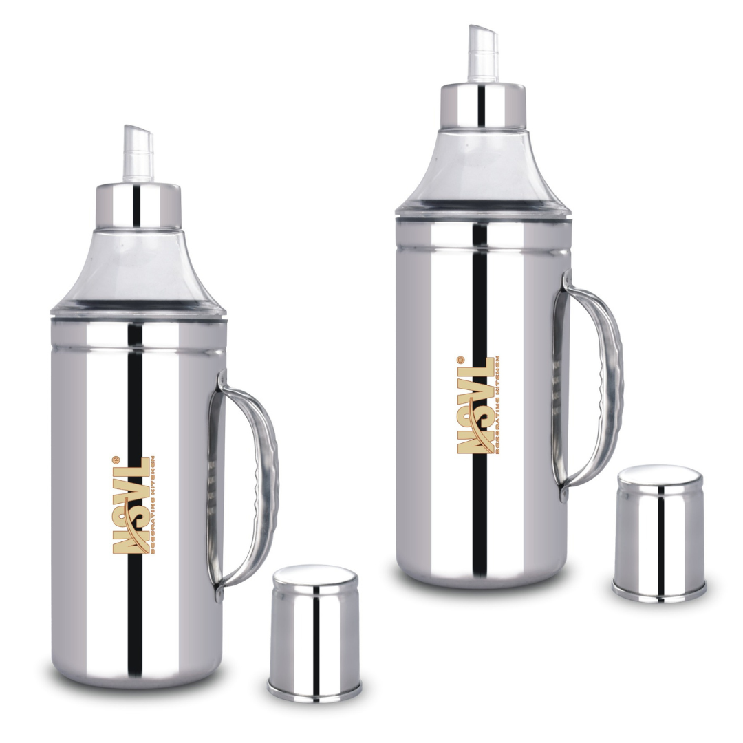 Nsvl PACK OF 2 Deluxe Stainless Steel Oil Dispenser with Nozzle | Oil Container | Oil Pourer | Oil Pot | Oil Can| Oil Bottle with Handle