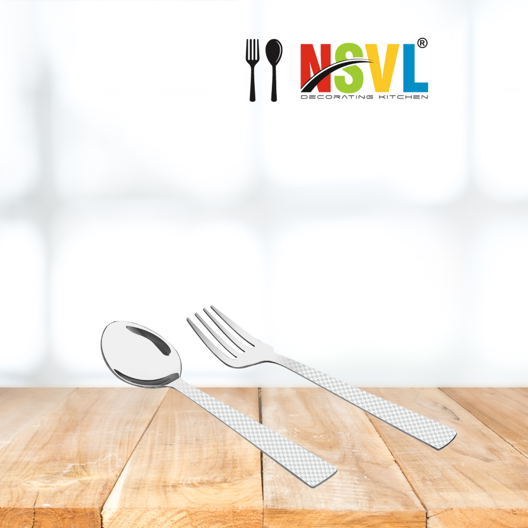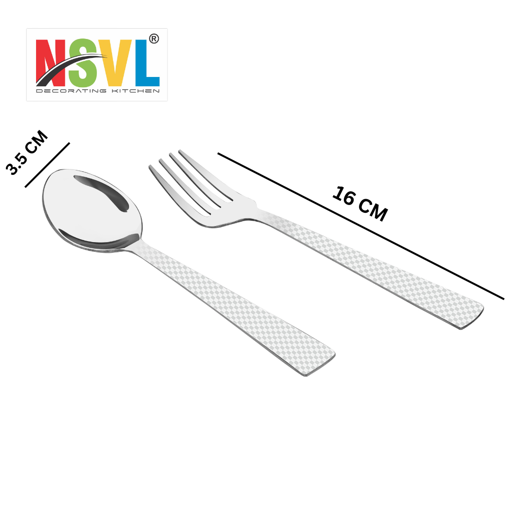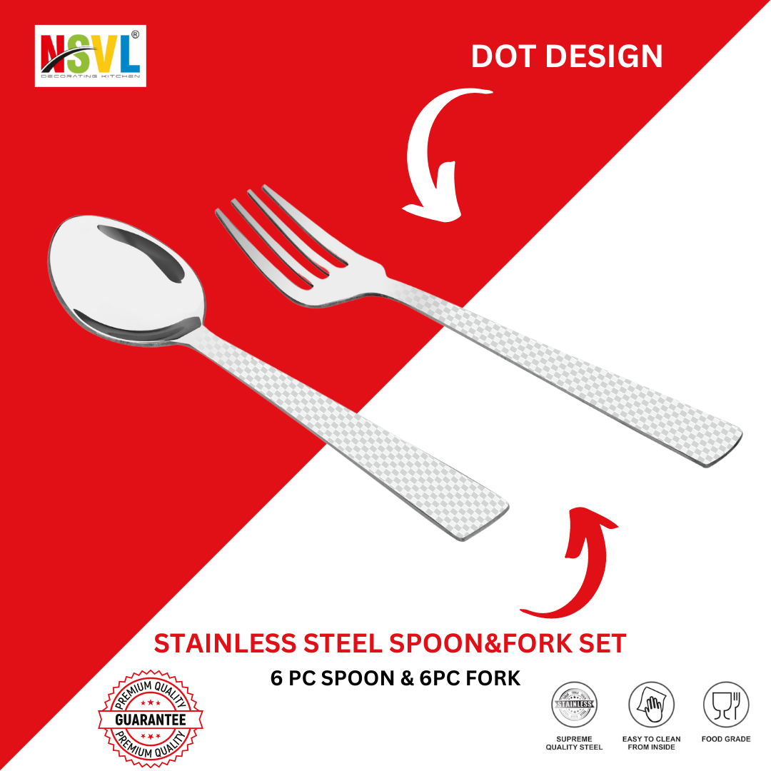 NSVL Dot Design Stainless Steel Heavy Gauge Spoon and Fork Set of 12 Pc Table Spoon 6 Pc /Table Fork 6 Pc