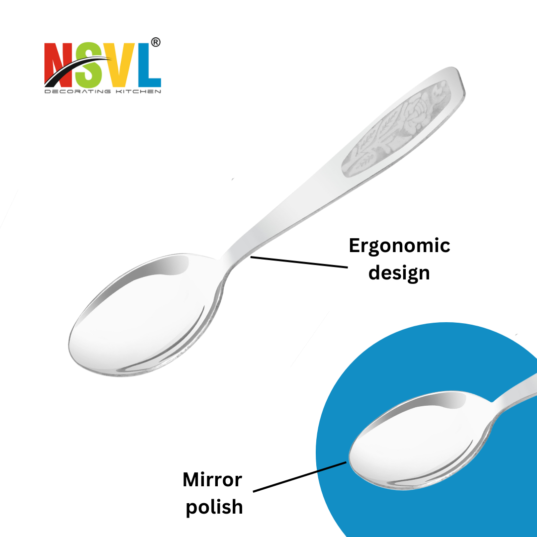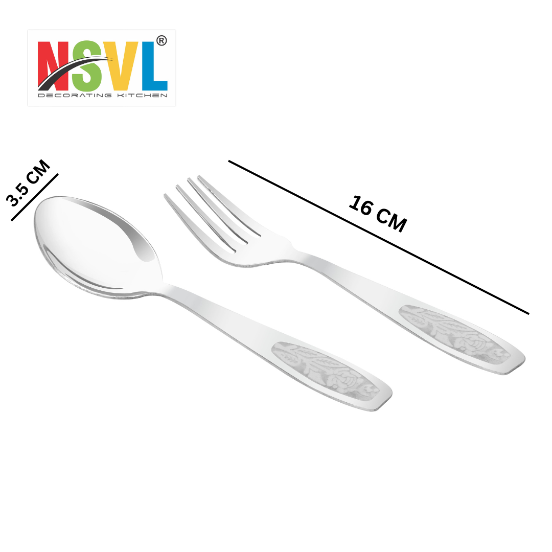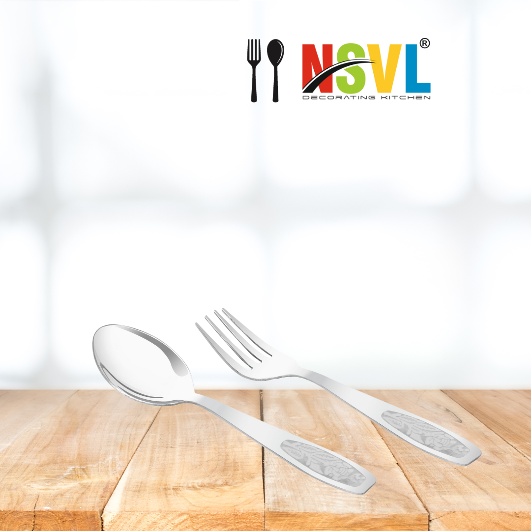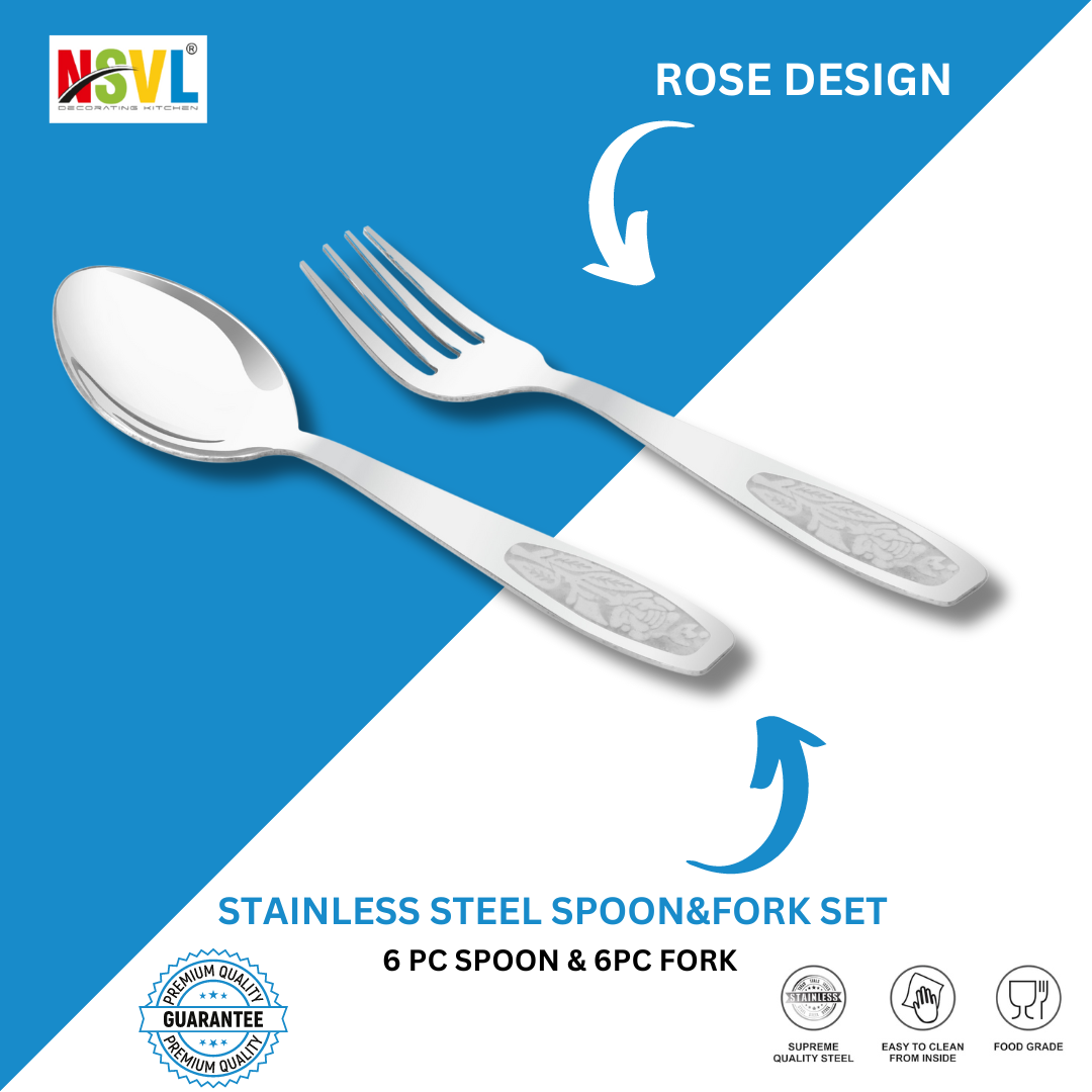 NSVL Rose Design Stainless Steel Heavy Gauge Spoon and Fork Set of 12 Pc Table Spoon 6 Pc /Table Fork 6 Pc