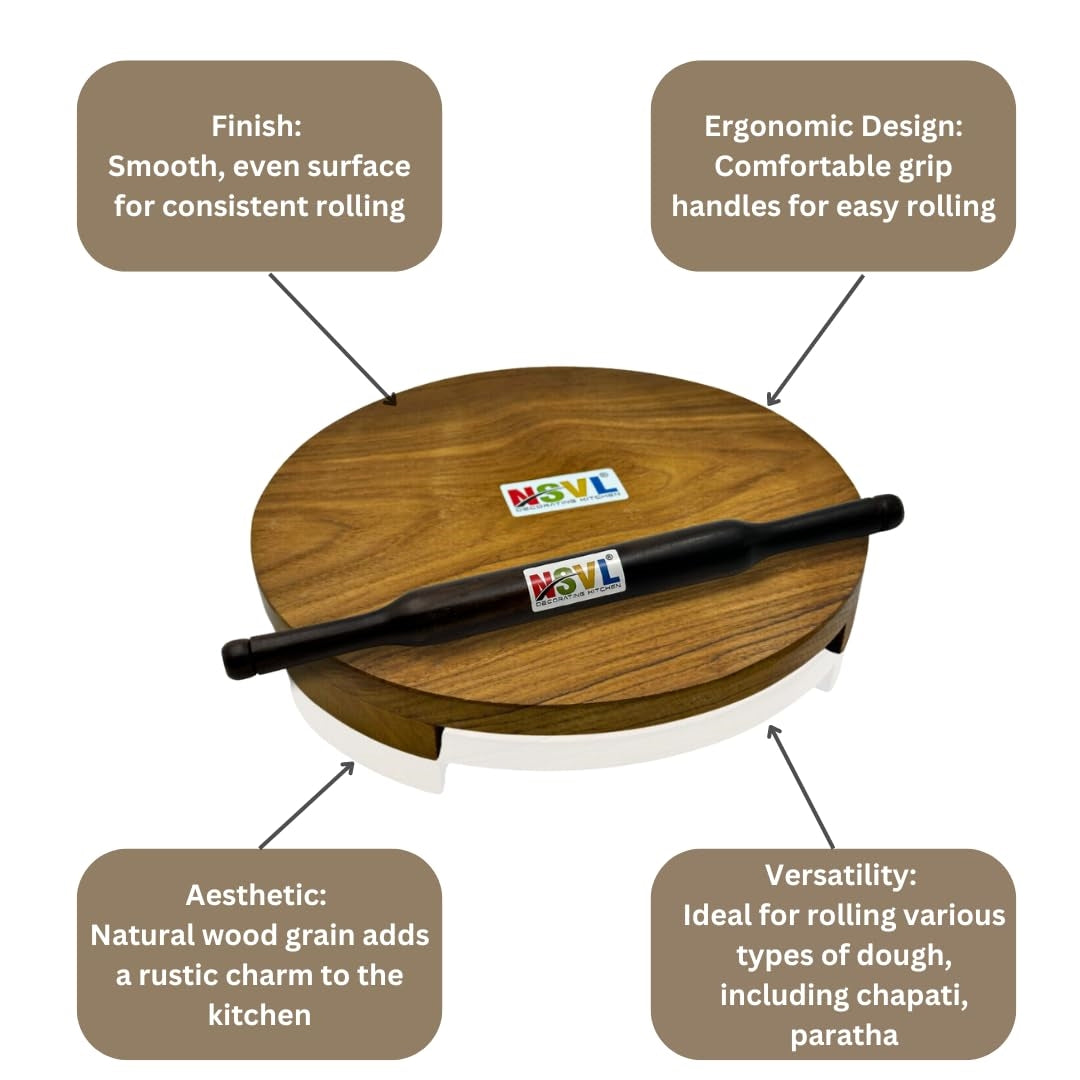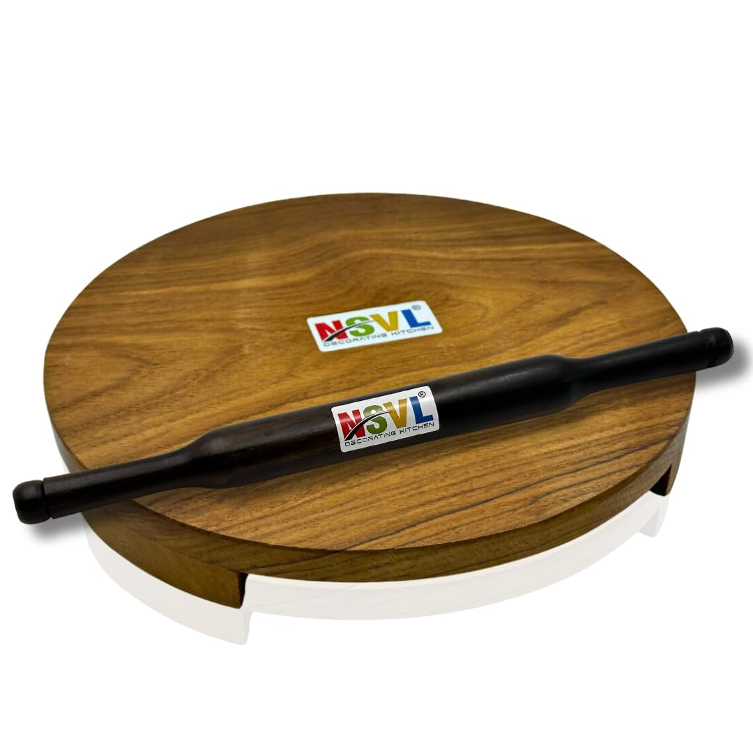 NSVL Sagwan Polpat Chakla Roti Chapati Maker 25 cm with Sheesham Roti Belan Rolling Pin 36 cm (Sagwan Polpat with Sheesham Belan)
