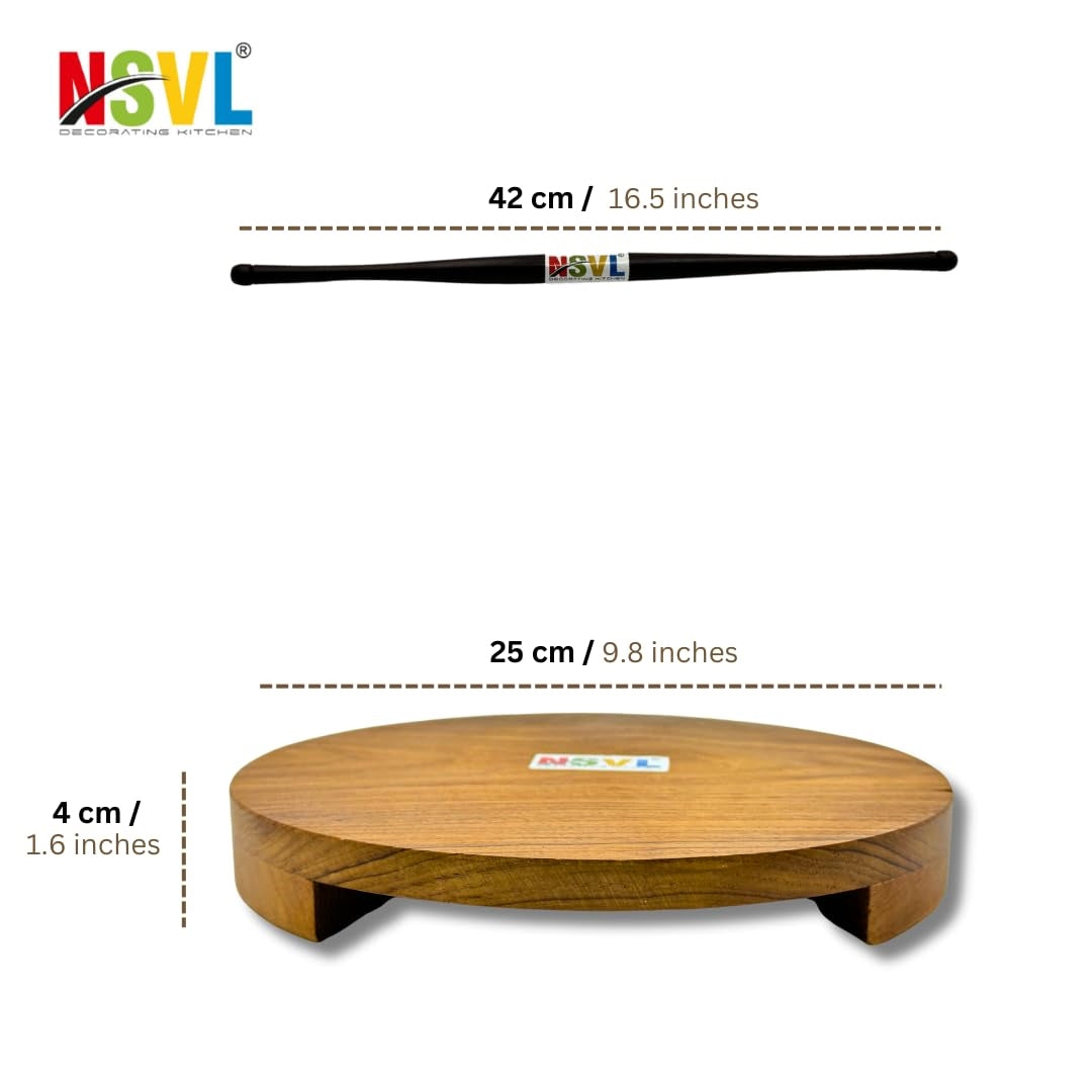 NSVL Sagwan Polpat Chakla Roti Chapati Maker 25 cm with Sheesham Roti Belan Rolling Pin 42 cm (Sagwan Polpat with Sheesham Gujrati Belan)