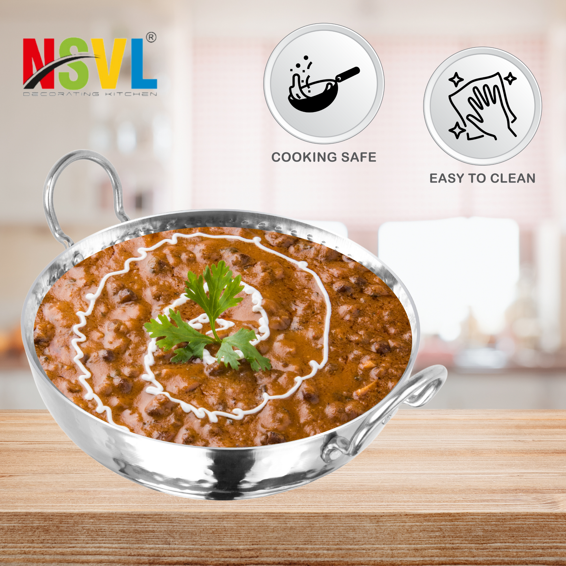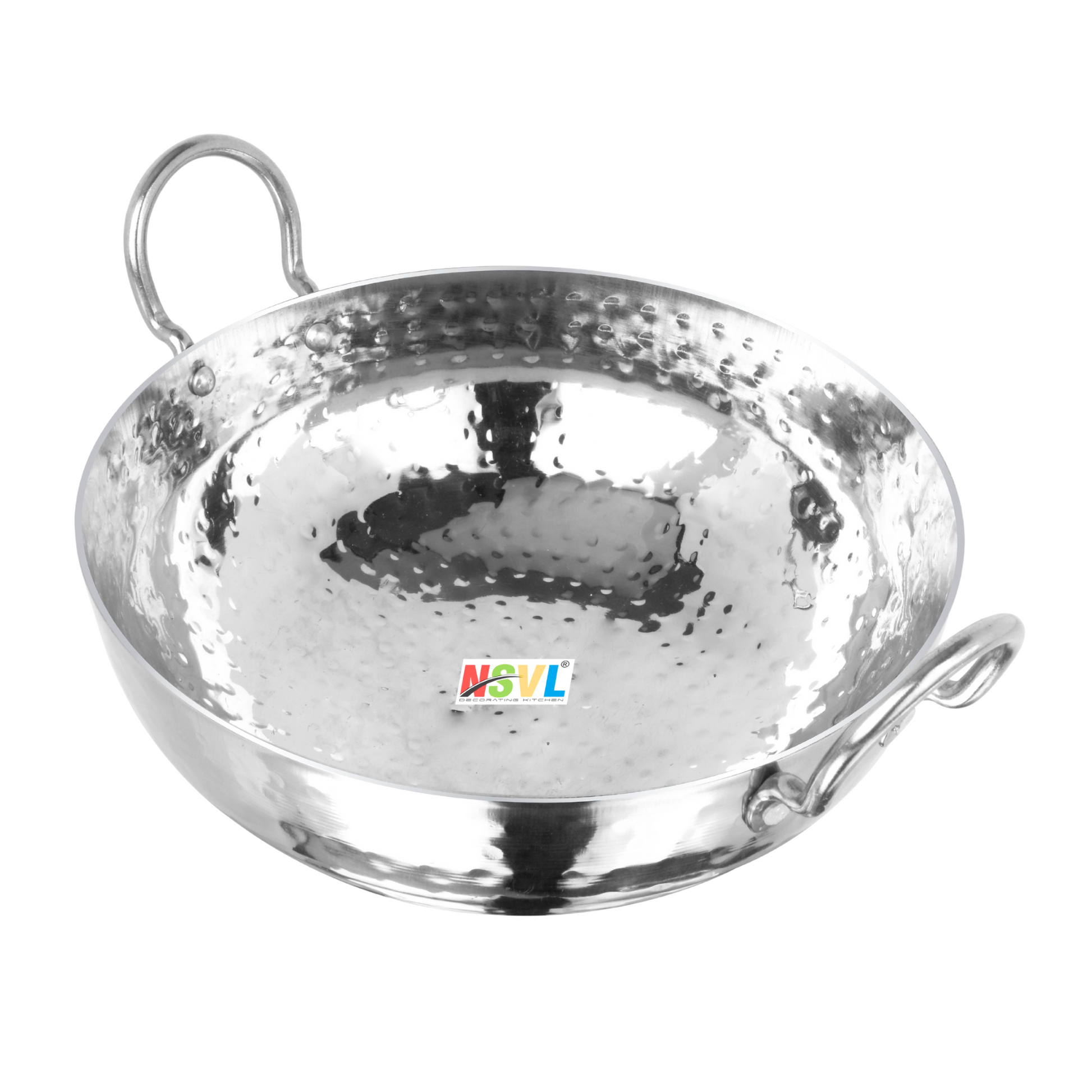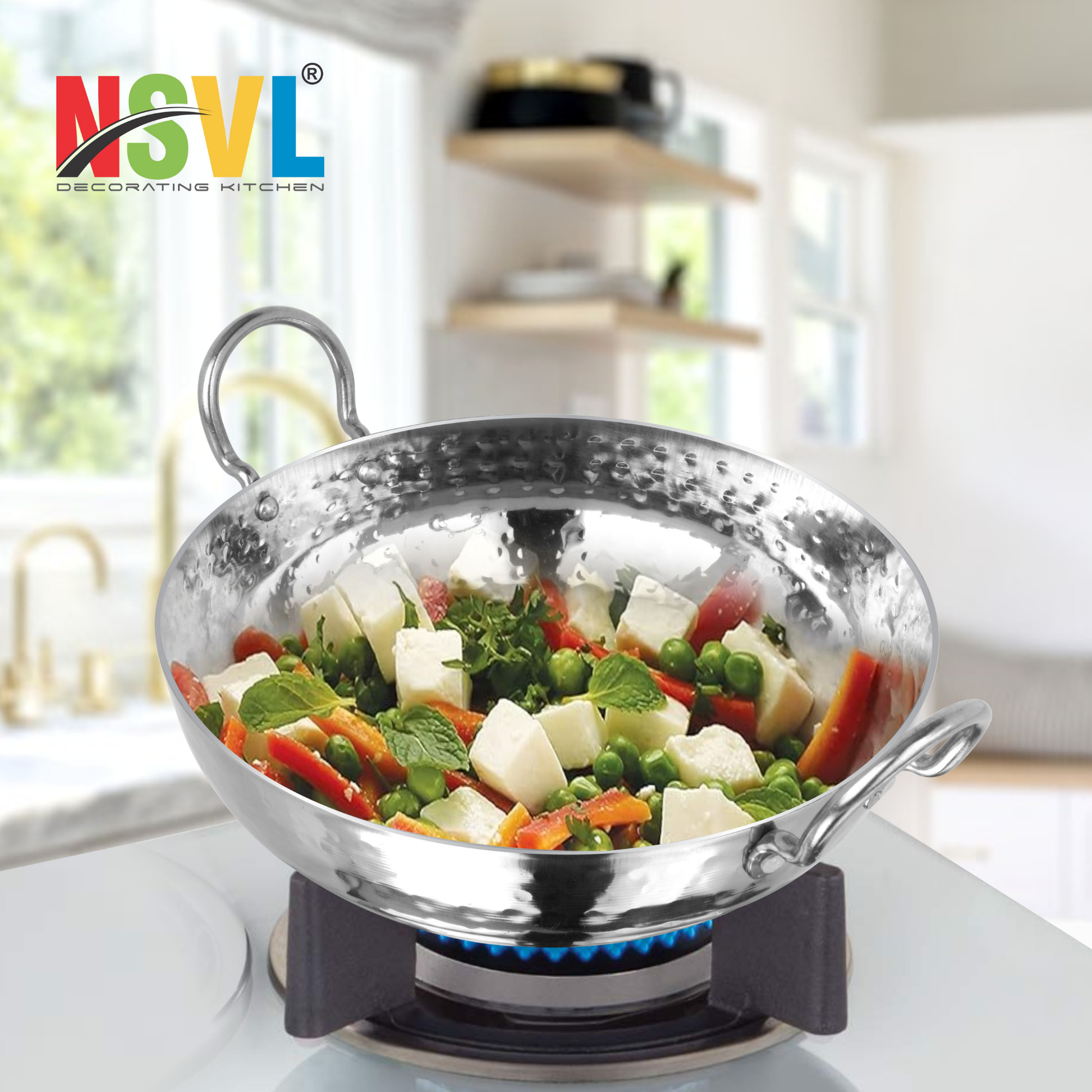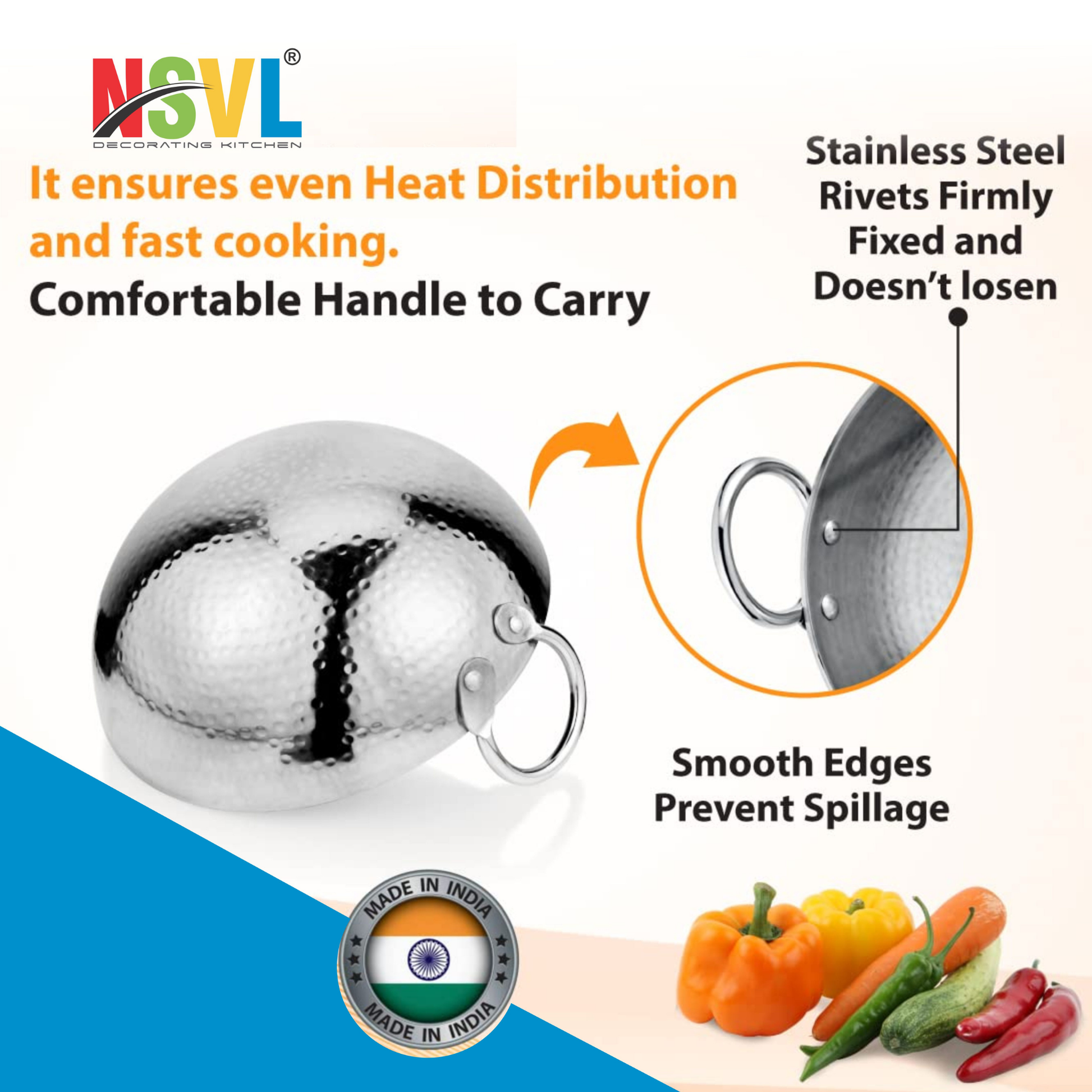 NSVL Stainless Steel Hammered Tasla/Heavy Bottom Cookware/Kadhai/Kadai for Kitchen/Utensils for Cooking, Deep Frying