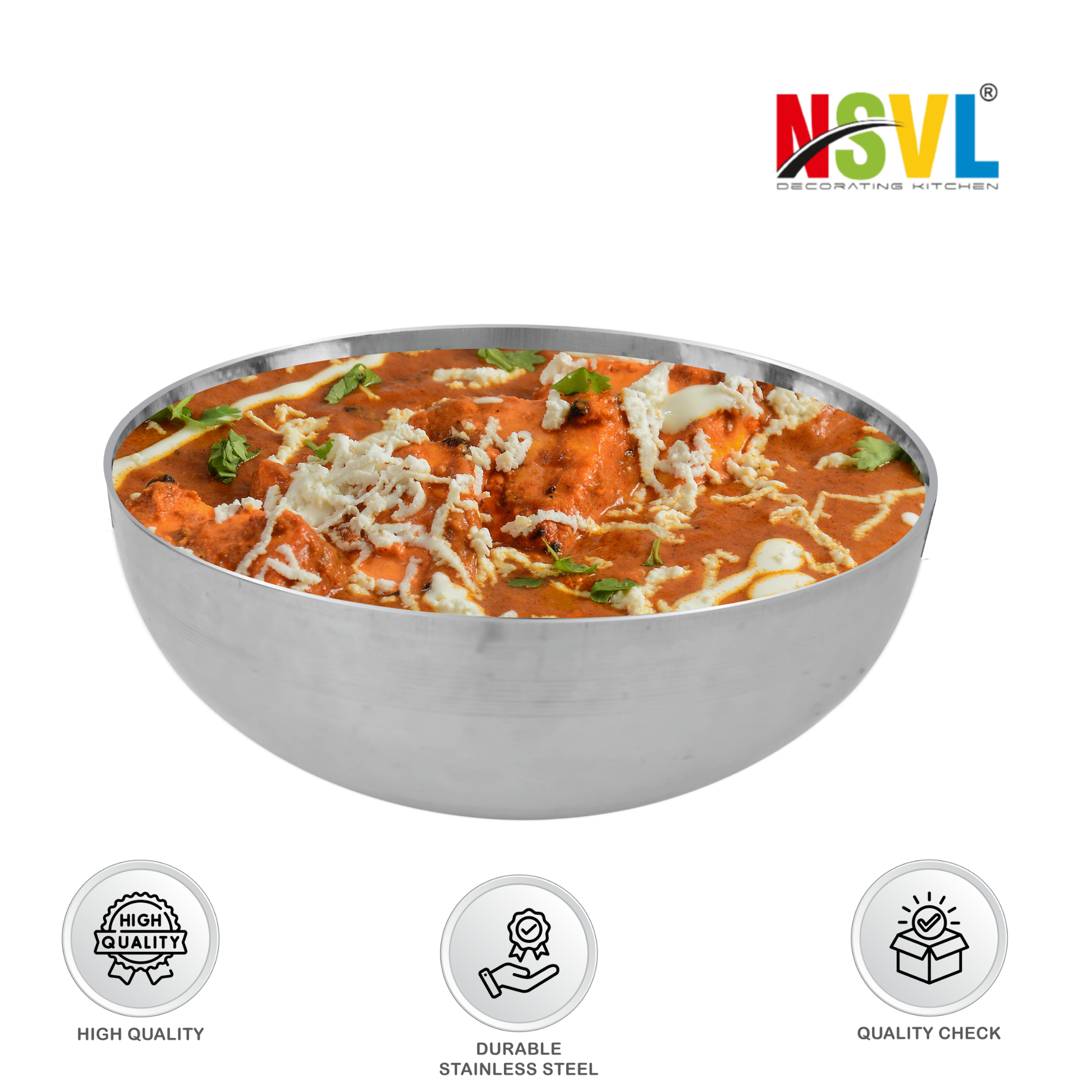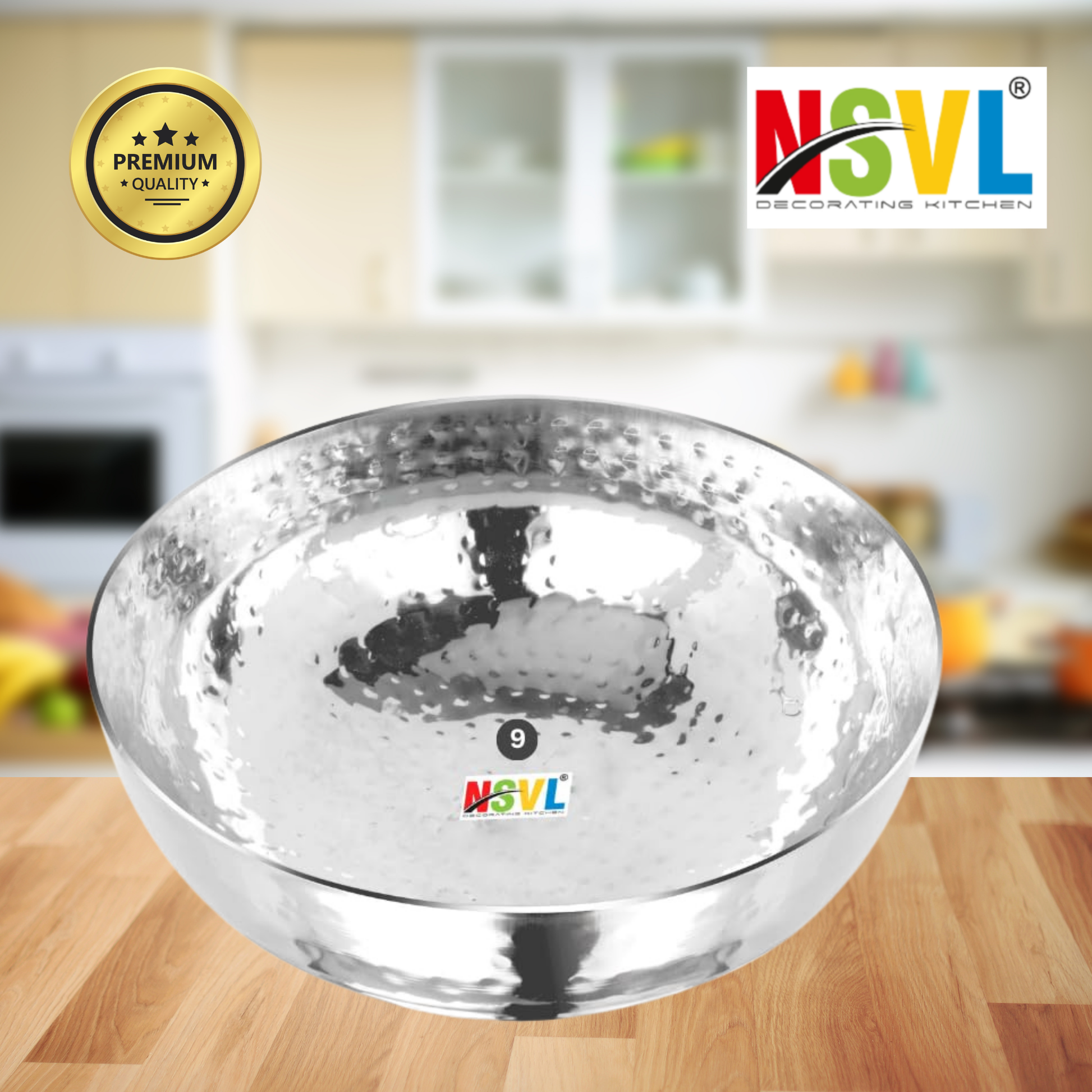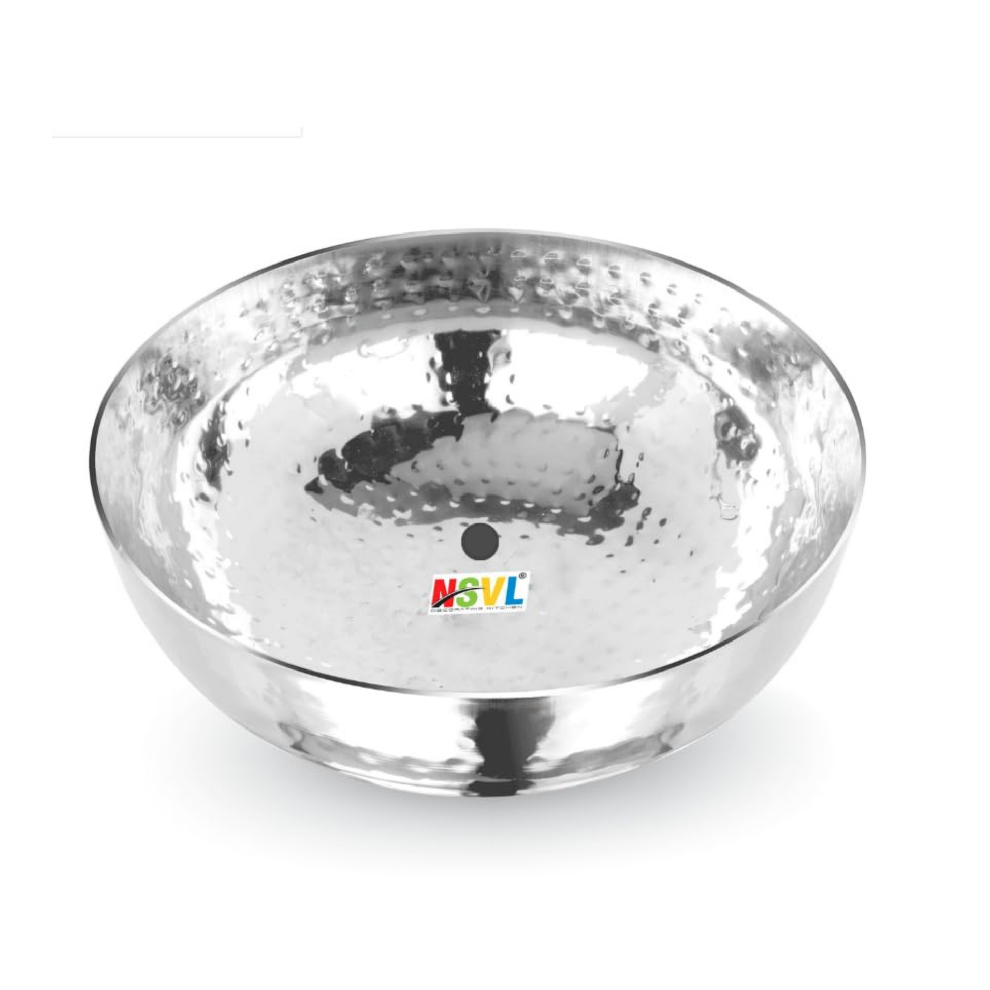 NSVL Stainless Steel Hammered Tasla/Heavy Bottom Cookware/Kadhai/Kadai for Kitchen/Utensils for Cooking, Deep Frying