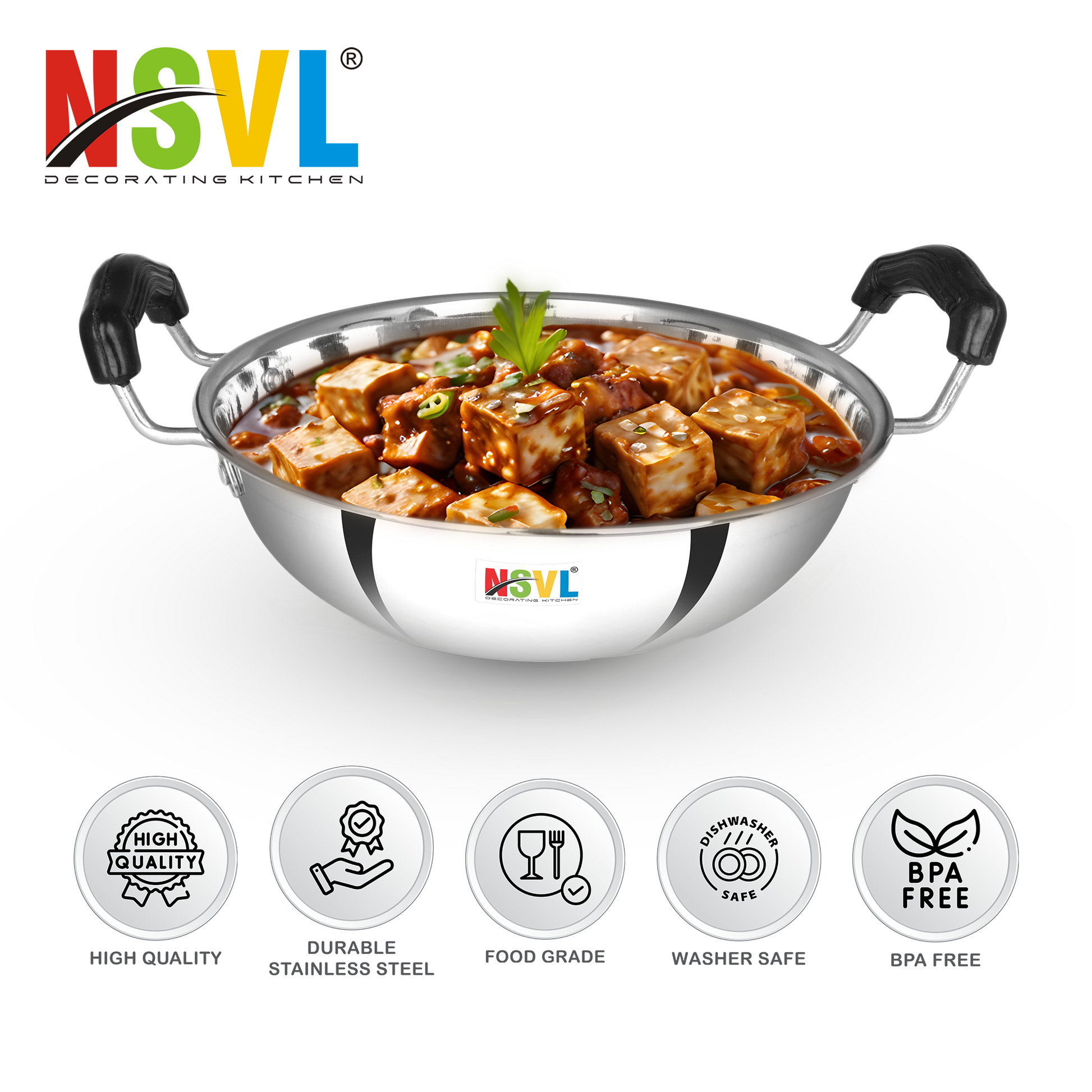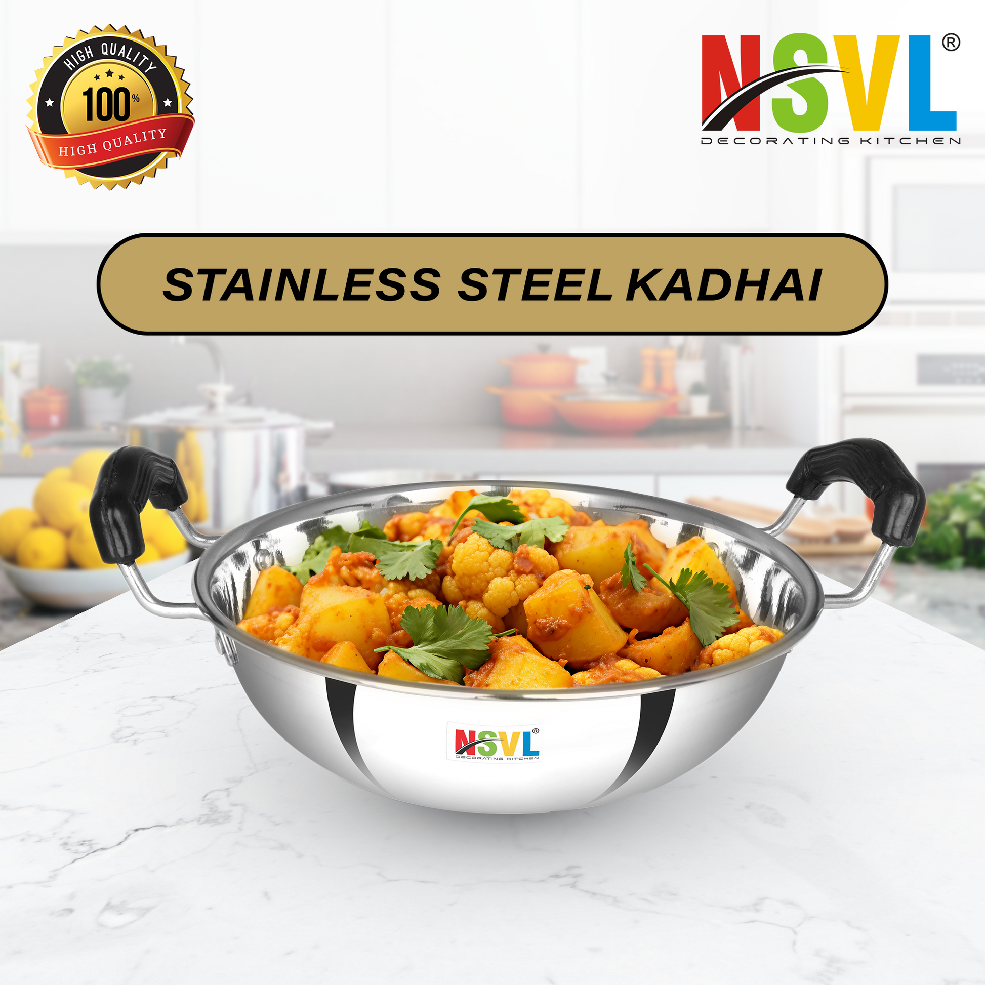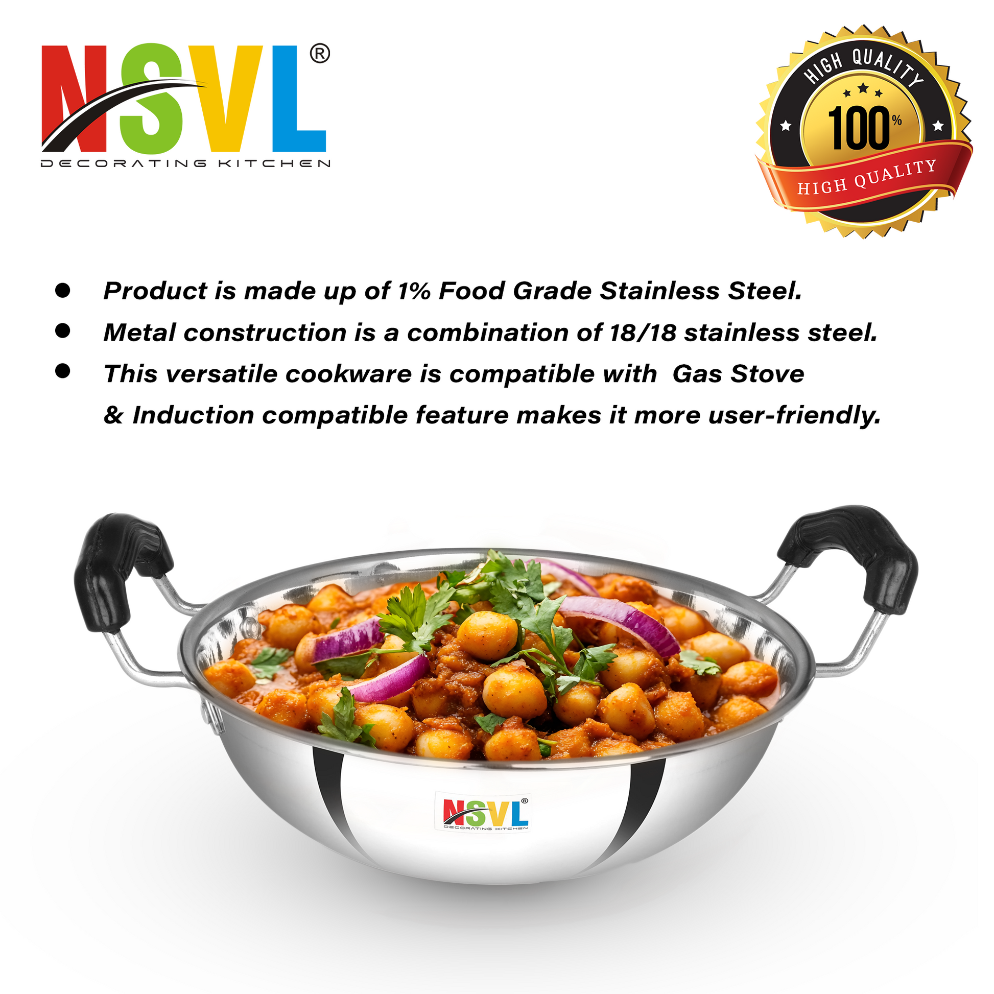 Nsvl Stainless Steel Induction Bottom (flat Bottom) Induction & Gas Stove Friendly Kadhai Size No.12 (2 Ltr)