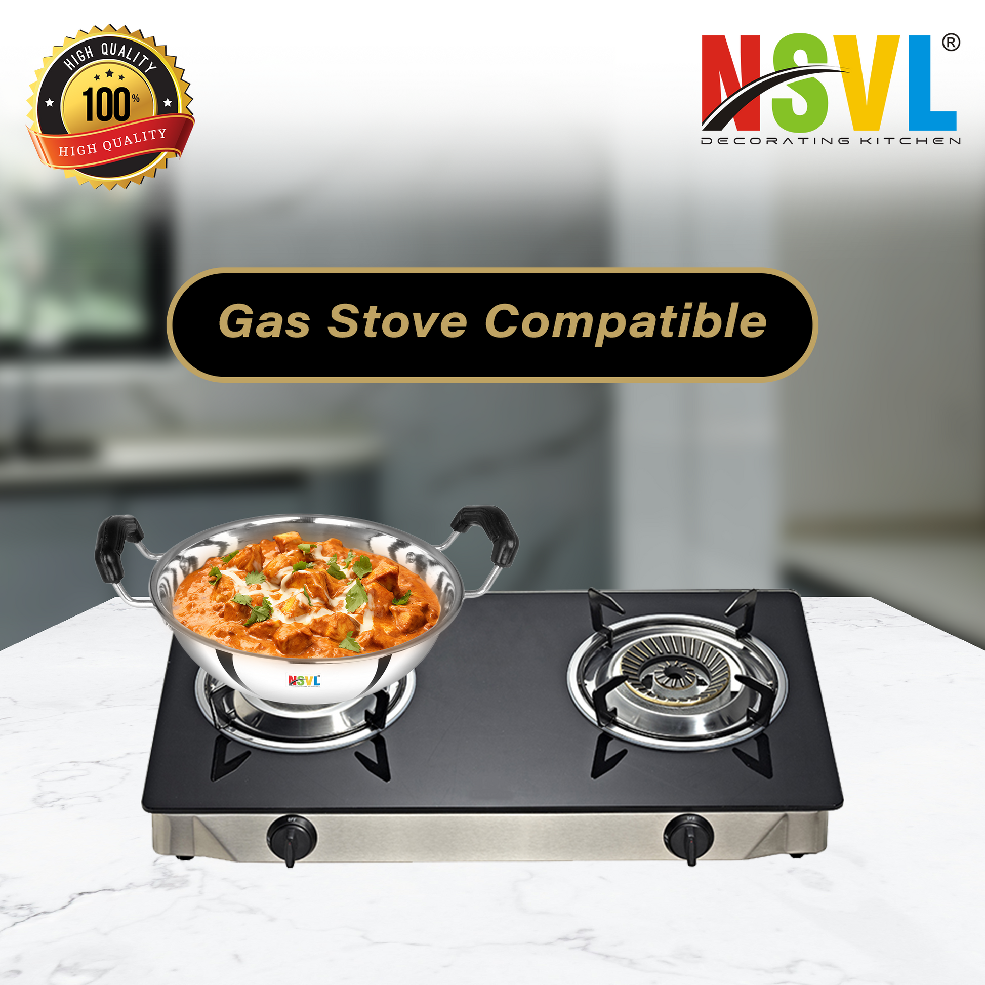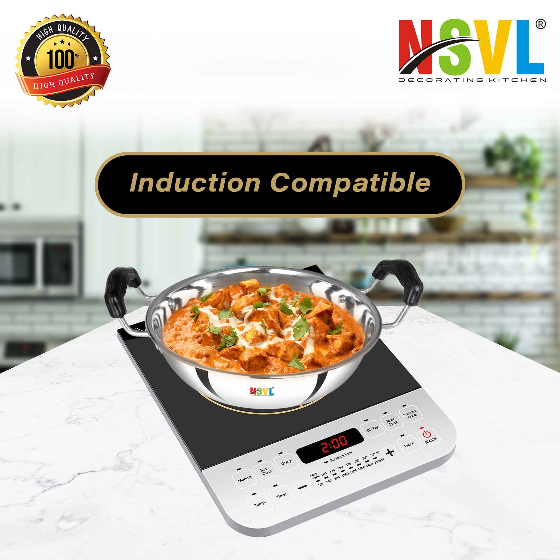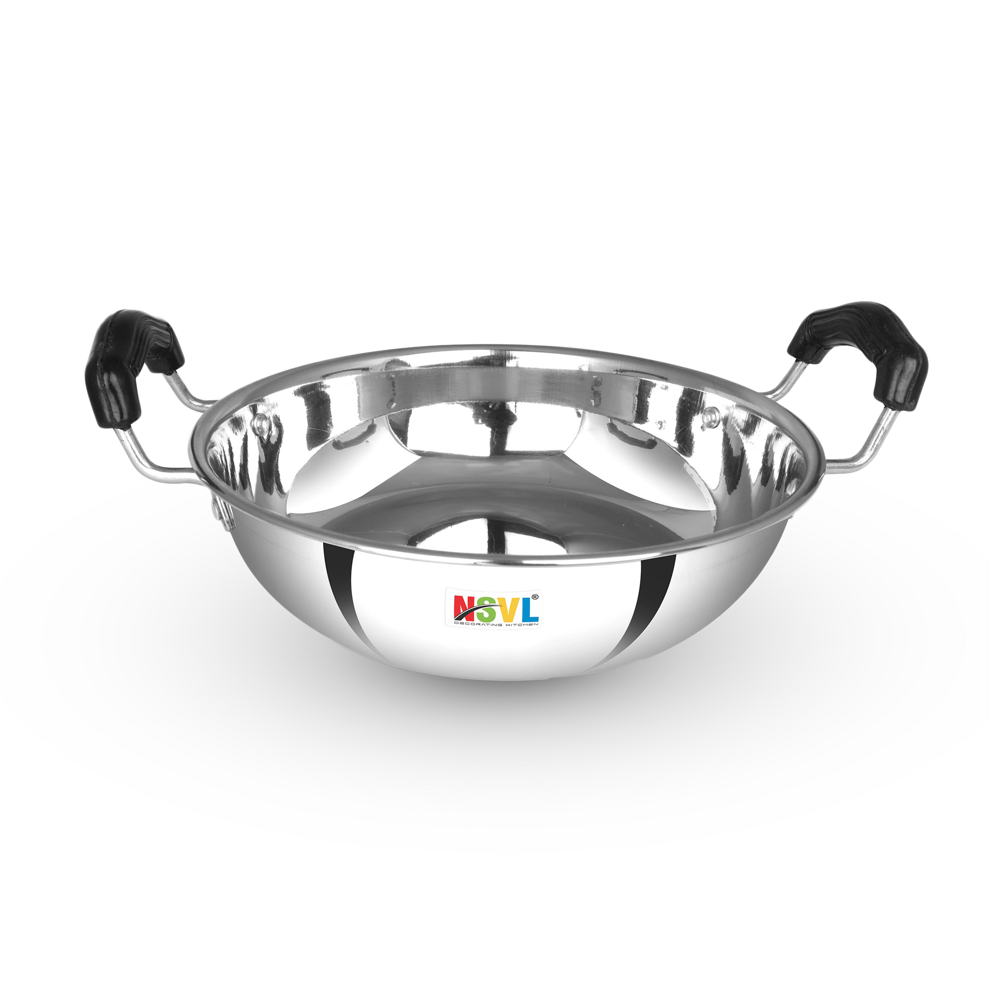 Nsvl Stainless Steel Induction Bottom (flat Bottom) Induction & Gas Stove Friendly Kadhai Size No.12 (2 Ltr)
