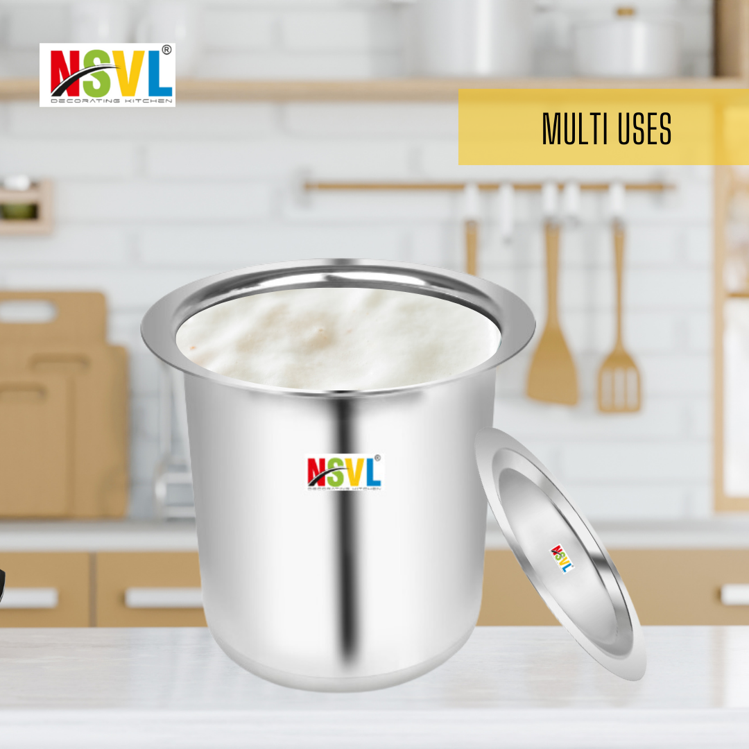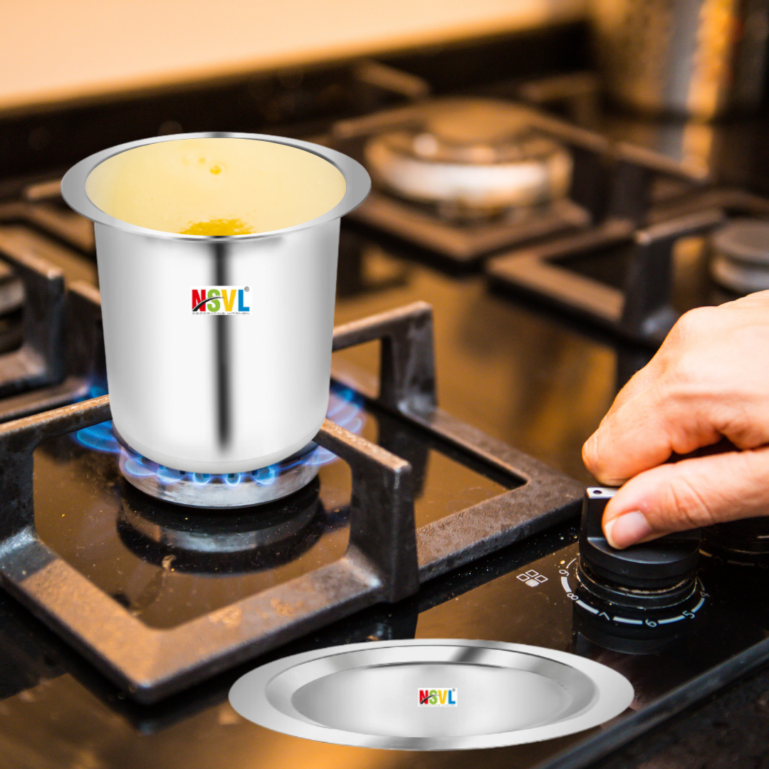 NSVL Stainless Steel Milk Pot with Lid | Steel Milk Boiler Container | Milk Boiling Vessel Gunj for Kitchen (1500 ML)