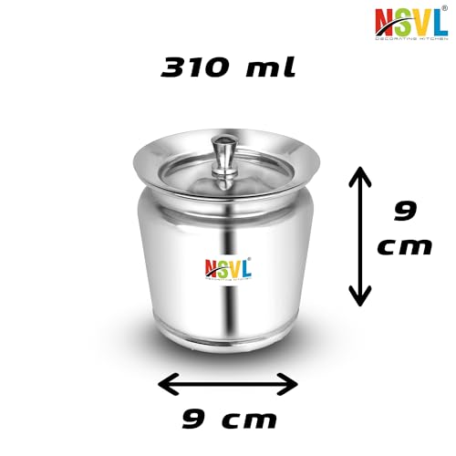 Nsvl Stainless Steel Multipurpose Ghee Pot/Pickle Container, 310 ml, With Spoon,(Lotus Design)