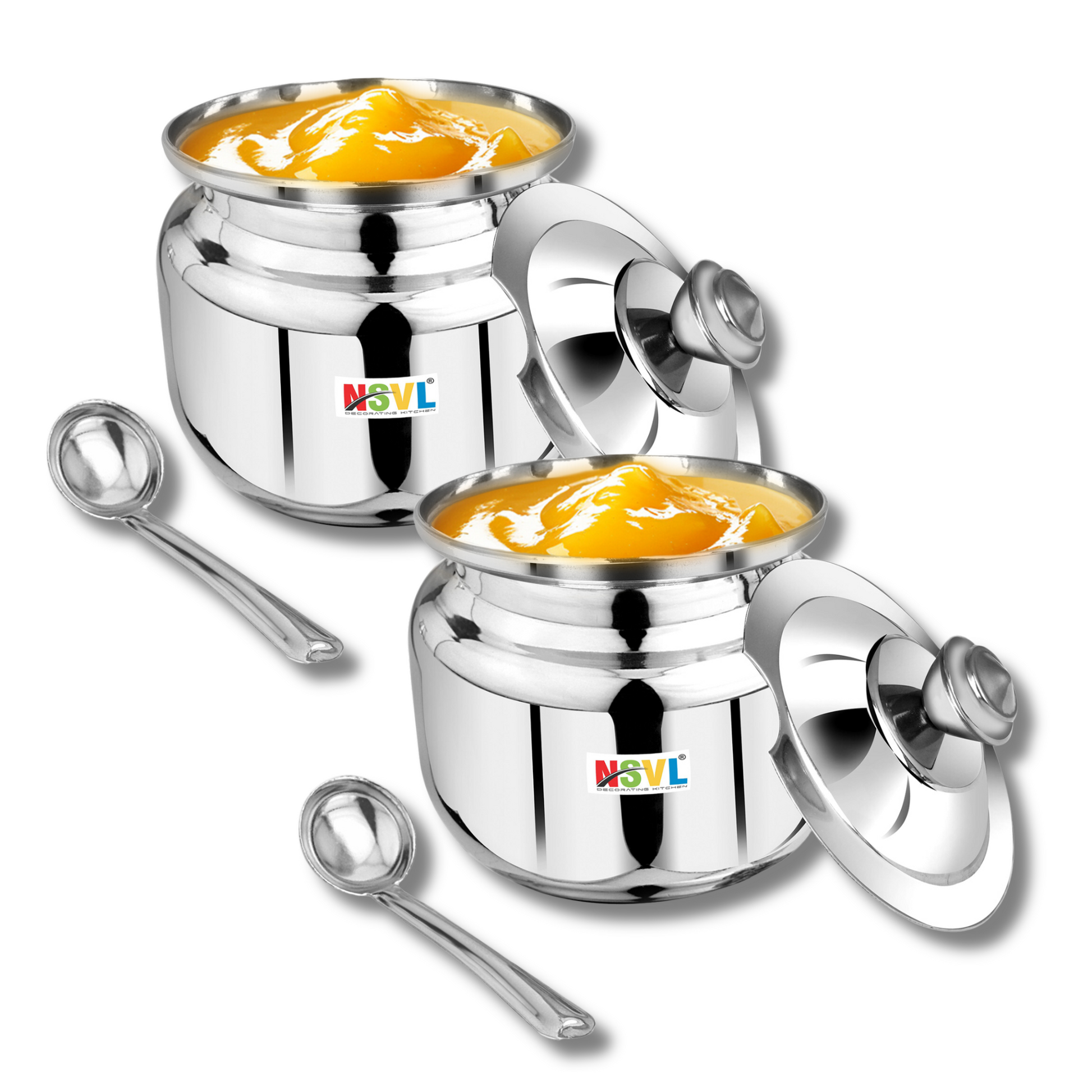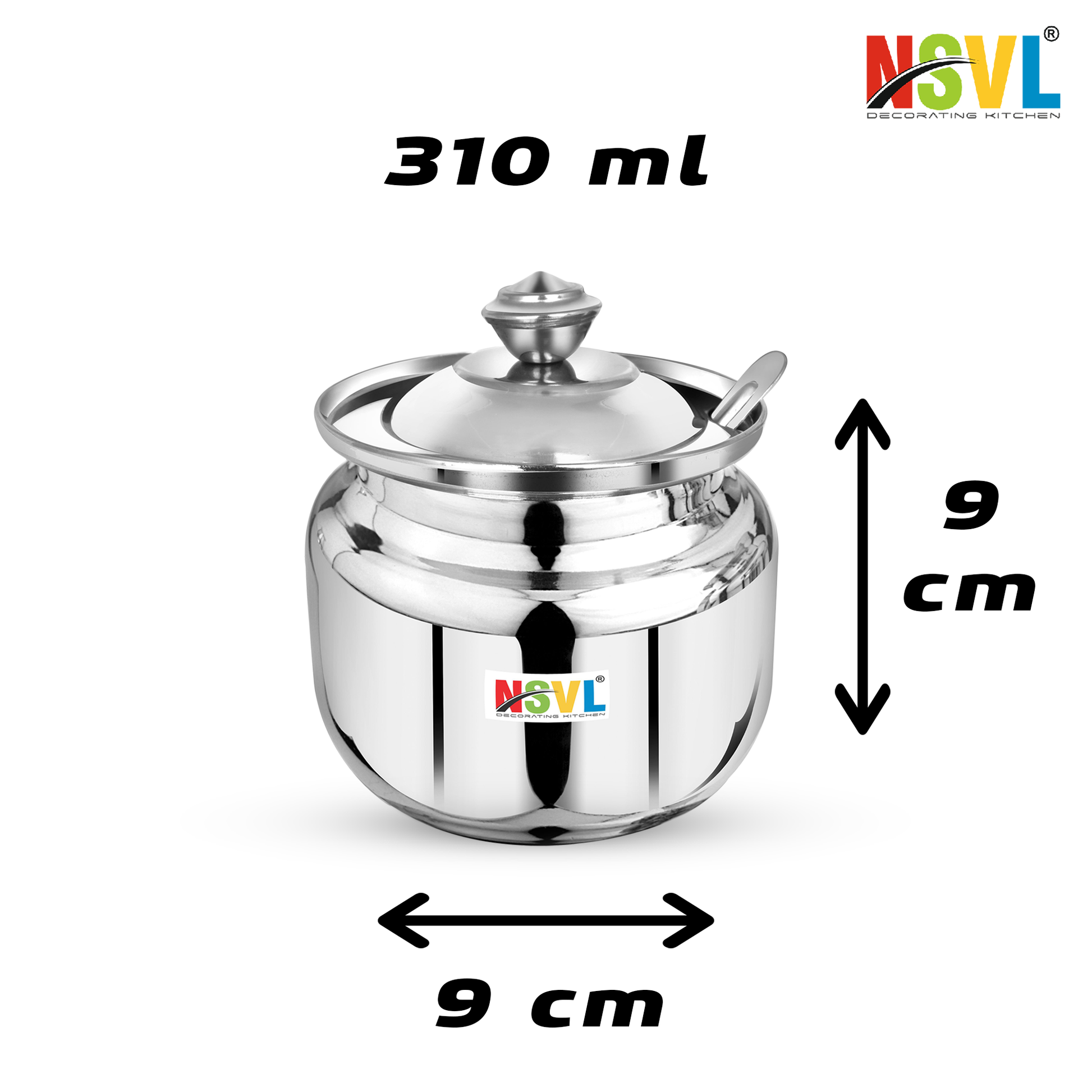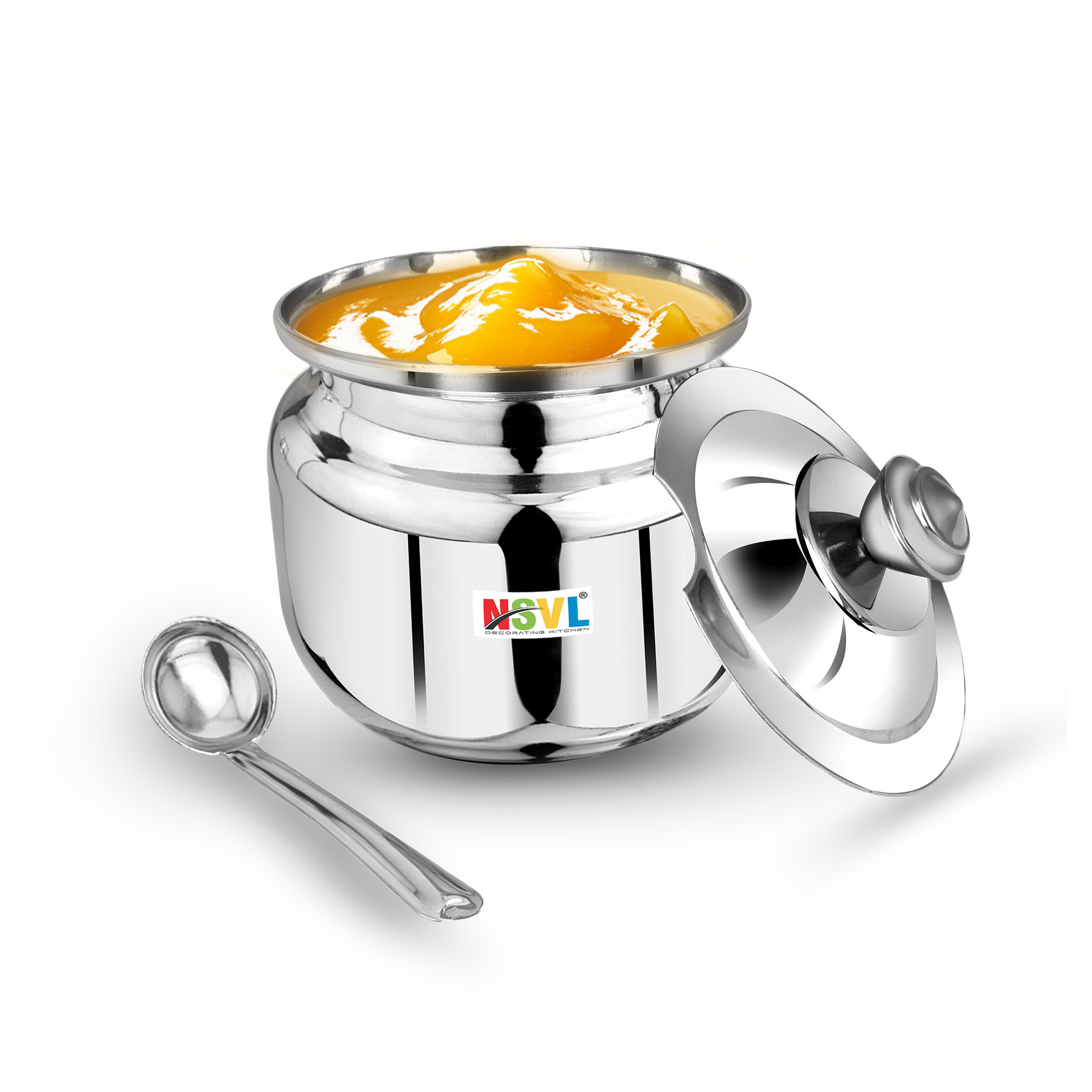 Nsvl Stainless Steel Multipurpose Ghee Pot/Pickle Container, 310 ml, With Spoon,(Round Design)