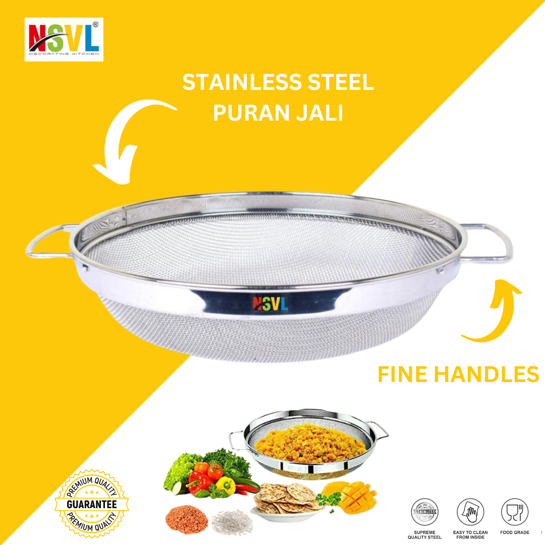 NSVL Stainless Steel Puran Jali Big /Chalani/Strainer | Mesh for Sieving and Pulping of Food Grain and Mango