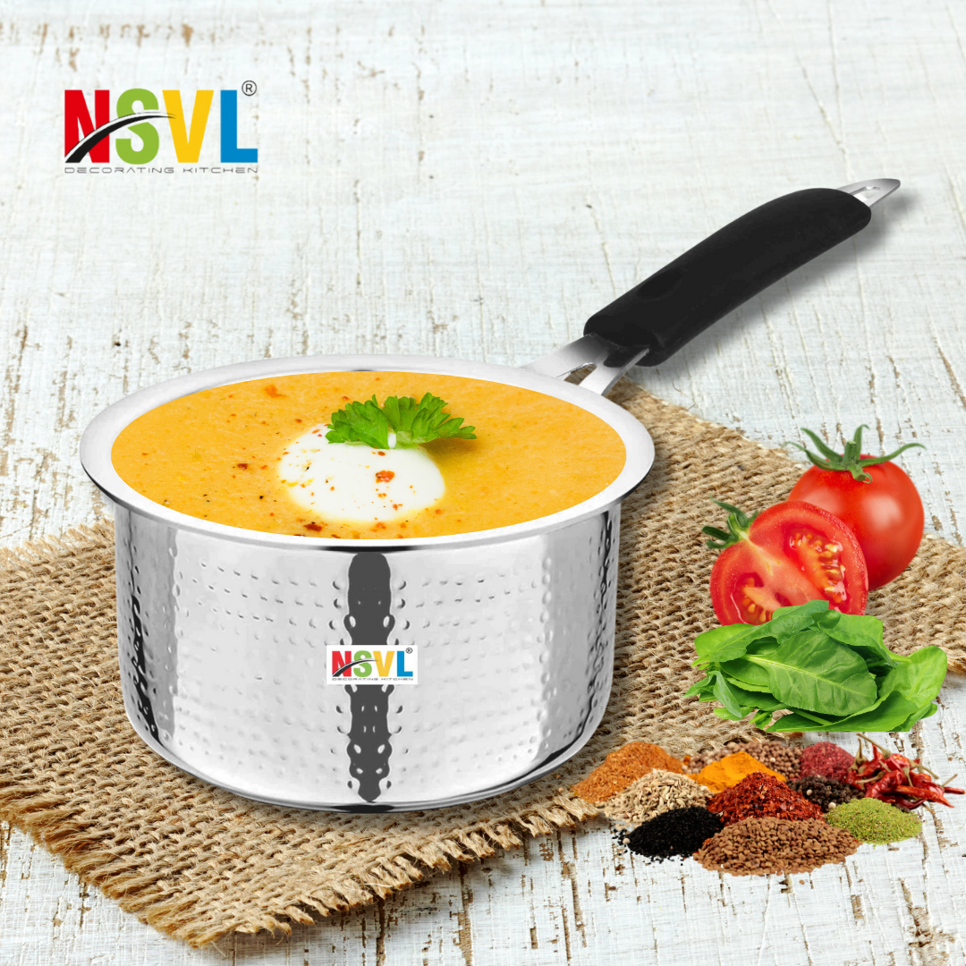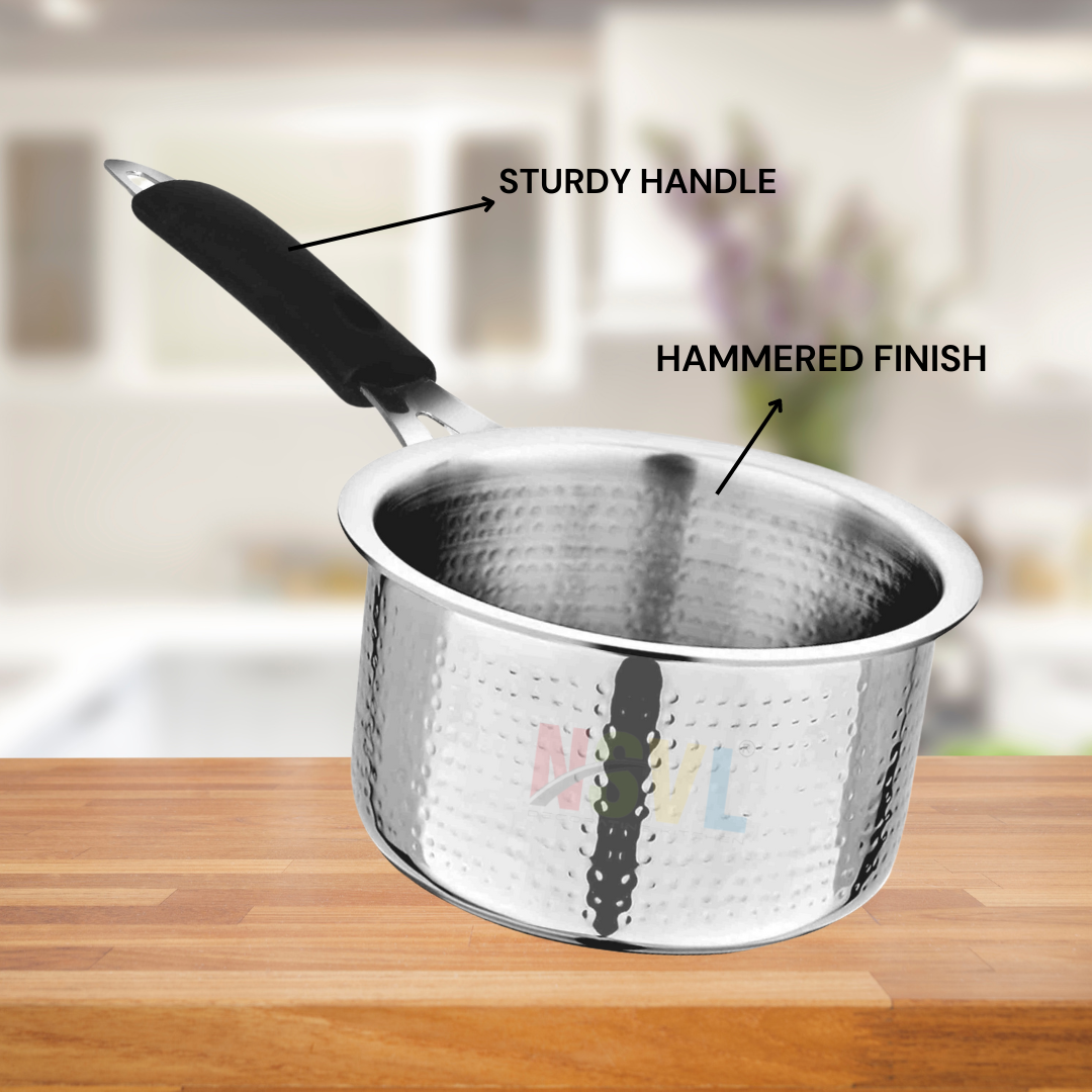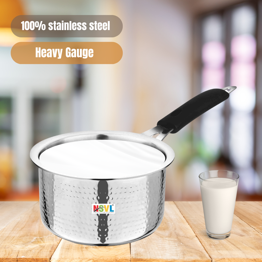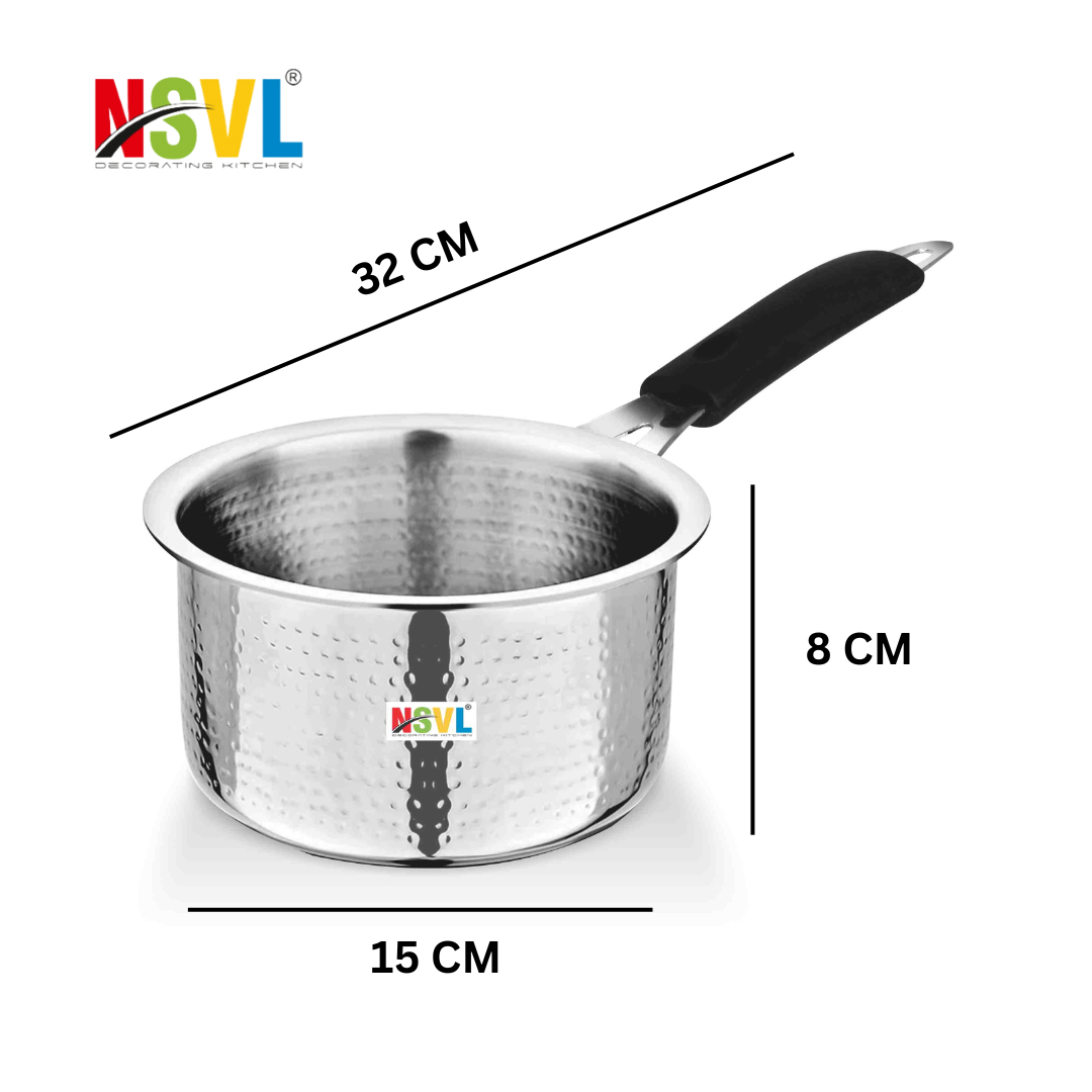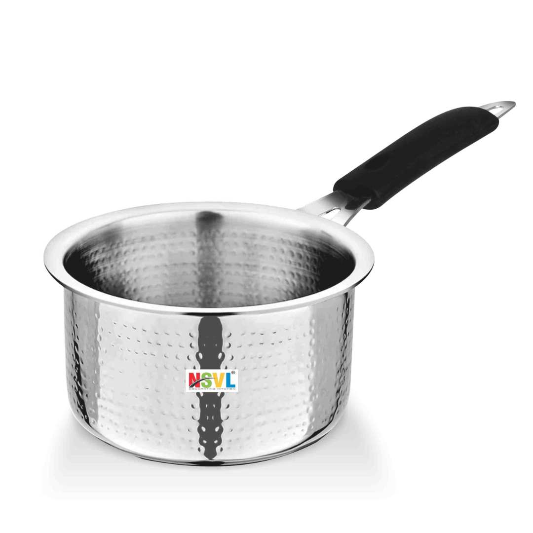 NSVL Stainless Steel Hammered Sauce Pan, Milk Pan, Tea Pan Heavy Guage 1 Litre (Induction and Gas Stove Friendly), Silver