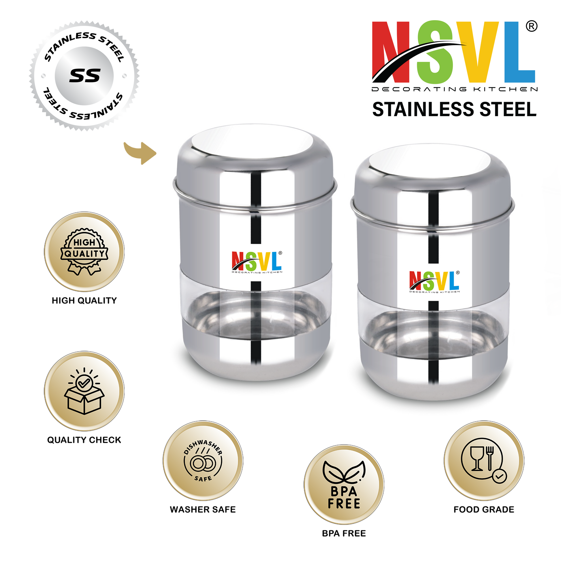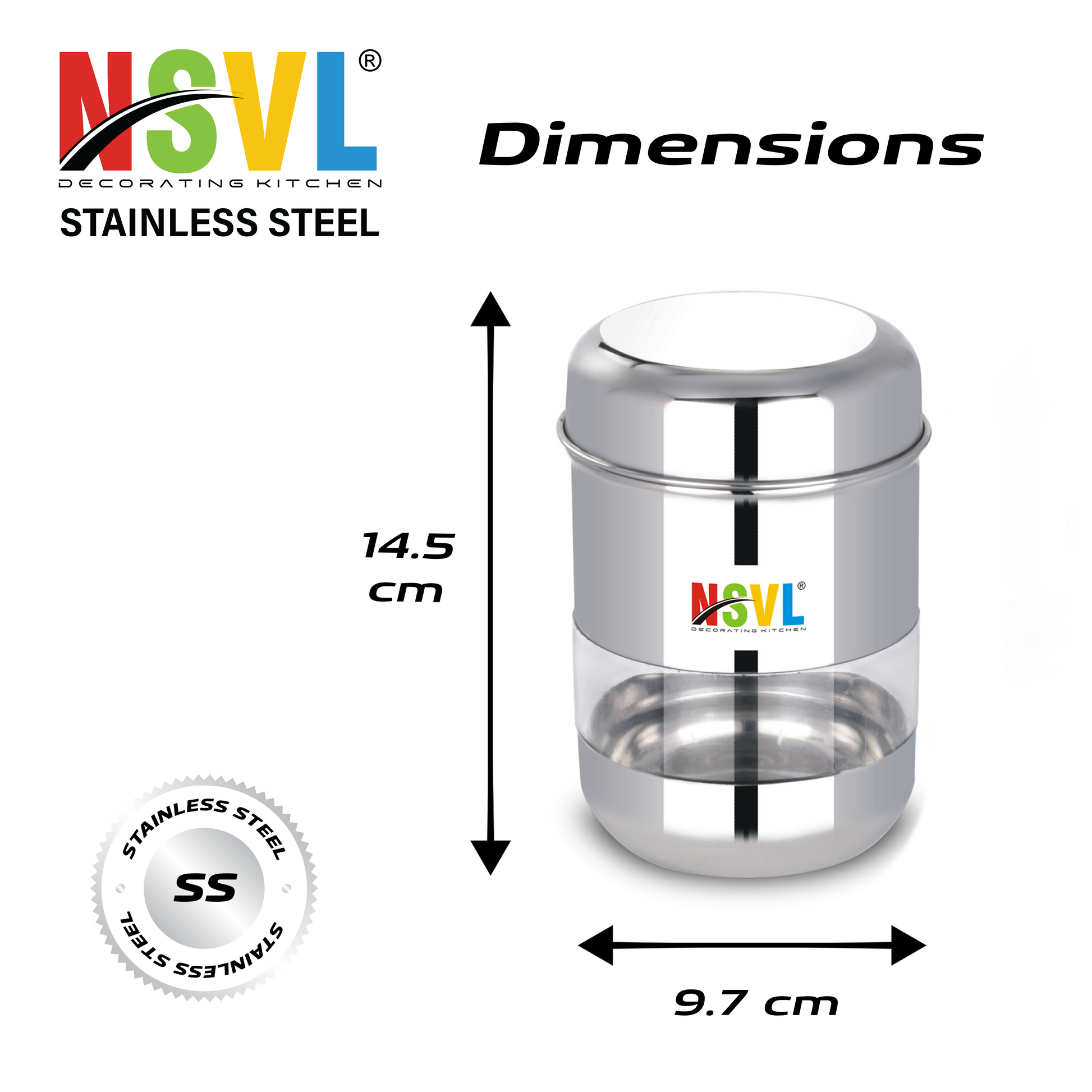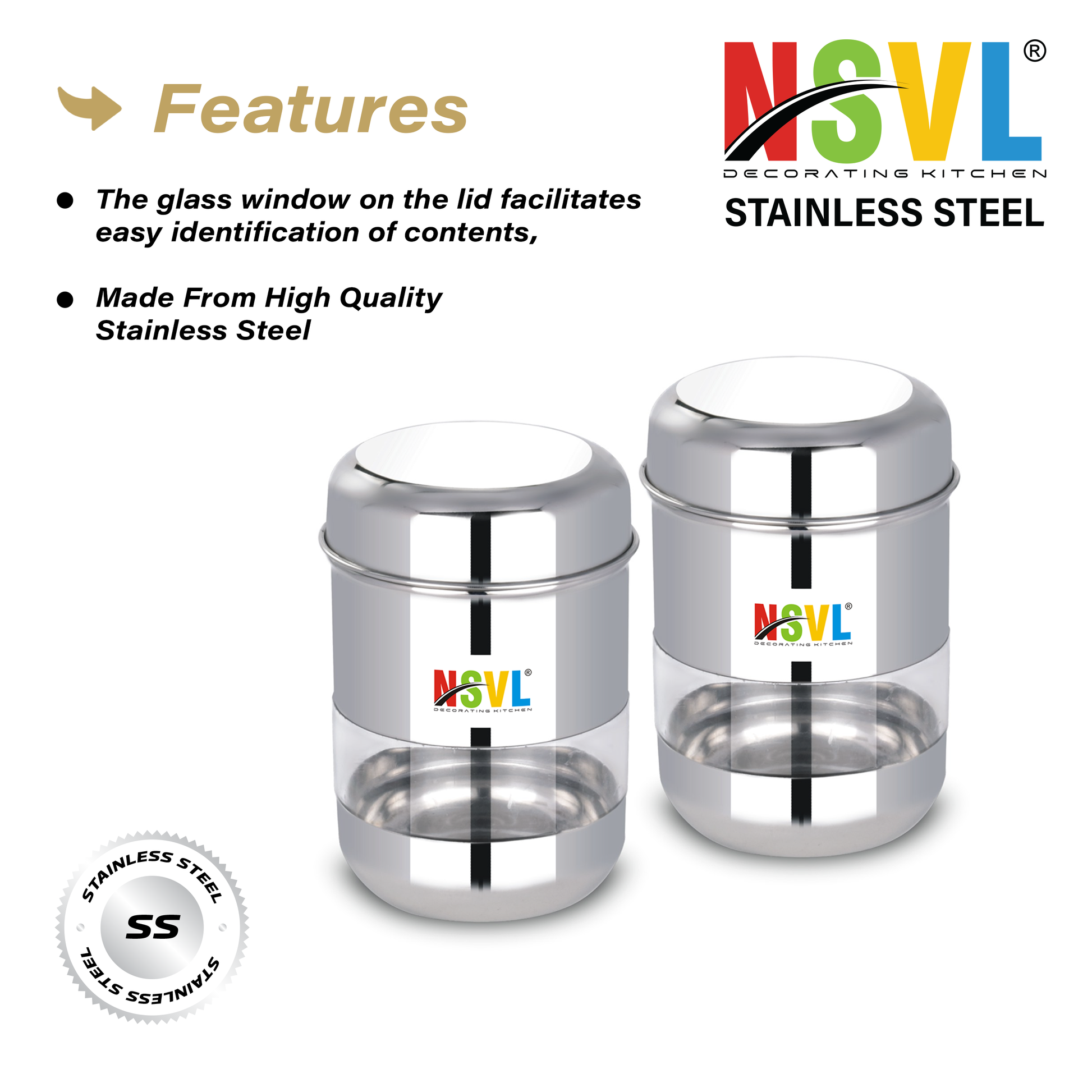 NSVL Stainless Steel Milano See Through Airtight Containers For Masala Box, Dry Fruit Jars, Kitchen Container, Storage Box, 800 Ml - Set Of 2, Silver