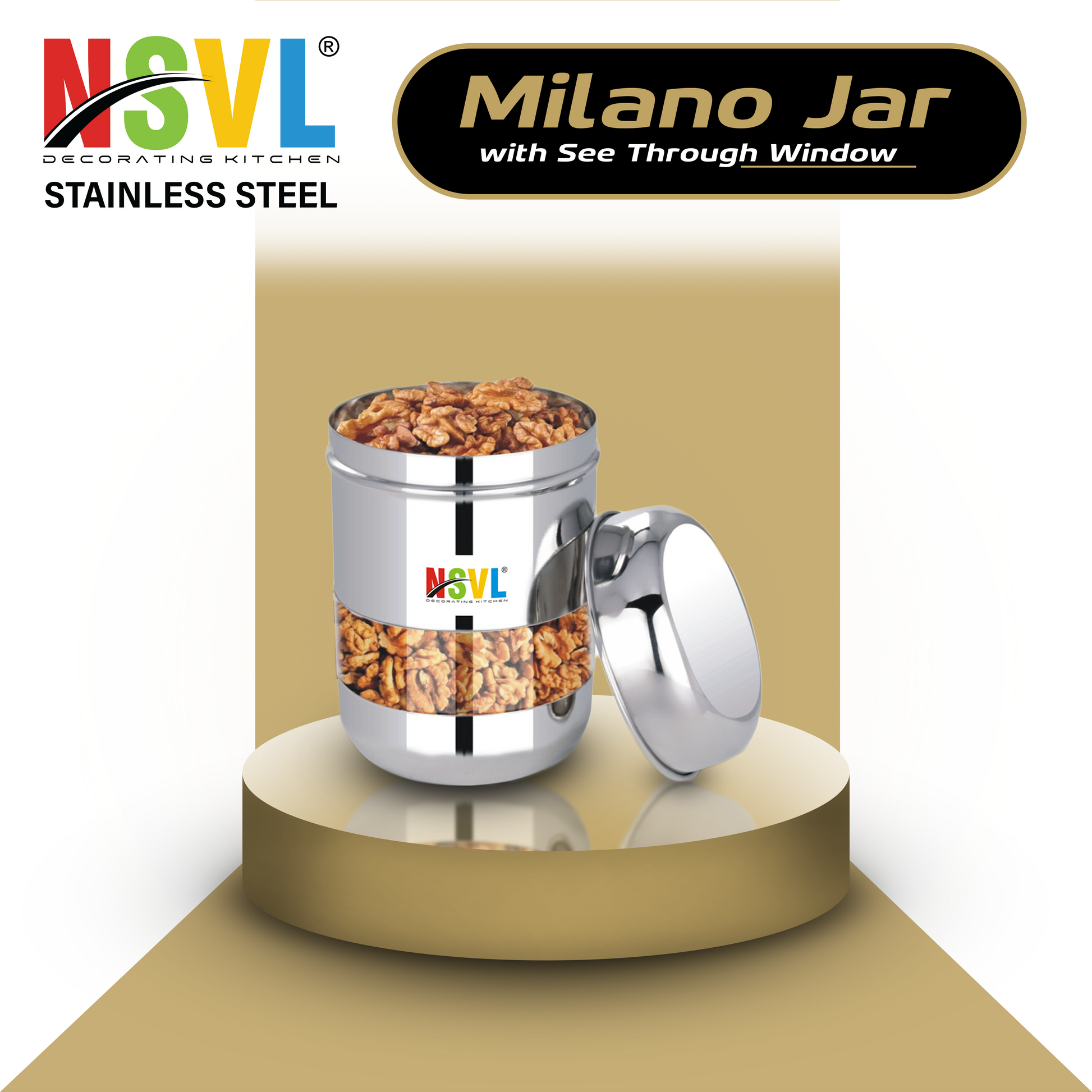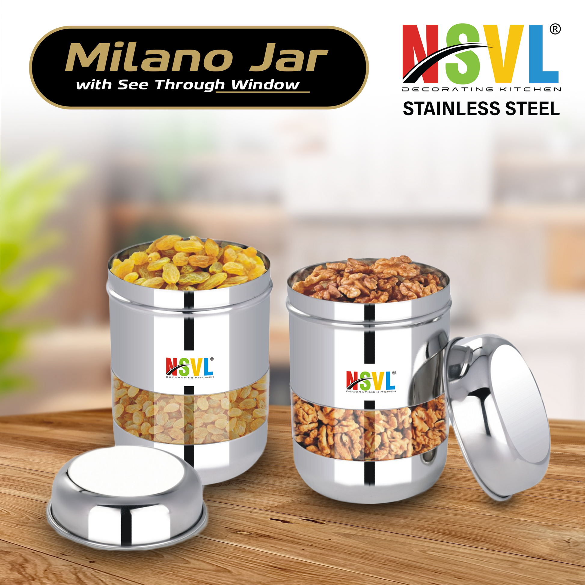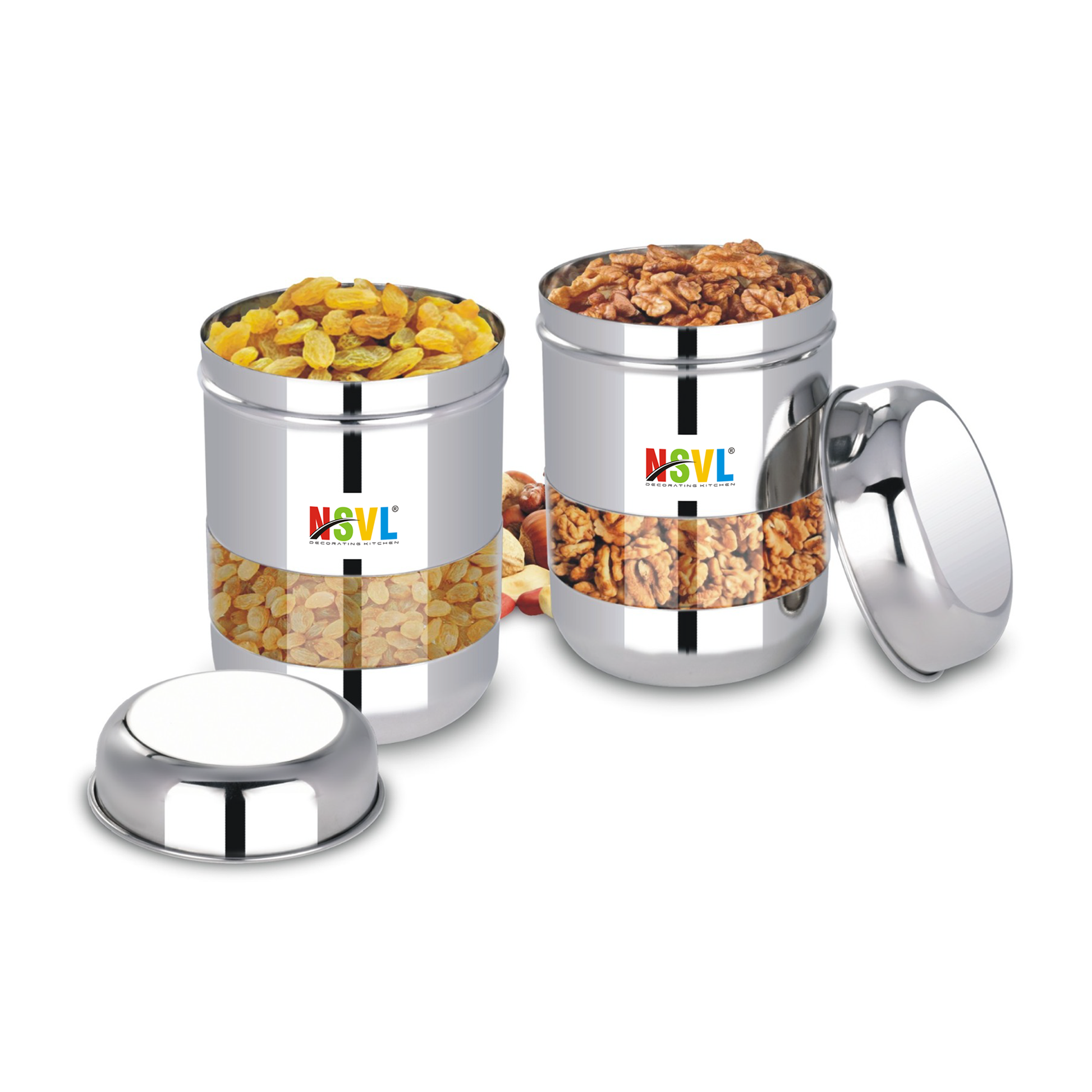 NSVL Stainless Steel Milano See Through Airtight Containers For Masala Box, Dry Fruit Jars, Kitchen Container, Storage Box, 800 Ml - Set Of 2, Silver