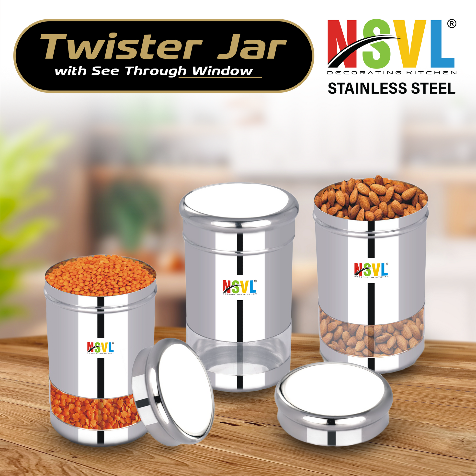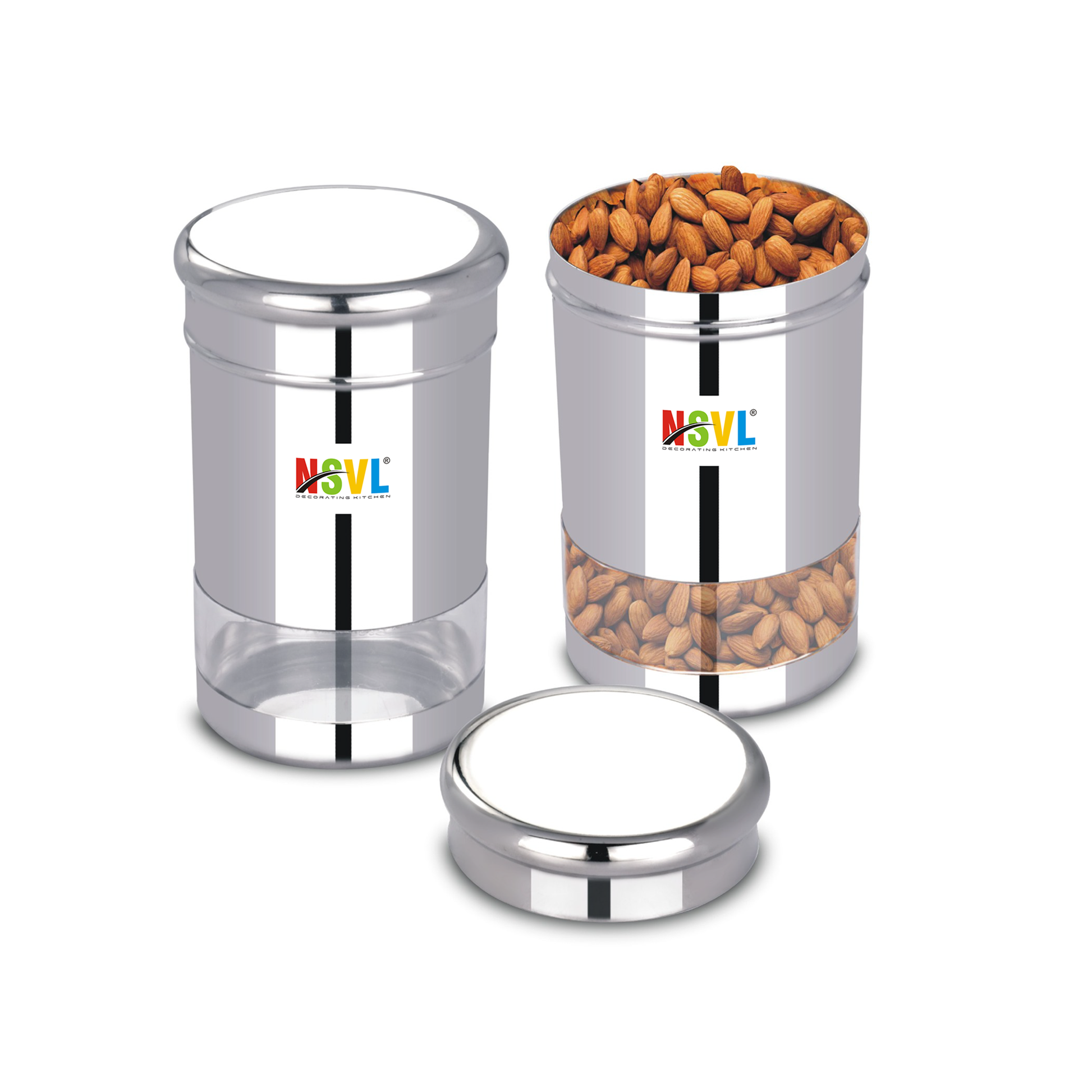 NSVL Stainless Steel Twister See Through Airtight Containers For Masala Box, Dry Fruit Jars, Kitchen Container, Storage Box, 800 Ml - Set Of 2, Silver