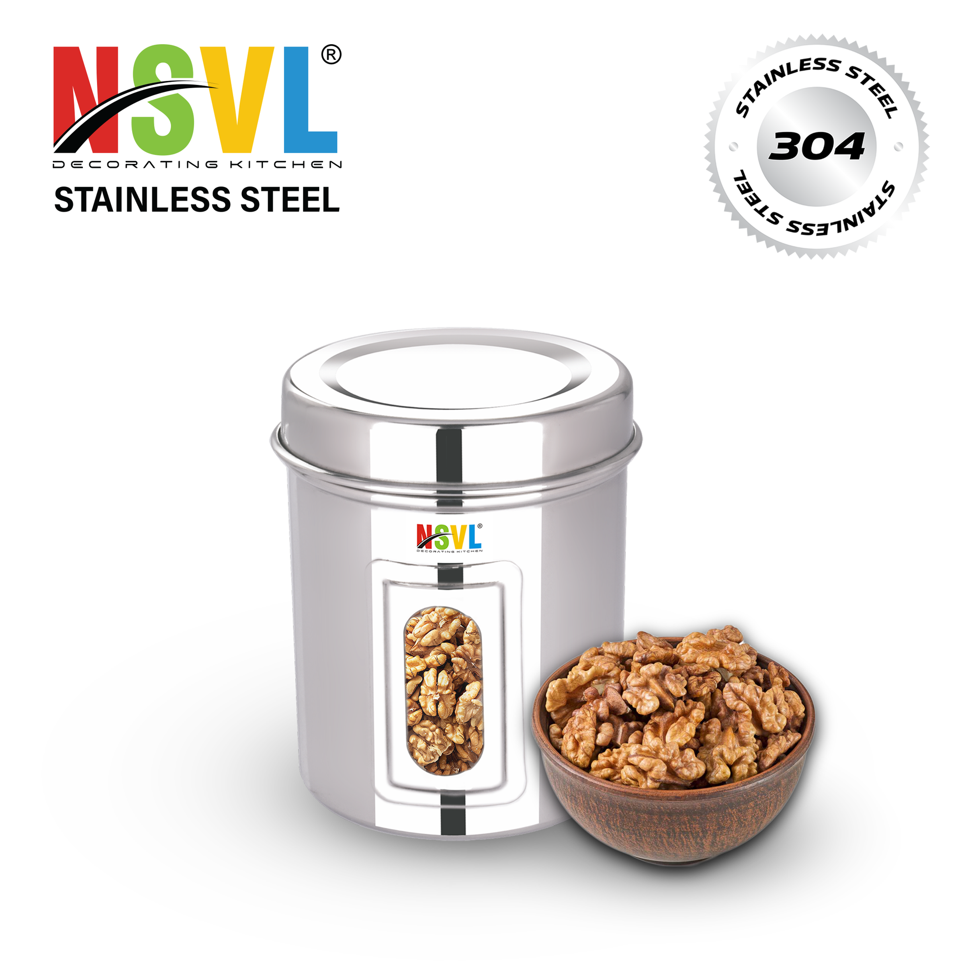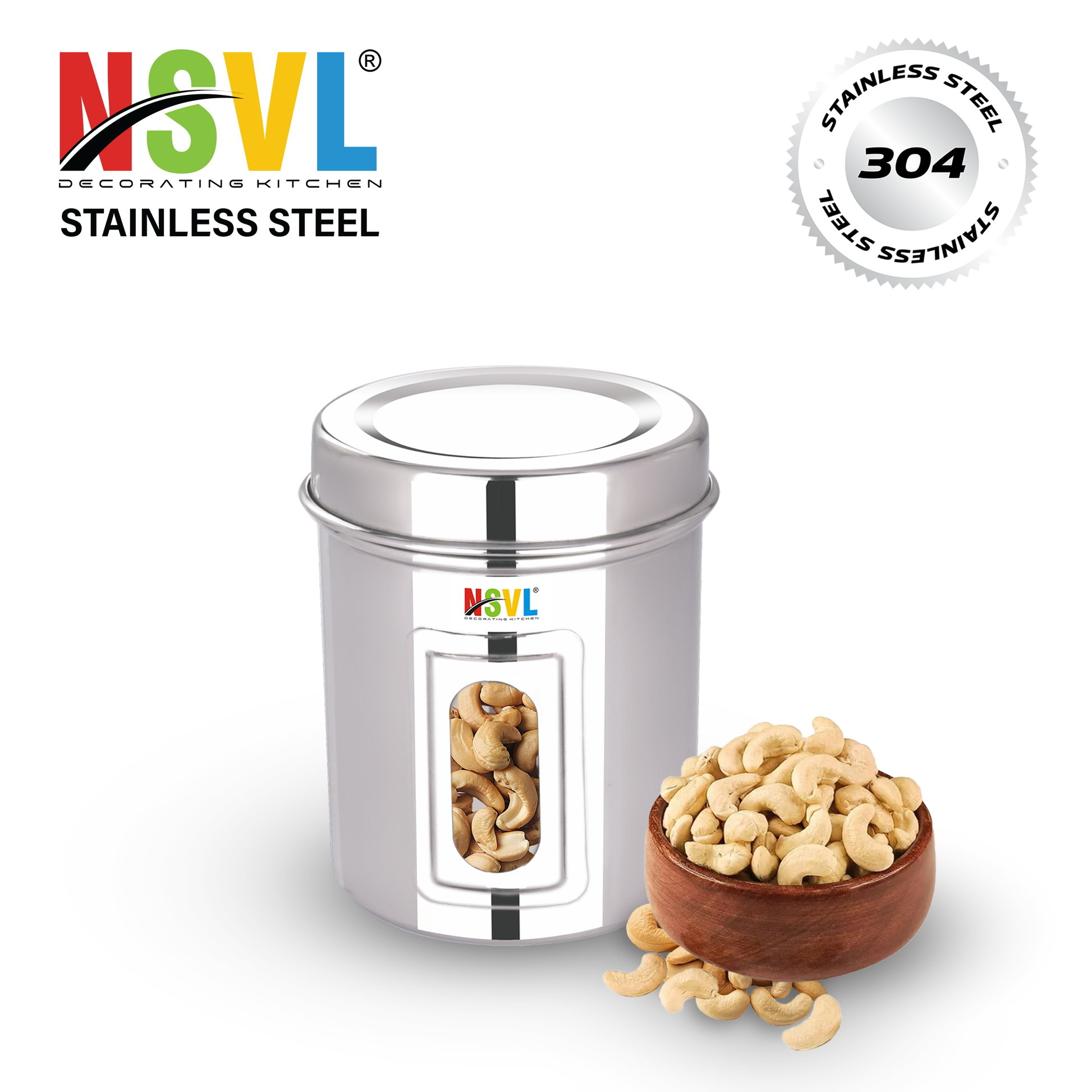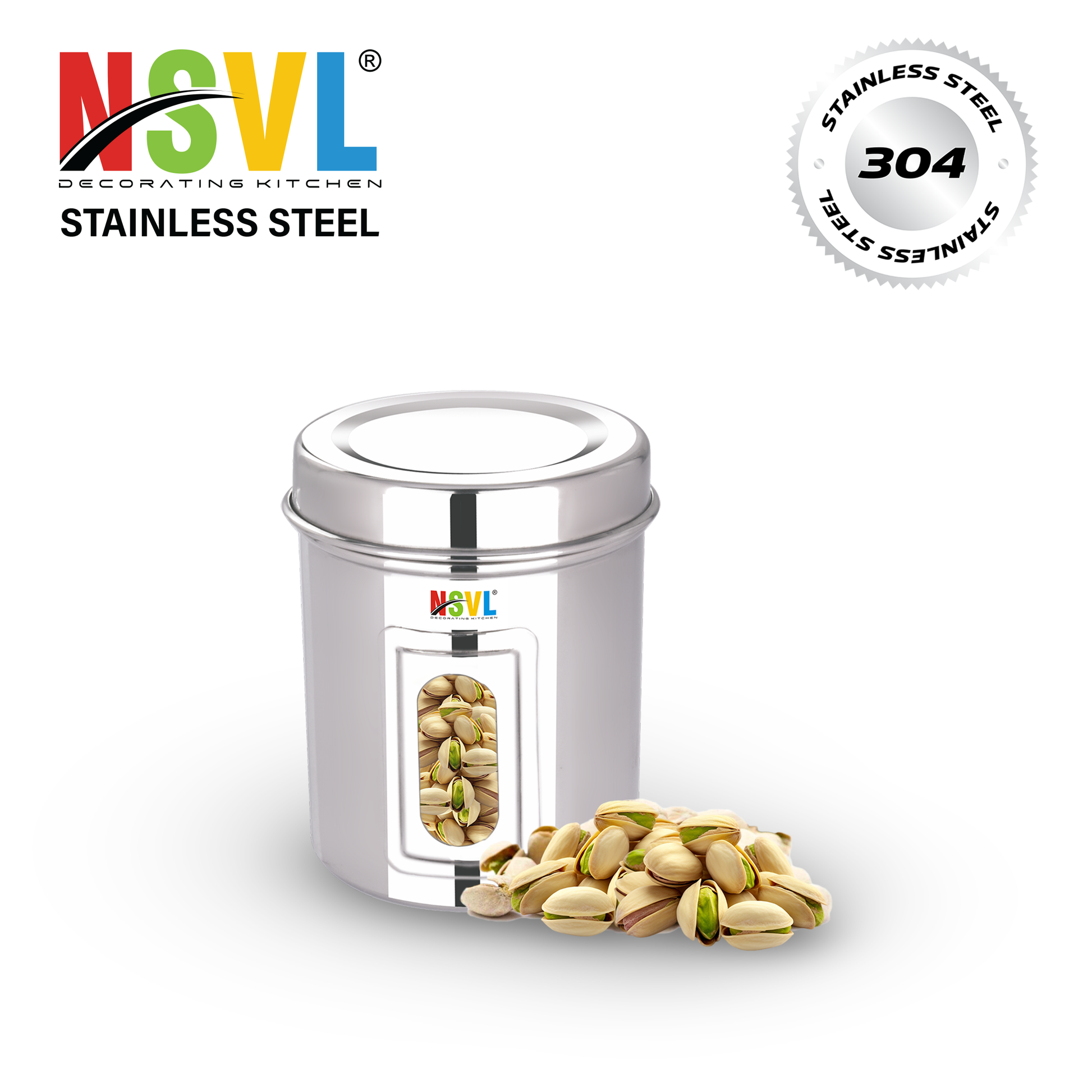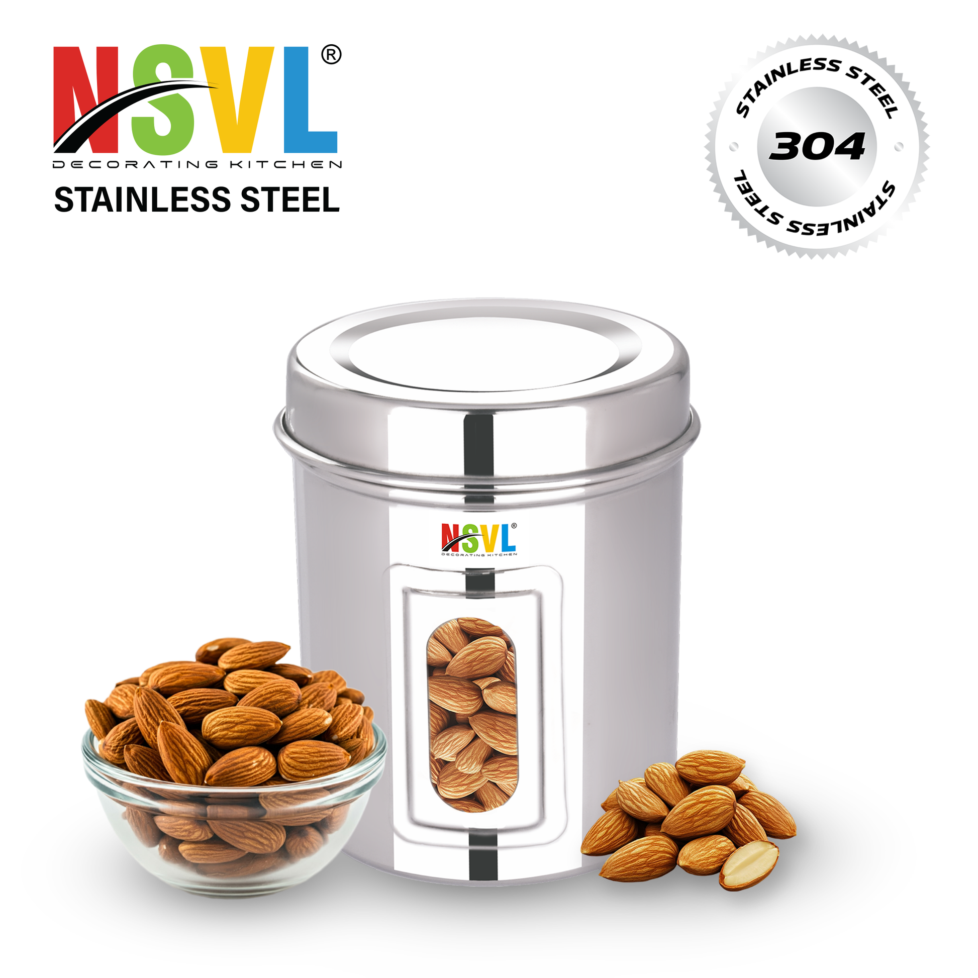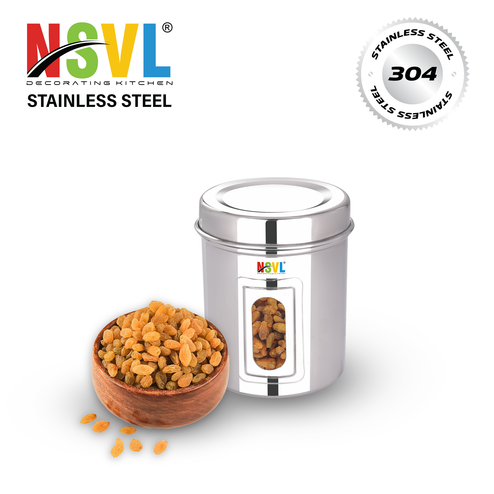 NSVL Stainless Steel Side See Through Dabba | 3 Size Of Dabba 500ml , 350ml , 200ml |Storage Container | Kitchen Container | Silver Colour Pack of 3
