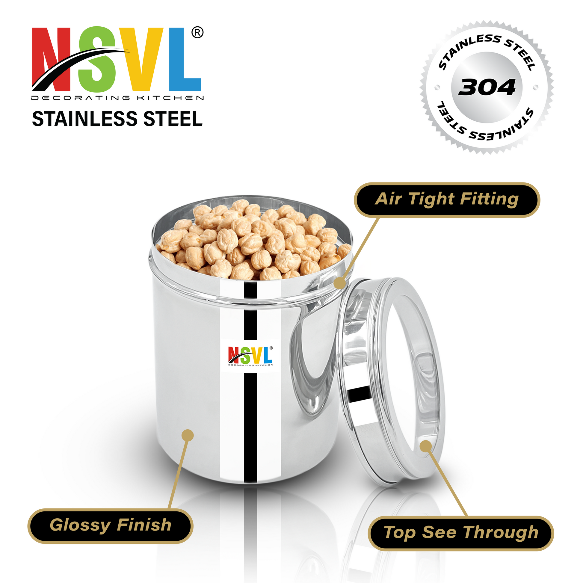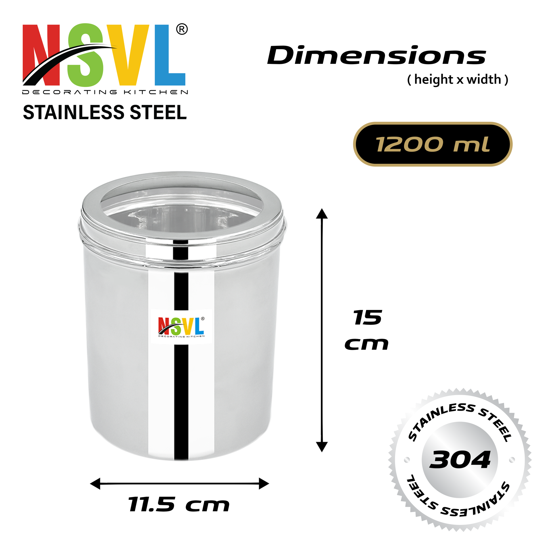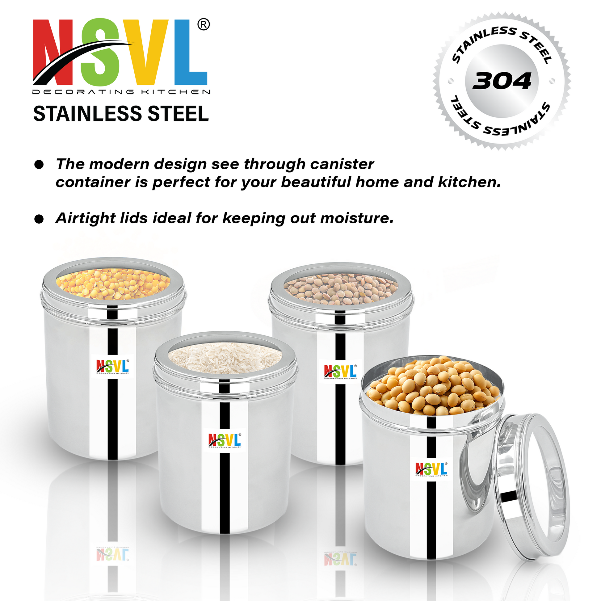 NSVL Stainless Steel Top See Through Containers for Kitchen | Mirror Polished Stainless Steel Containers With Lid and Transparent Window | Multipurpose Dabba Set for Kitchen | Pack of 4