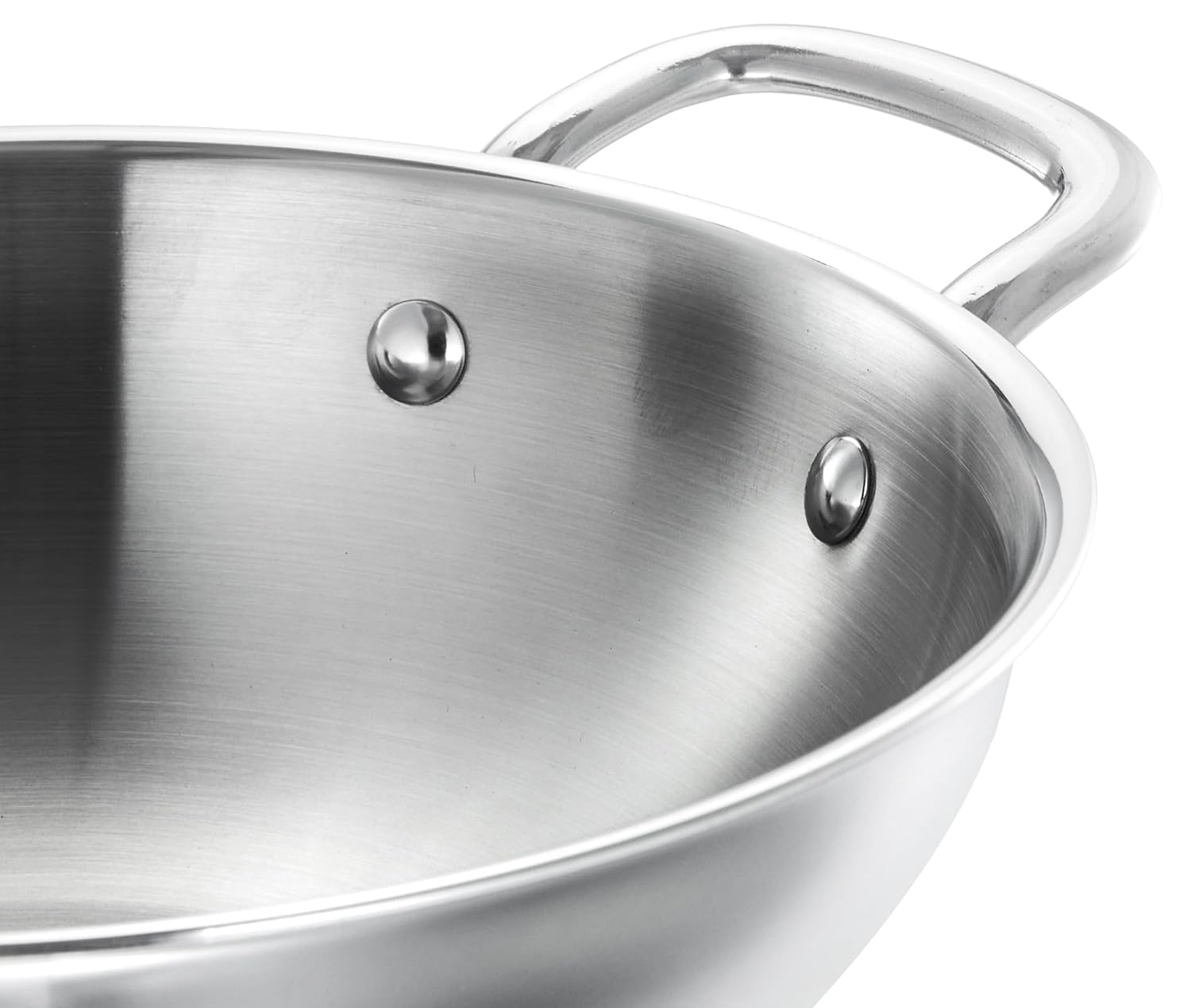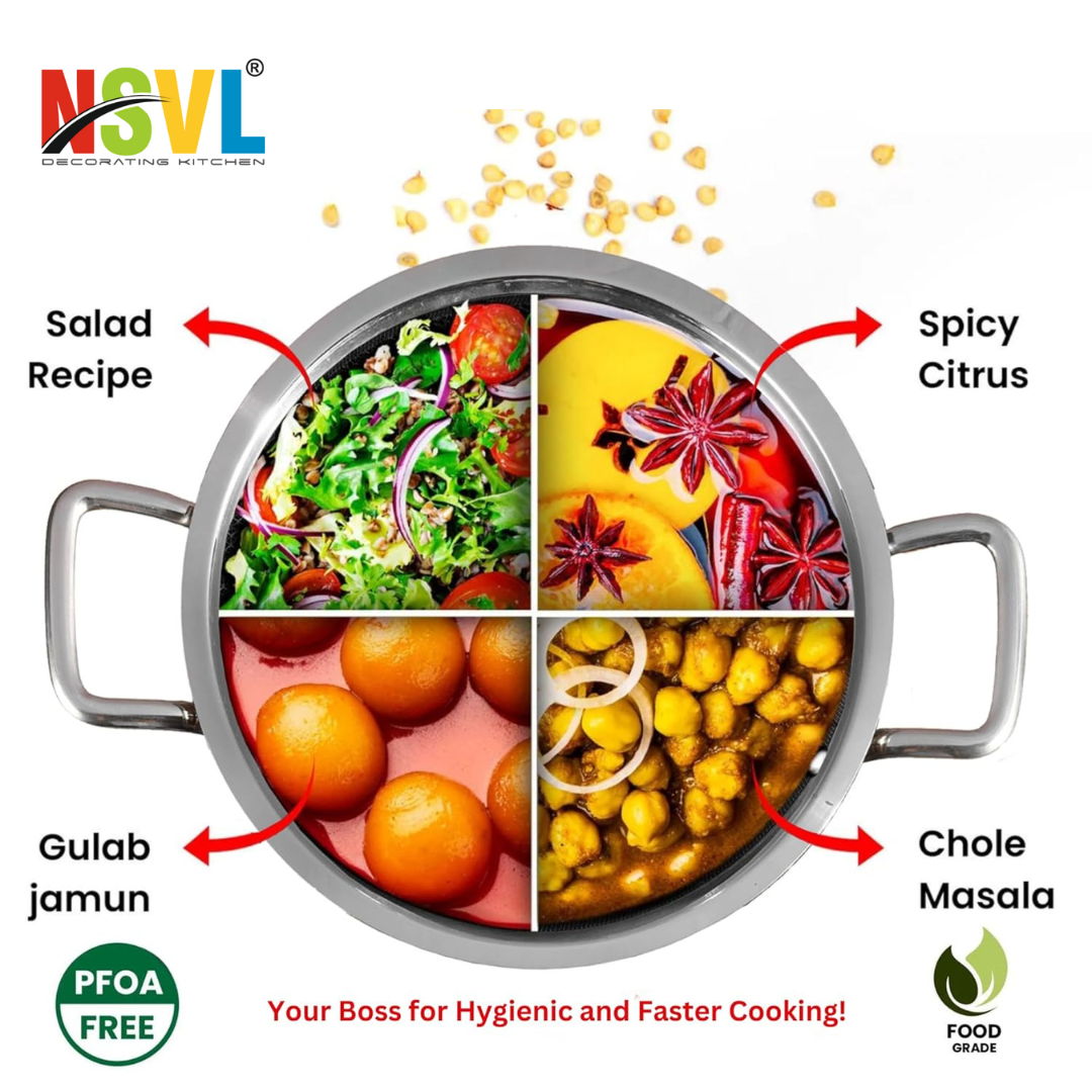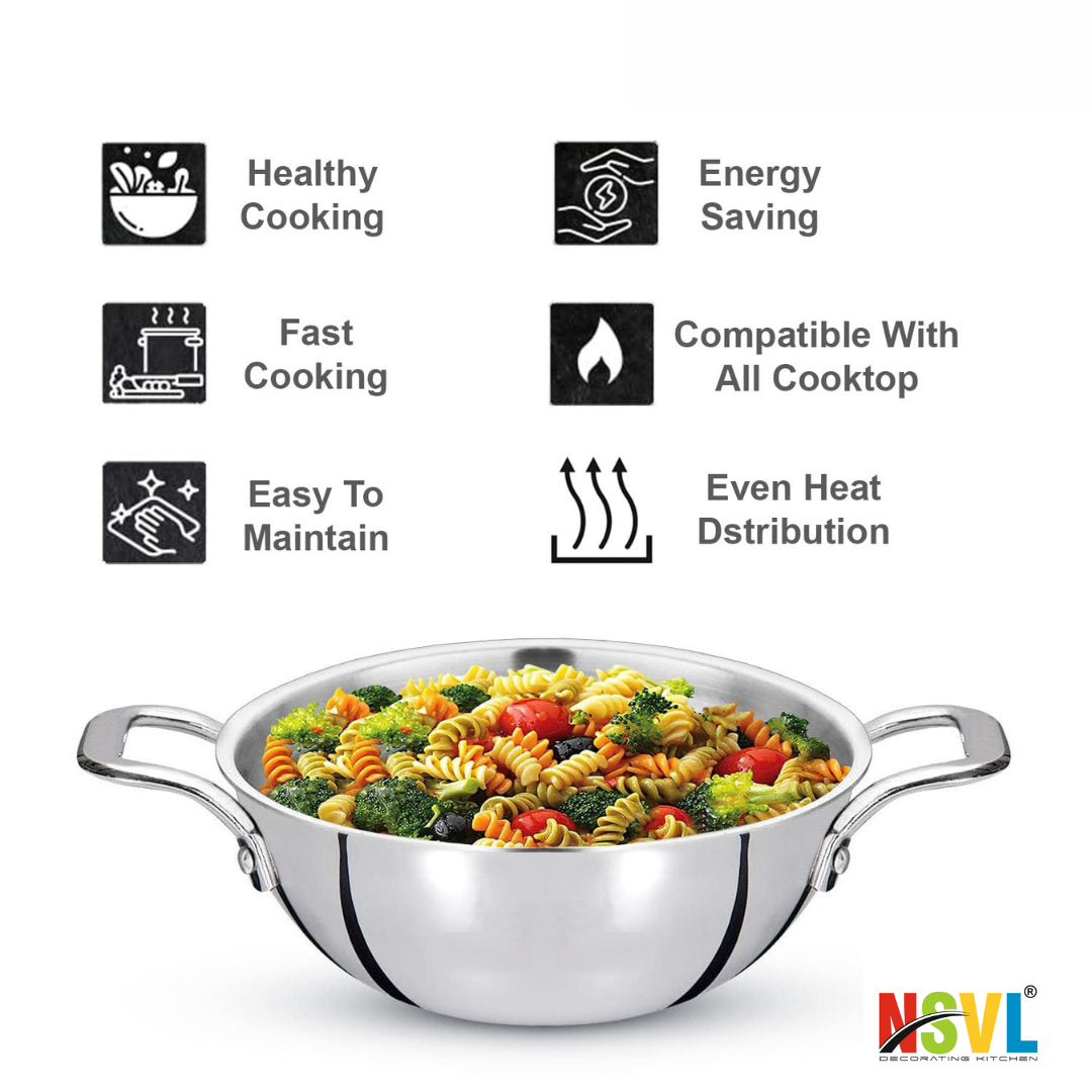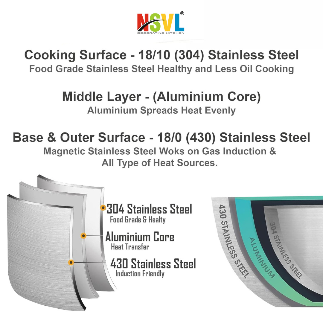 NSVL Triply Stainless Steel Cookware Kadai - 2.5 mm Thick Extra Deep Kadhai/Kadai for Cooking/Induction Bottom, Gas Base