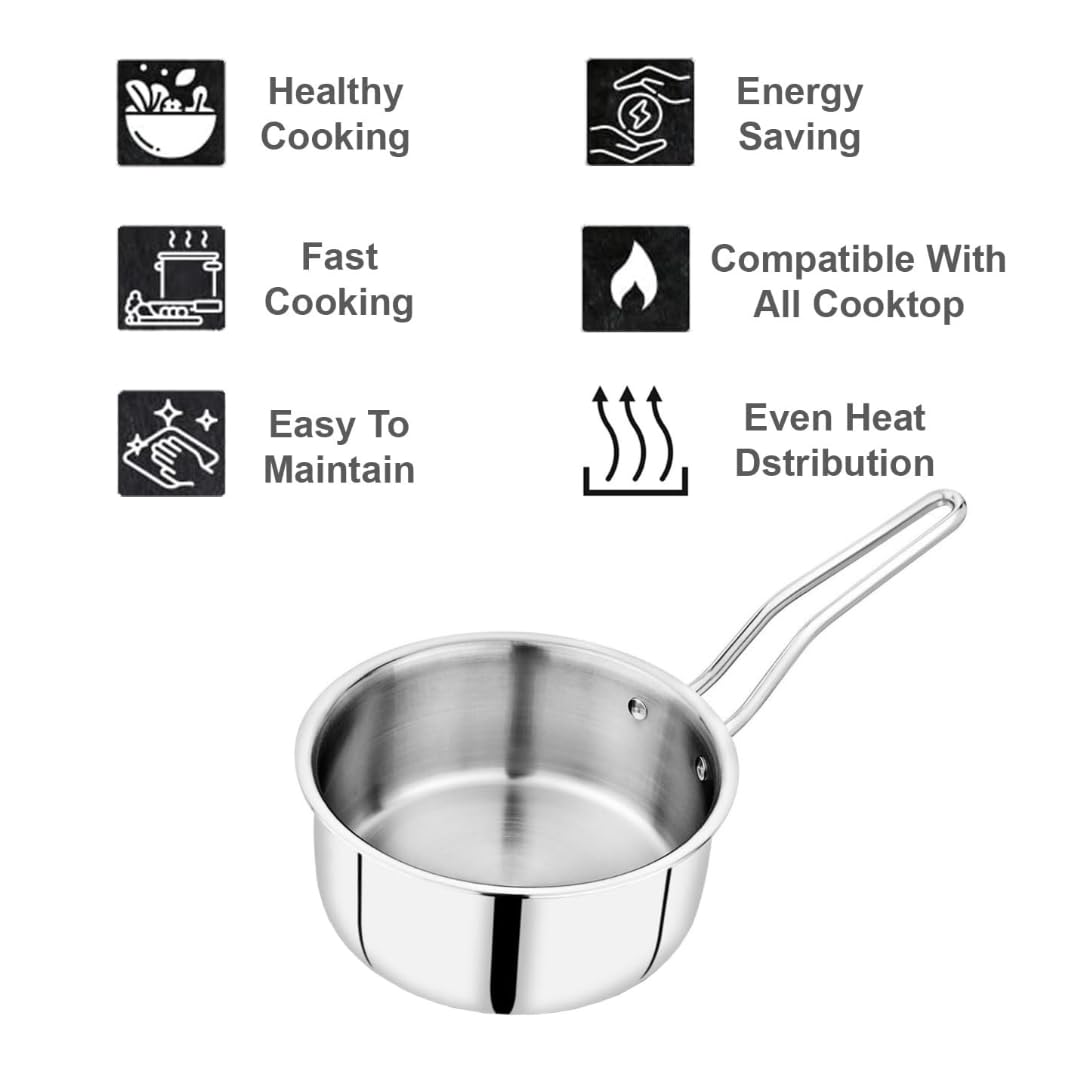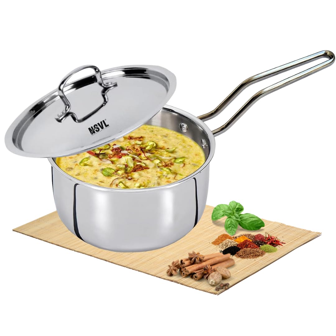 Nsvl Triply Stainless Steel Saucepan With Lid for Cooking, Milk Pan Tea Pan, Induction Friendly Saucepot, Triply Cookware