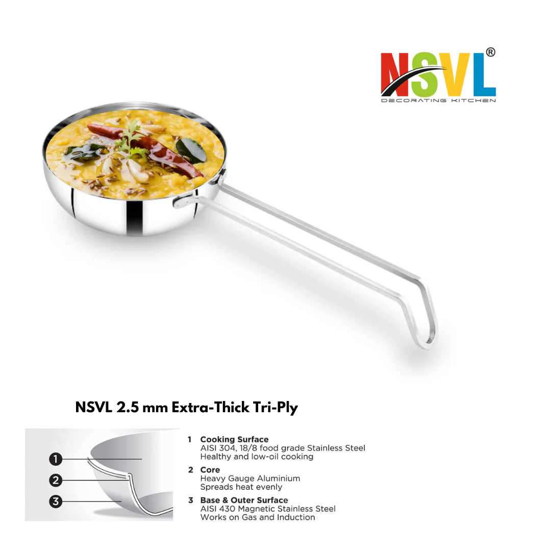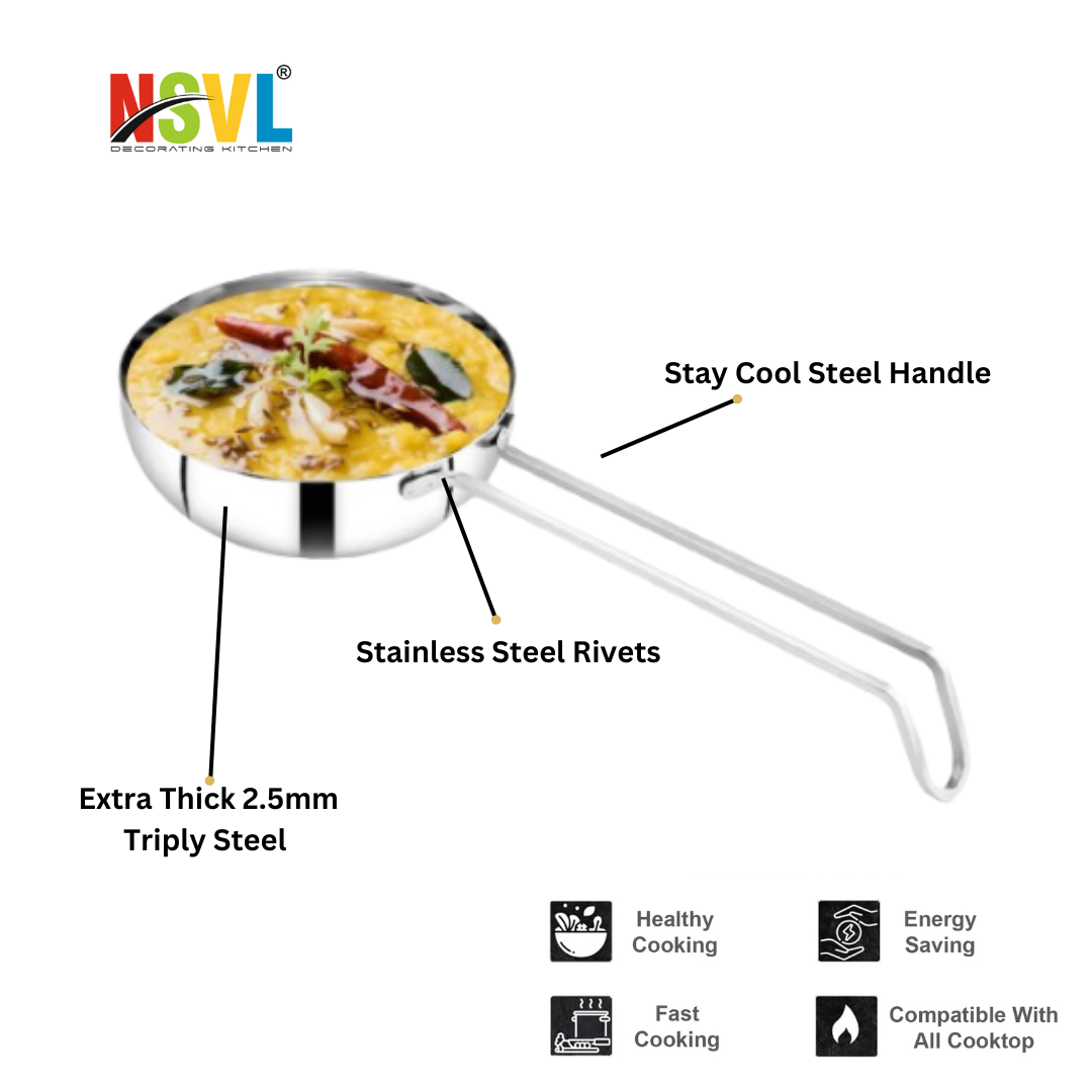 Nsvl Triply Stainless Steel Tadka Pan (360 ml) |Used for Spice Tempering, Seasoning|Gas Stove and Induction Friendly, Dishwasher Safe