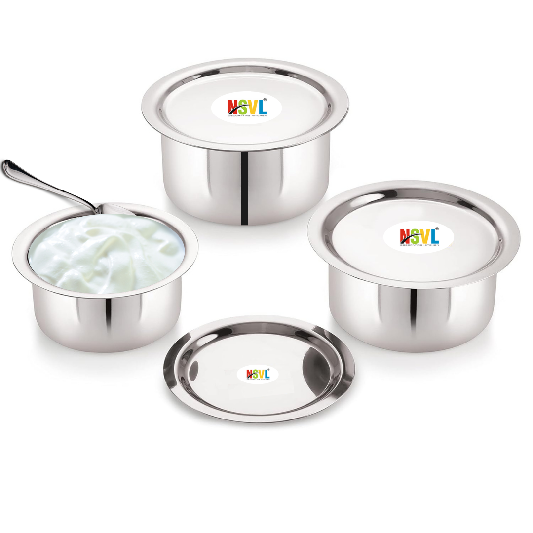 Stainless Steel Flat Top Tope Set, 3 Pieces, 300 ml, 500 ml, 700 ml