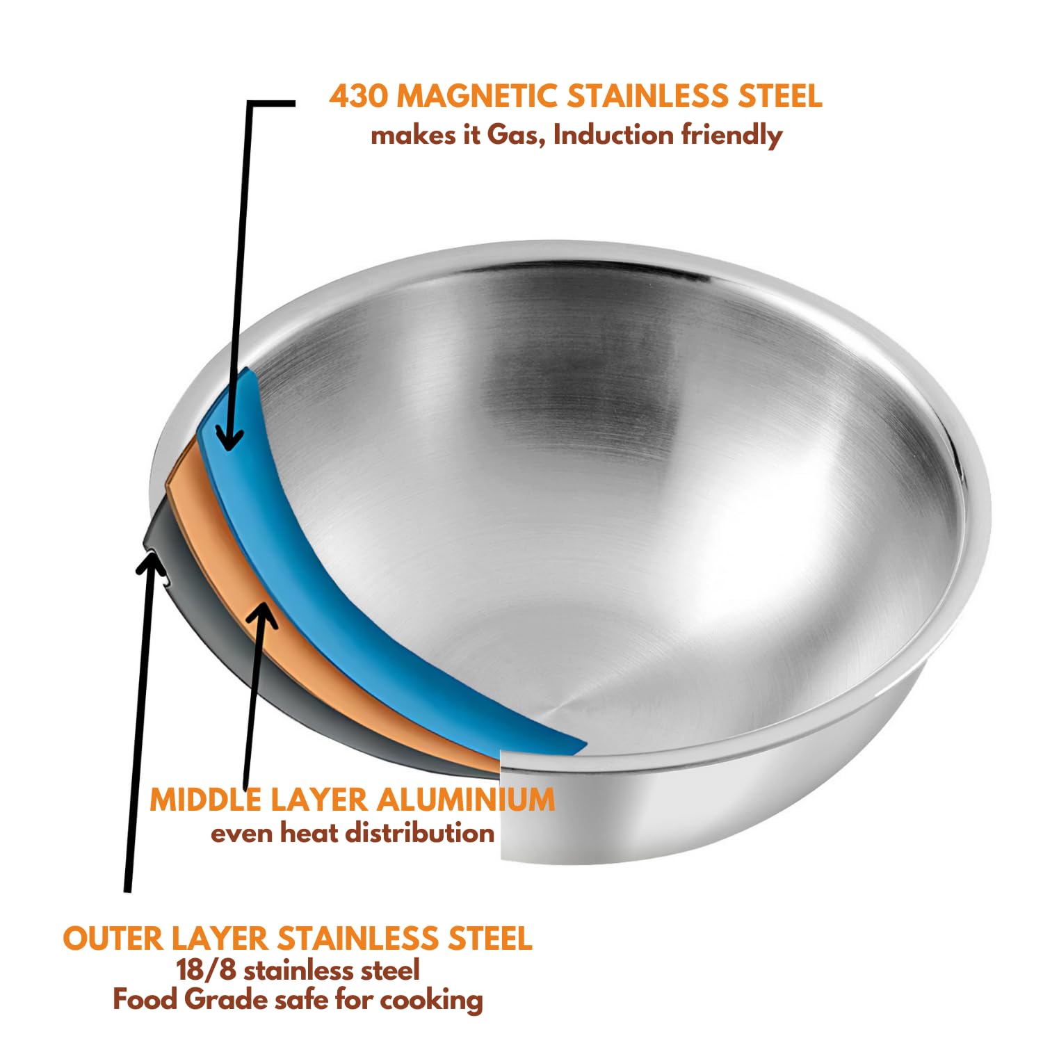 - πππππππ ππππππ πππππππππ πππππ : Crafted with food-grade 18/8 stainless steel inner surface, aluminum encapsulated middle layer, and SS 430 magnetic stainless steel outer layer for even heat distribution and induction compatibility.