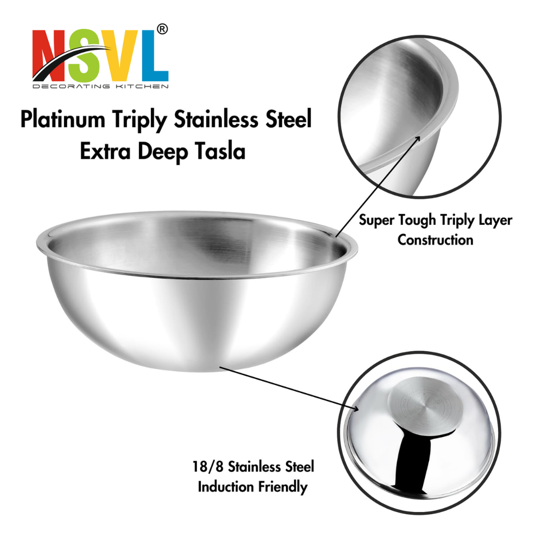 NSVL Triply Stainless Steel Cookware Tasla 2.5 mm Thick Extra Deep Tasra/Kadhai for Cooking/Induction Bottom, Gas Base